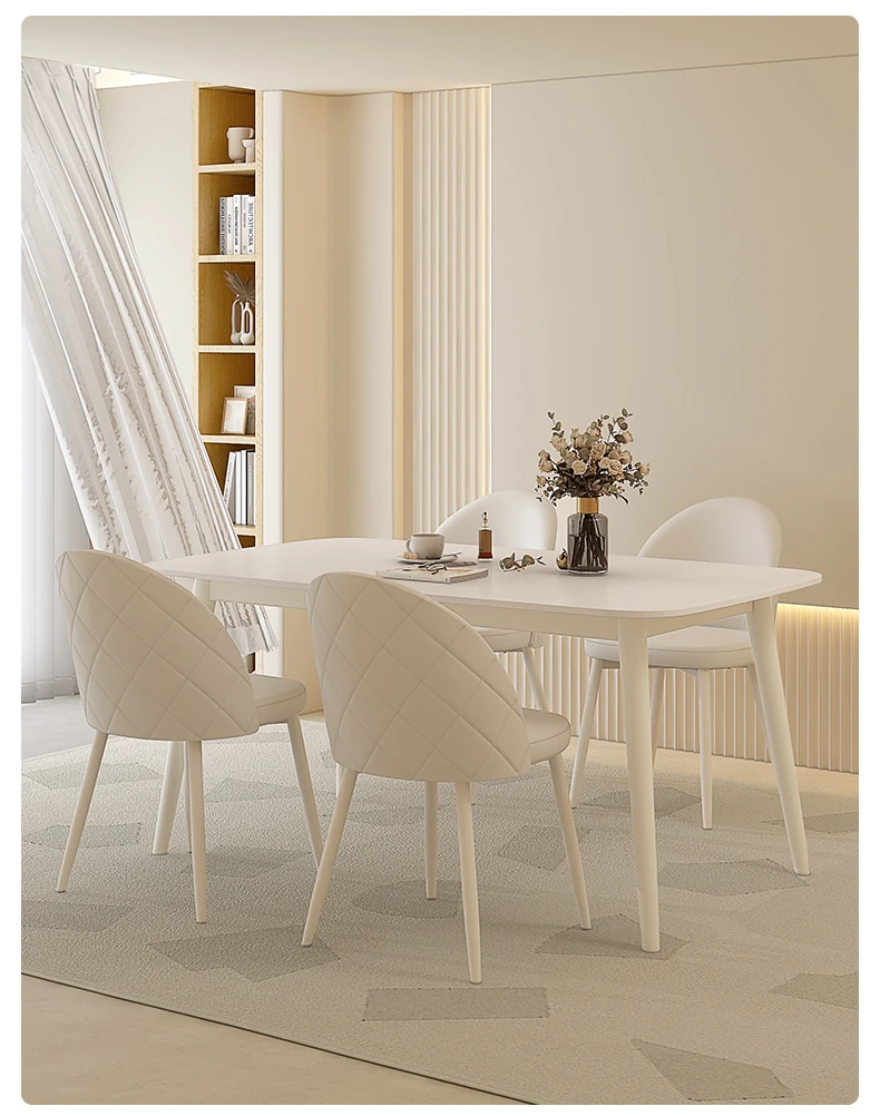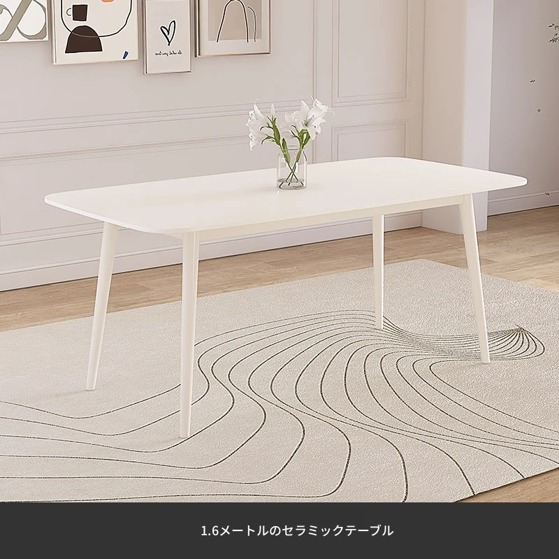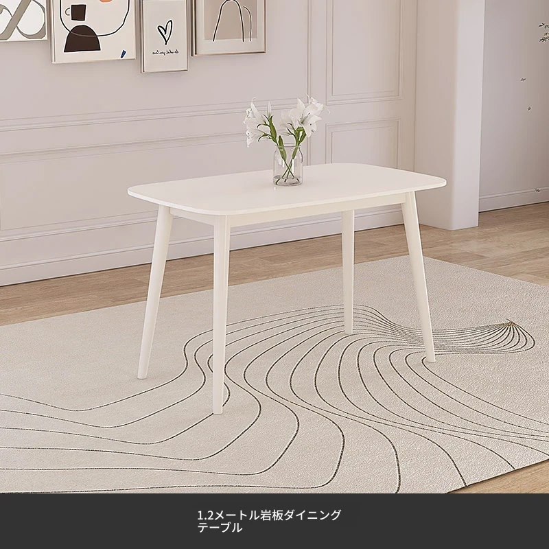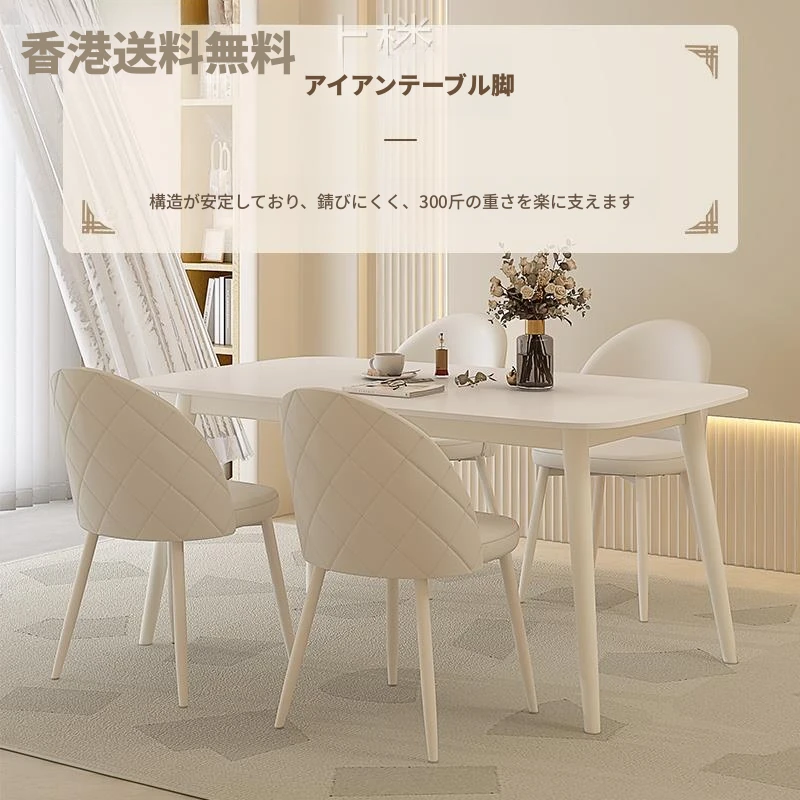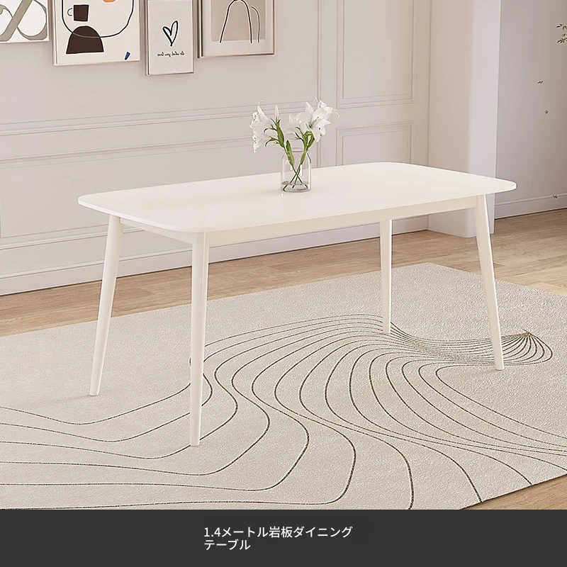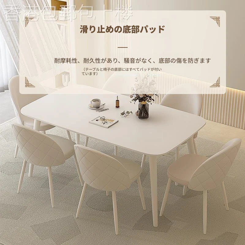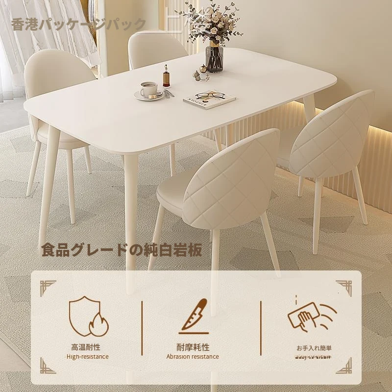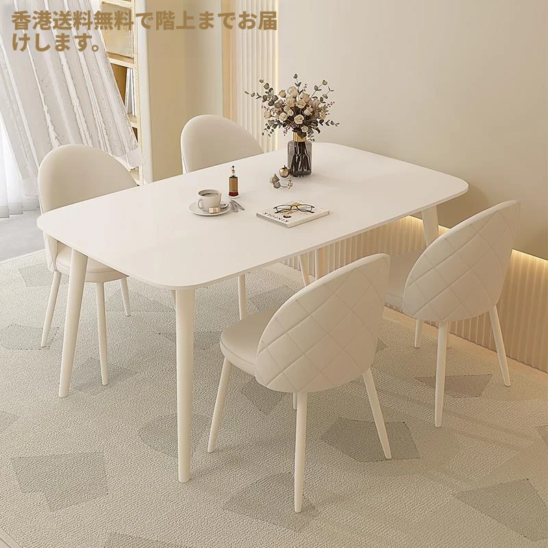 【香港送料無料】洗練されたデザインの軽やかな岩板ダイニングテーブル - モダンでシンプル、小さなスペースにもぴったりのクリーム風長方形テーブルで、家族や友人との食事をより特別な時間に!