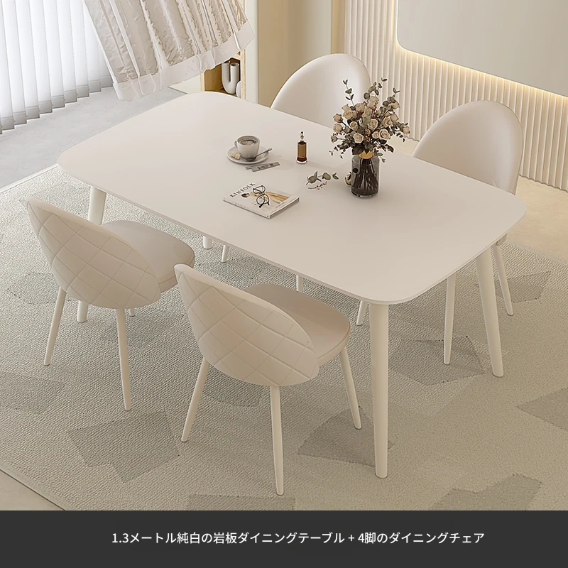 純白岩板【1.3メートル+4脚のダイニングチェア】