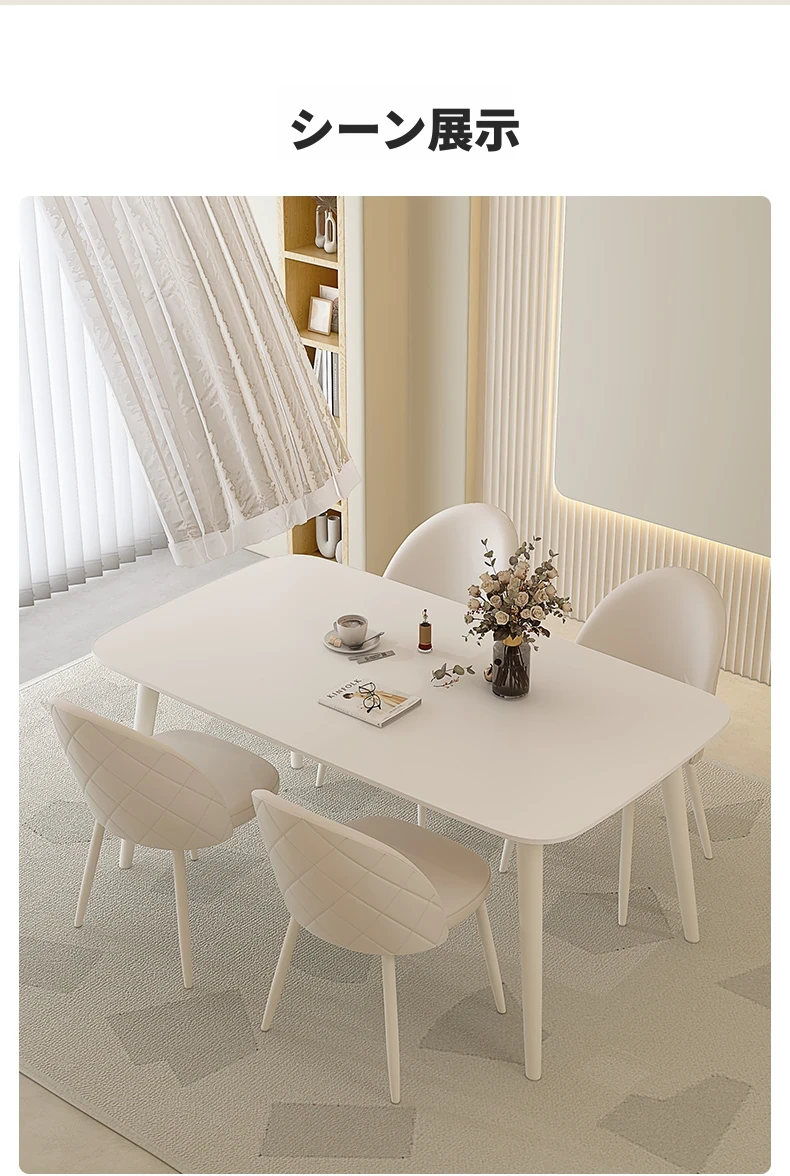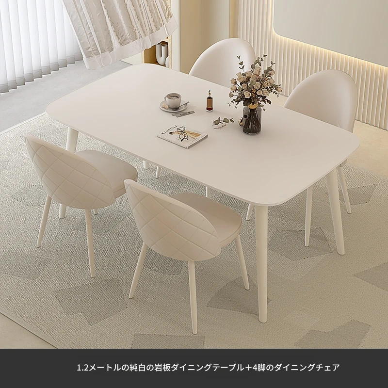 純白岩板【1.2メートル+4脚のダイニングチェア】
