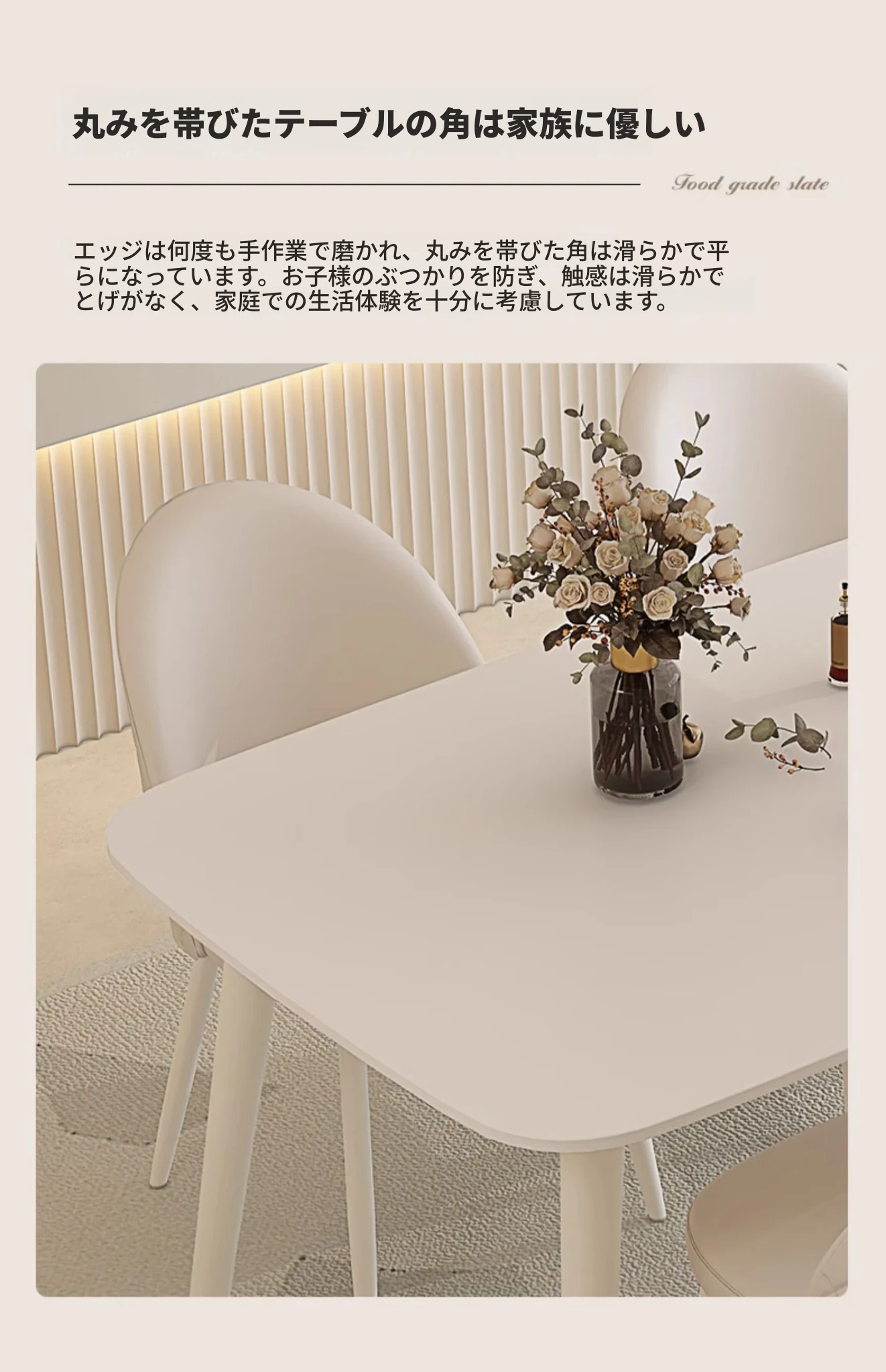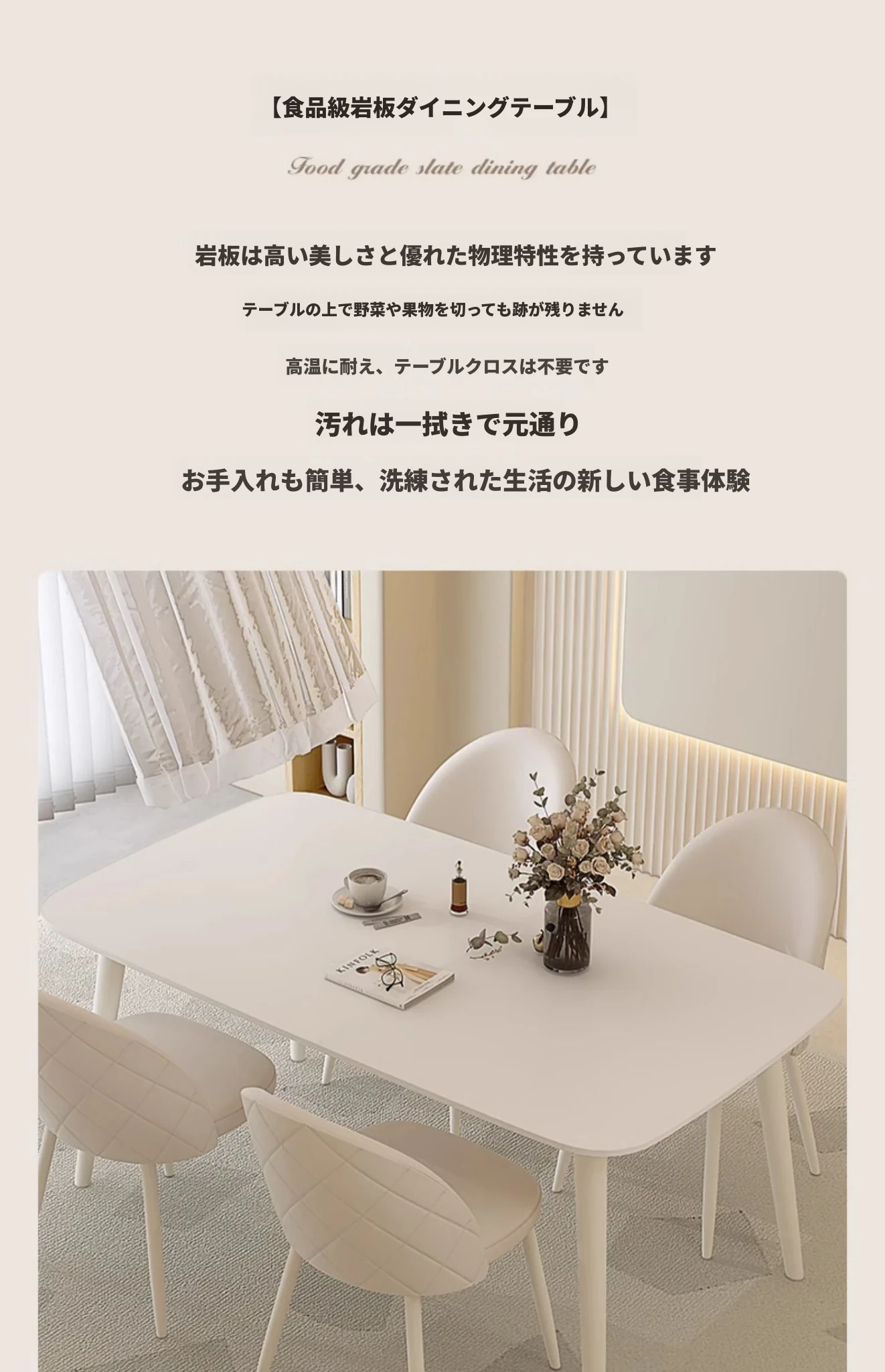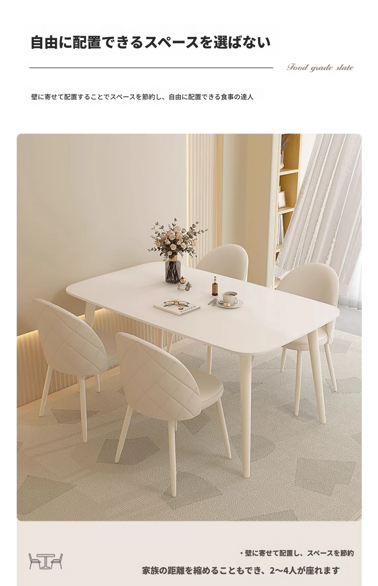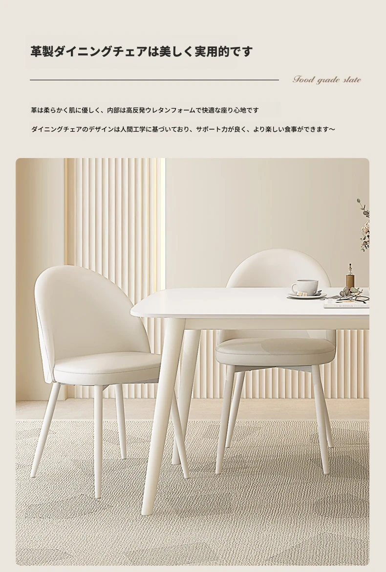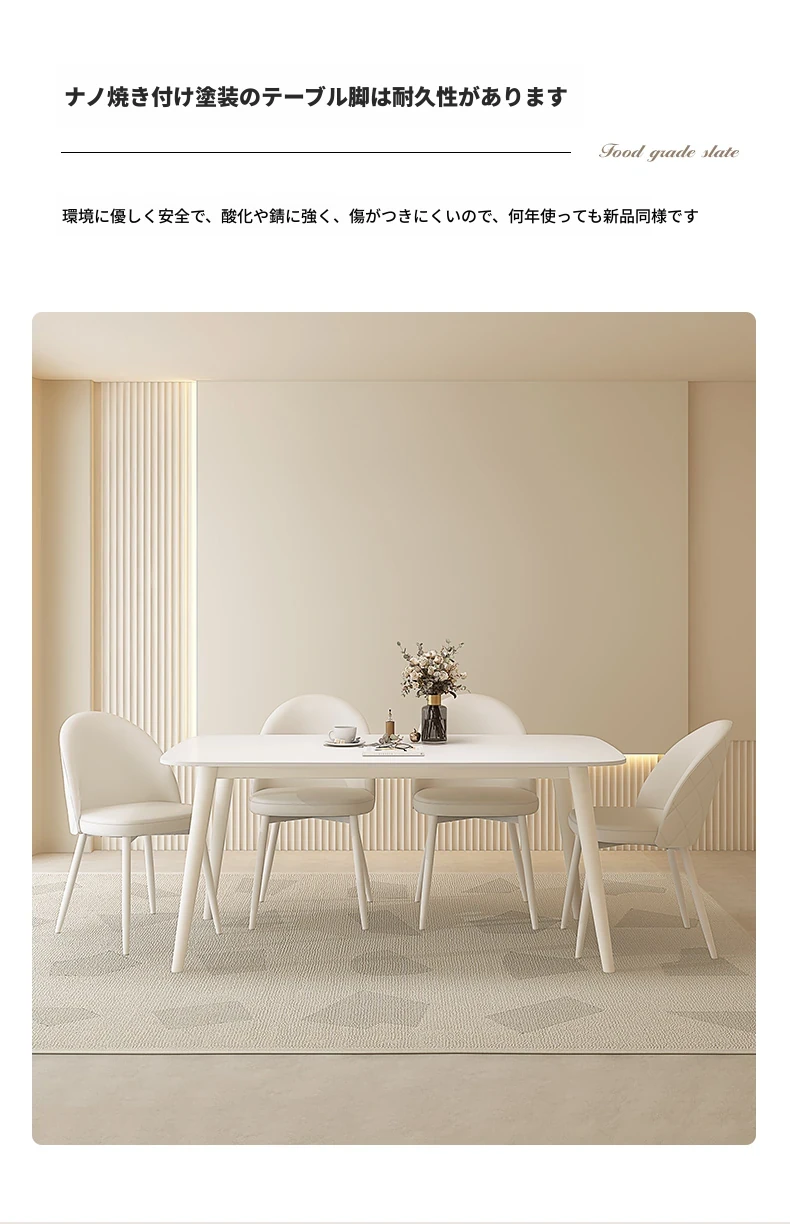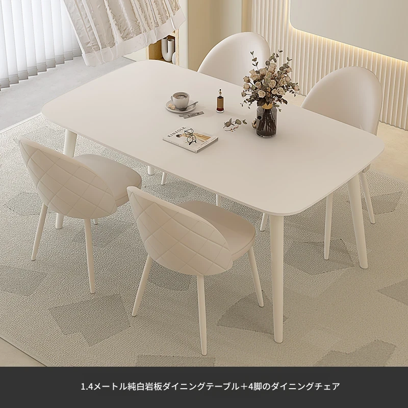 純白岩板【1.4メートル+4脚のダイニングチェア】