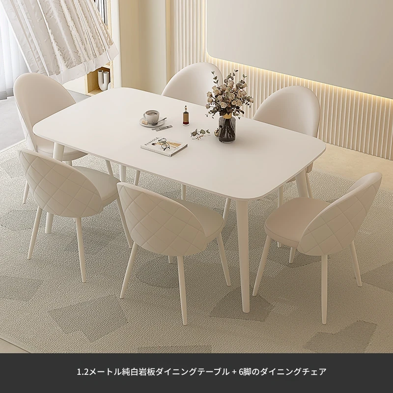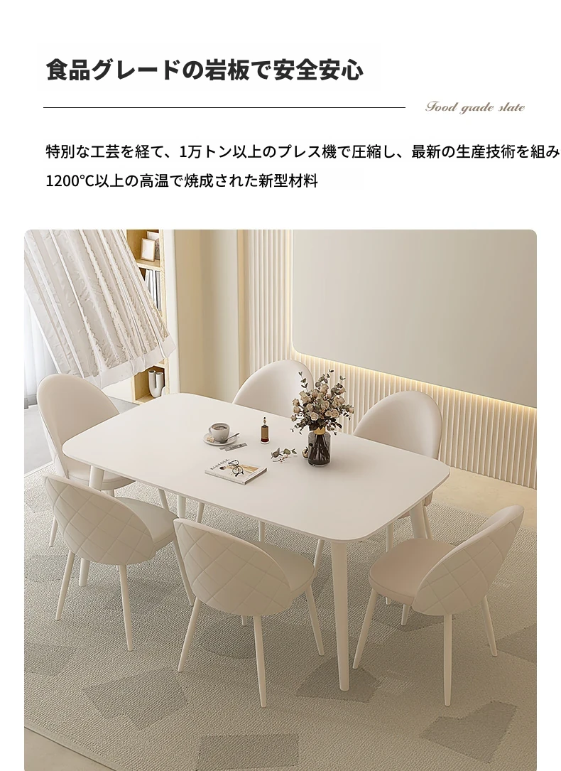 純白岩板【1.2メートル+6脚のダイニングチェア】