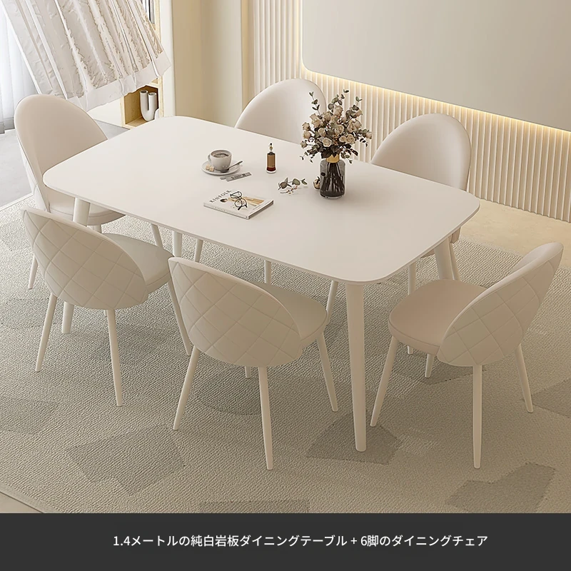 純白岩板【1.4メートル+6脚のダイニングチェア】