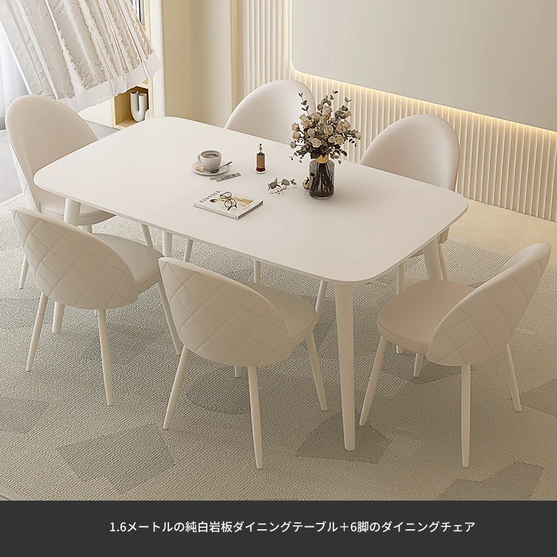 純白岩板【1.6メートル+6脚のダイニングチェア】