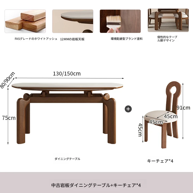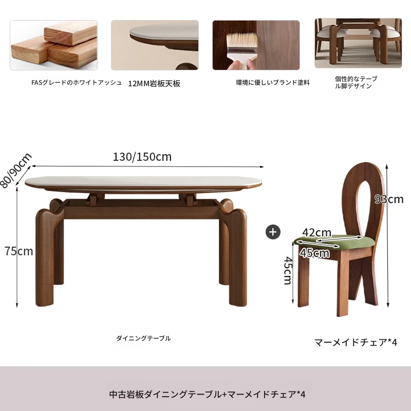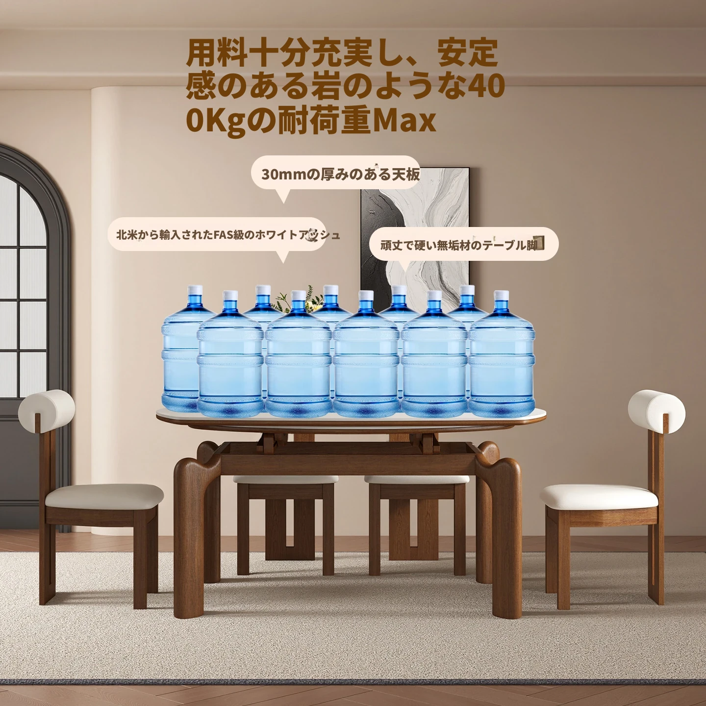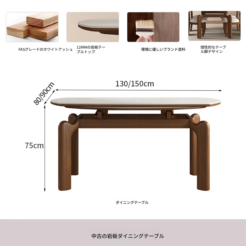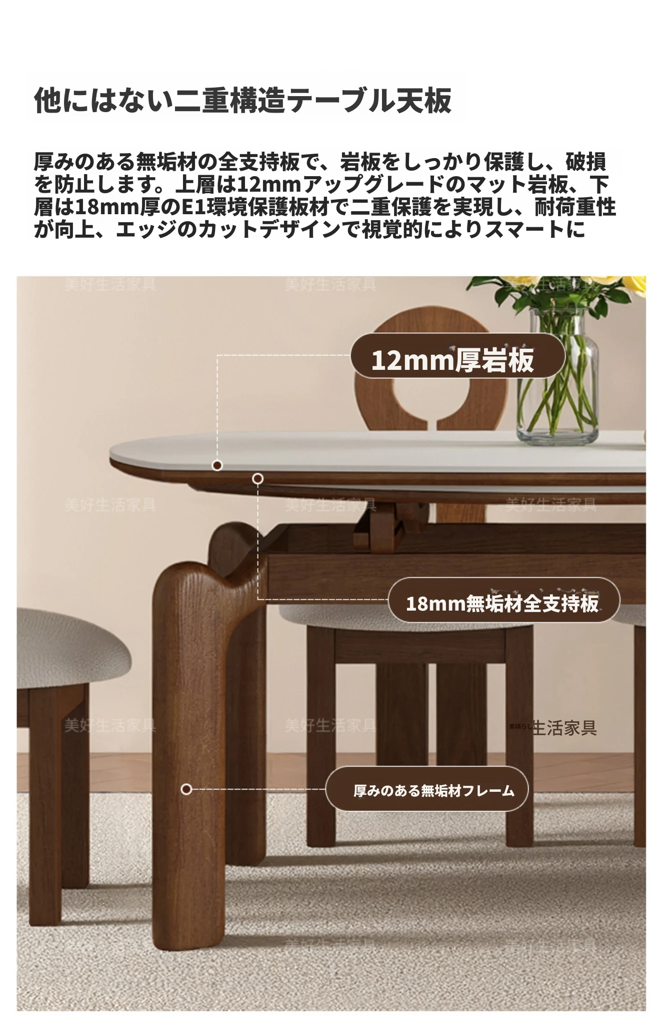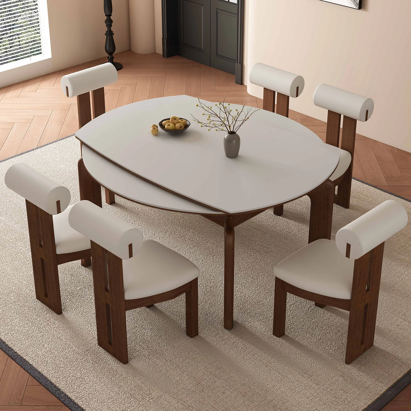 フレンチアンティークスタイルの無垢材ロックプレートダイニングテーブル - 小型住宅に最適!伸縮式で折りたたみ可能、円形と四角形の両方として使用できる多機能テーブル。おしゃれで便利な食卓を手に入れましょう!