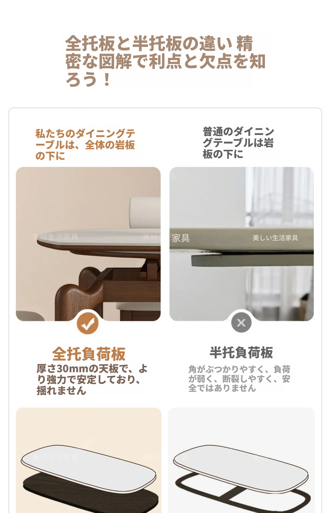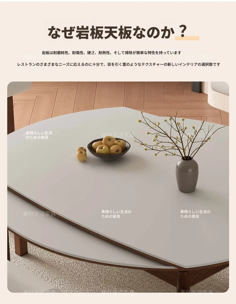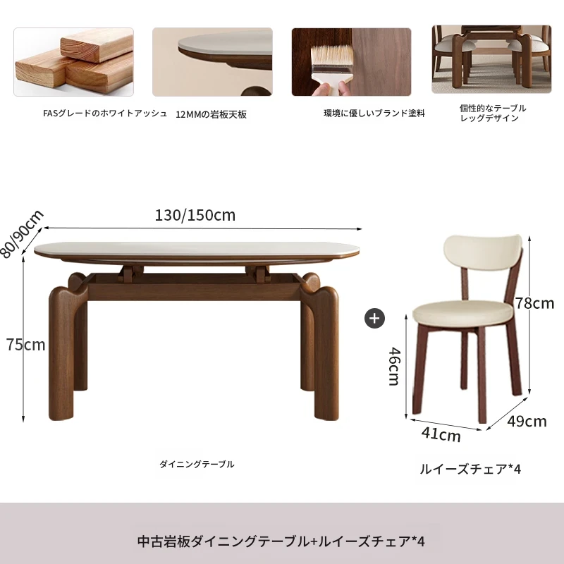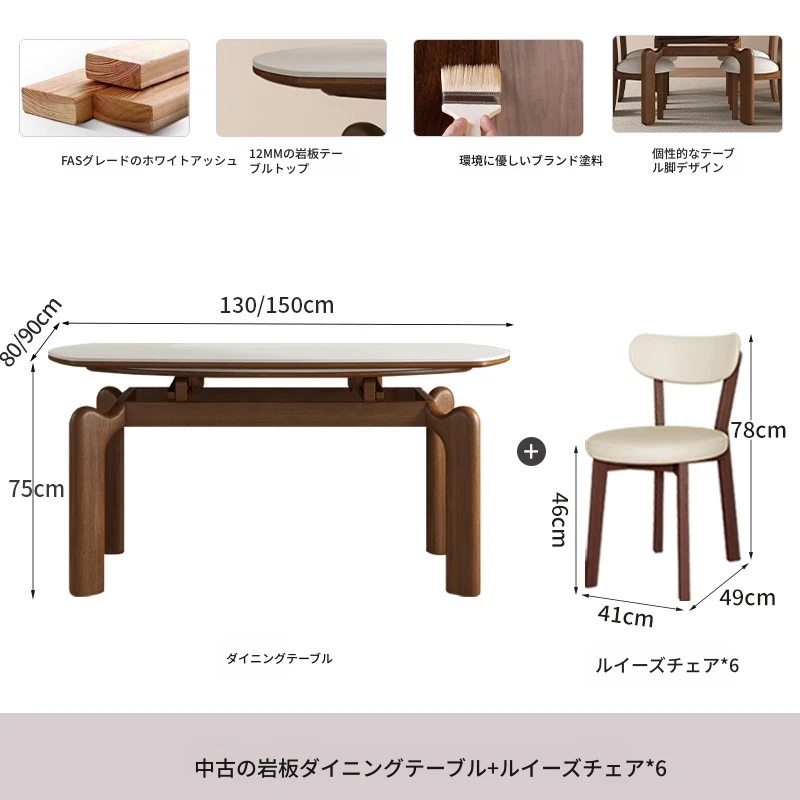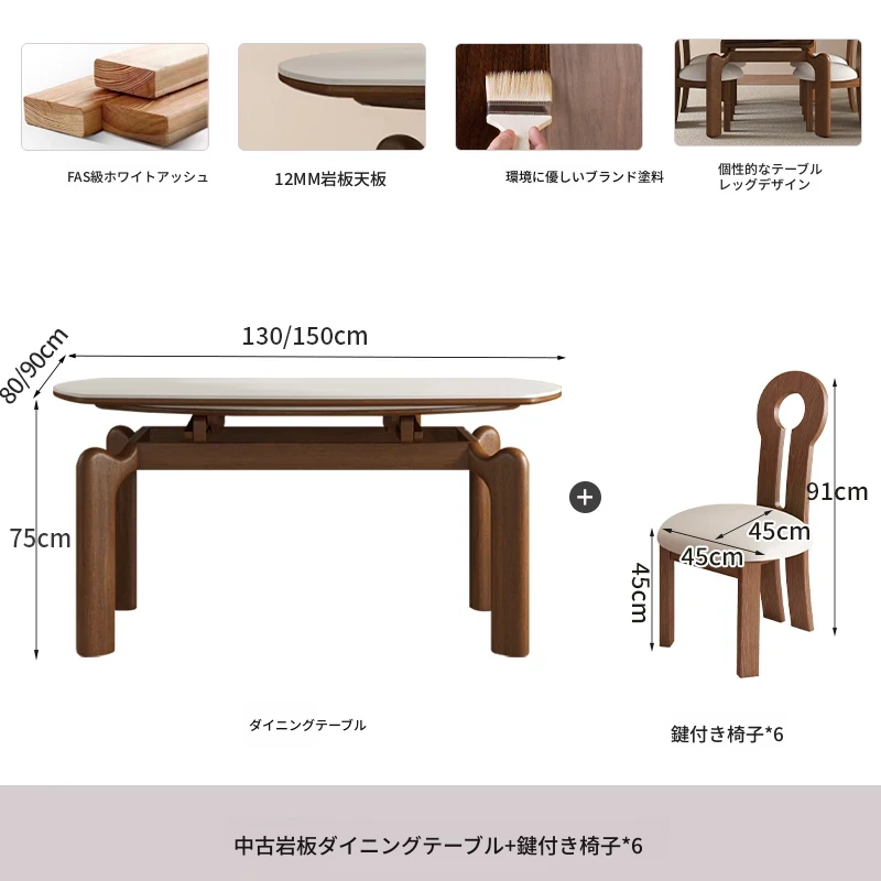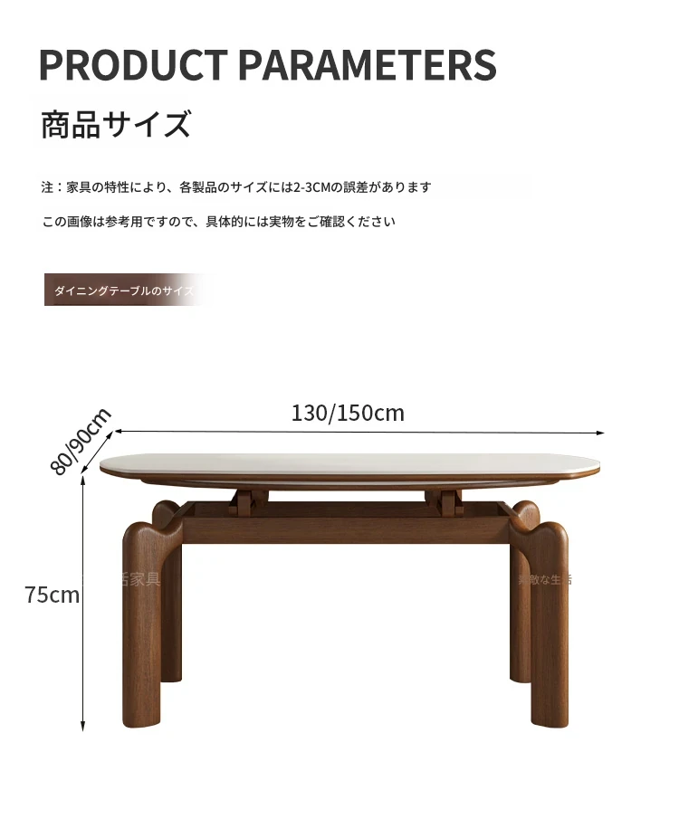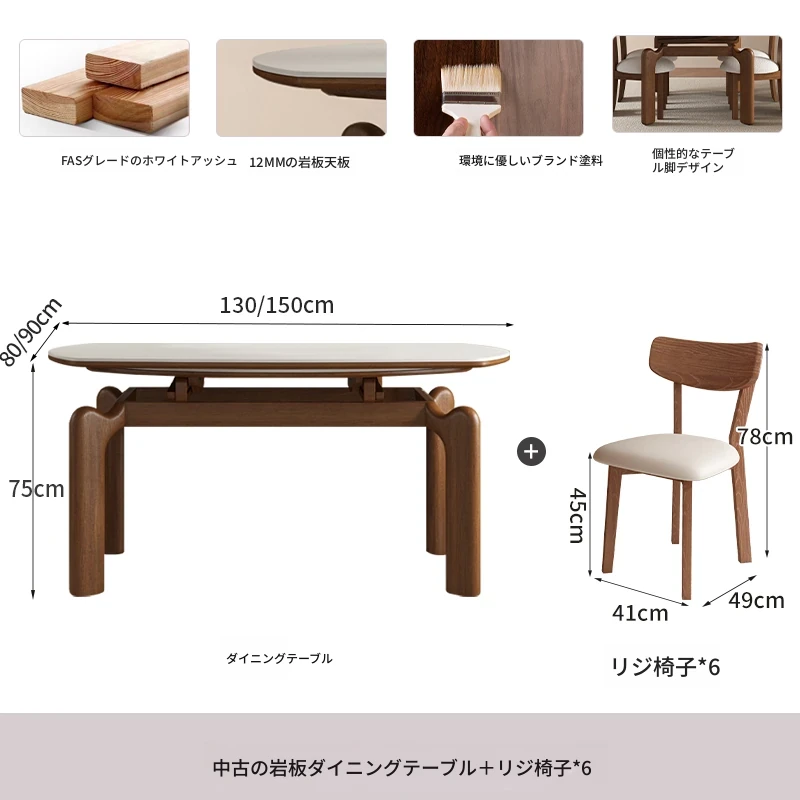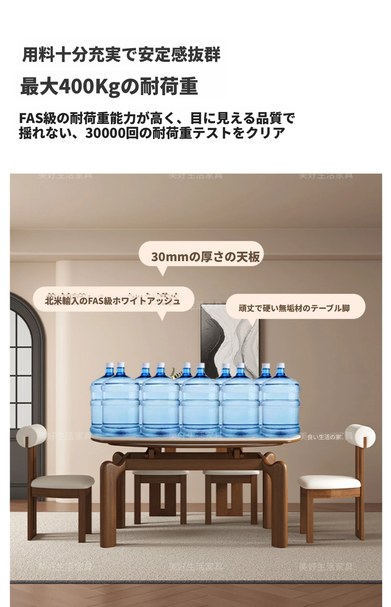 フレンチアンティークスタイルの無垢材ロックプレートダイニングテーブル - 小型住宅に最適!伸縮式で折りたたみ可能、円形と四角形の両方として使用できる多機能テーブル。おしゃれで便利な食卓を手に入れましょう!