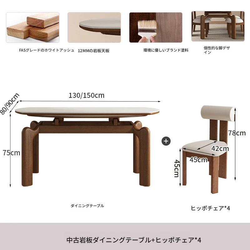 伸縮可能なゾウの足テーブル+霊芝チェア*4