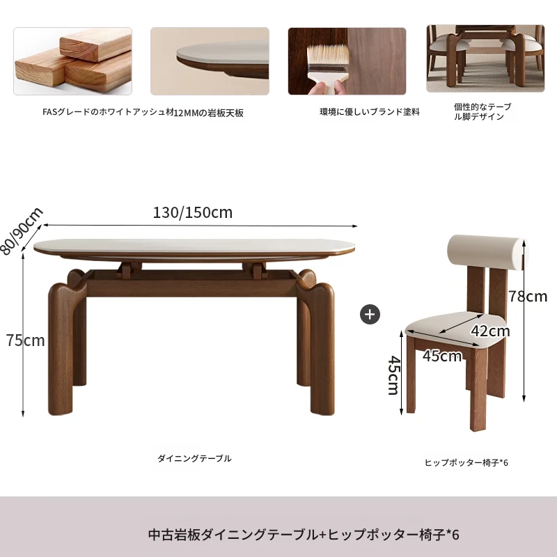 伸縮可能なゾウの足テーブル+霊芝チェア*6