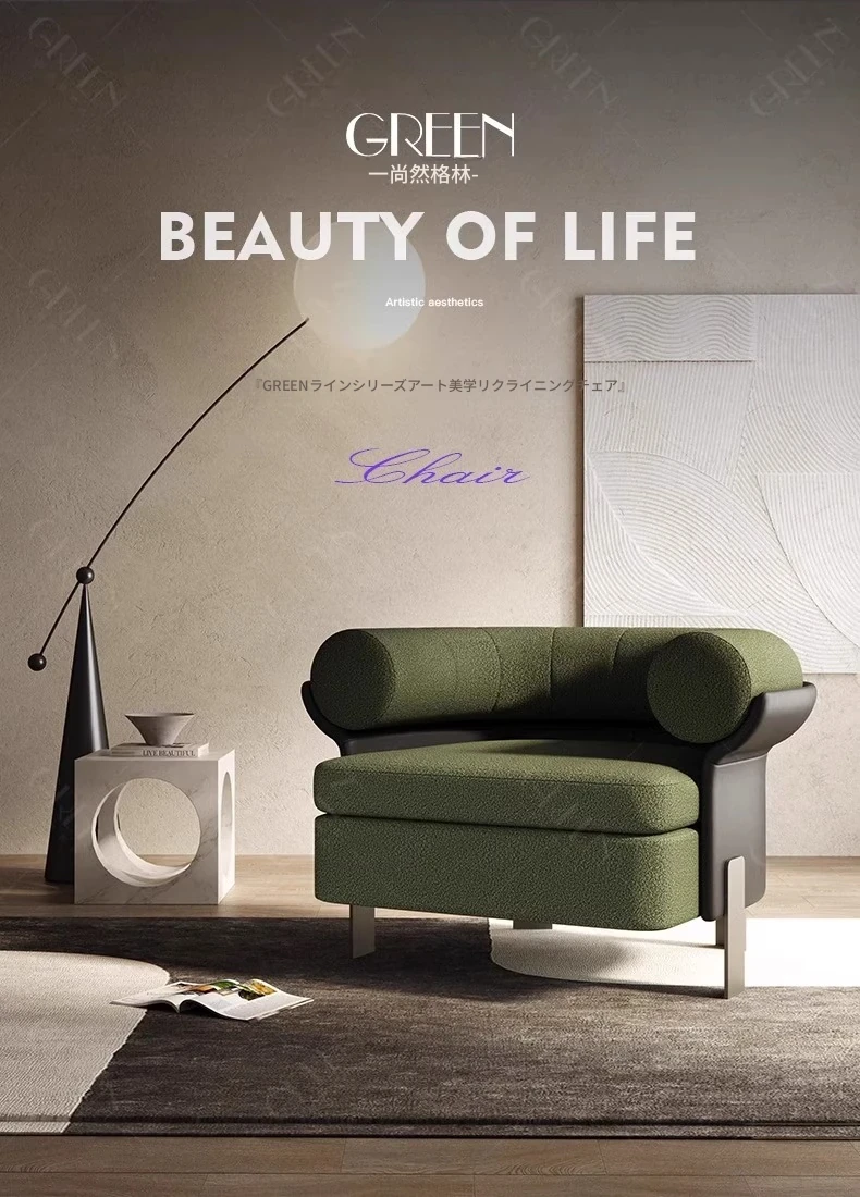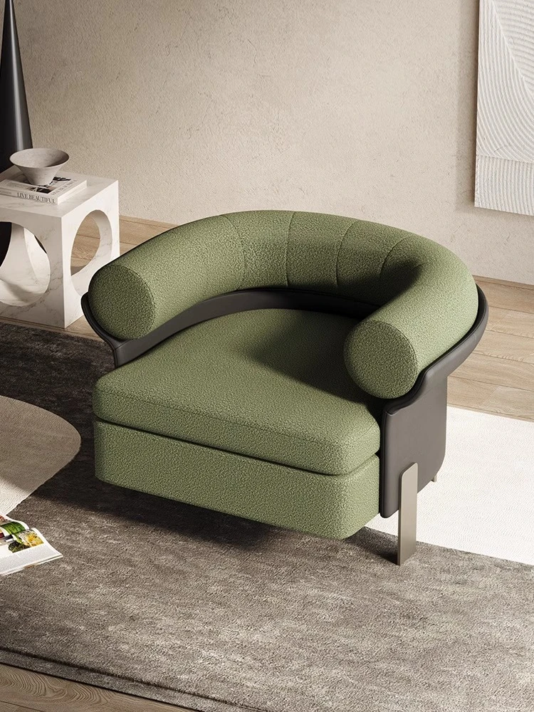 イタリアンラグジュアリー単体ソファチェア|ラムウールの背もたれ付き|リラックスしたデザイン|ホテルの接待や打ち合わせに最適なくつろぎチェア