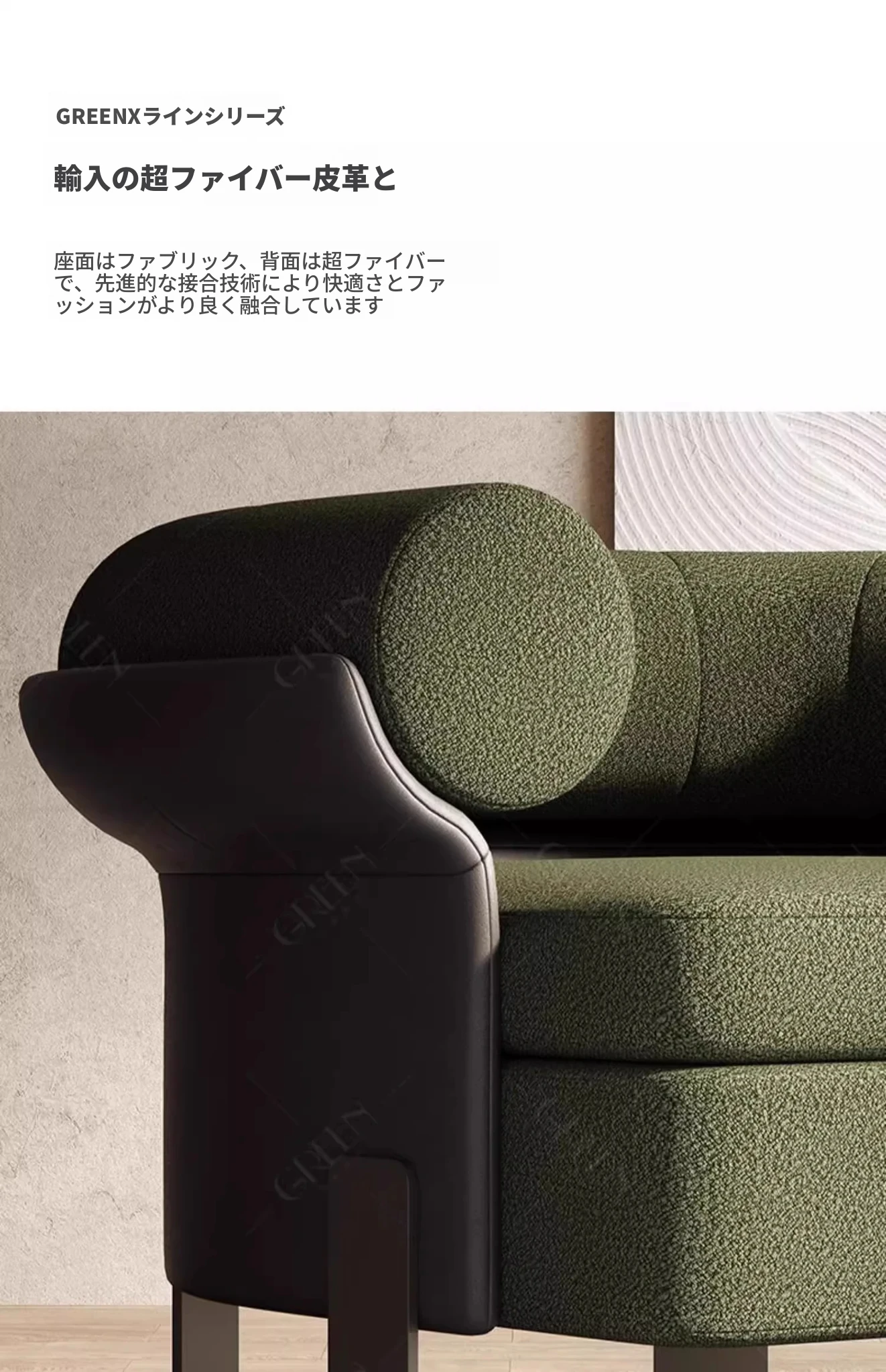 レトログリーンソファチェア(ラムフリース+ナッパレザー)