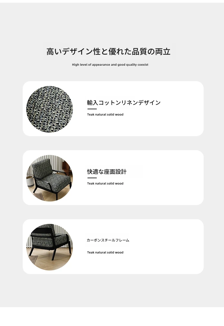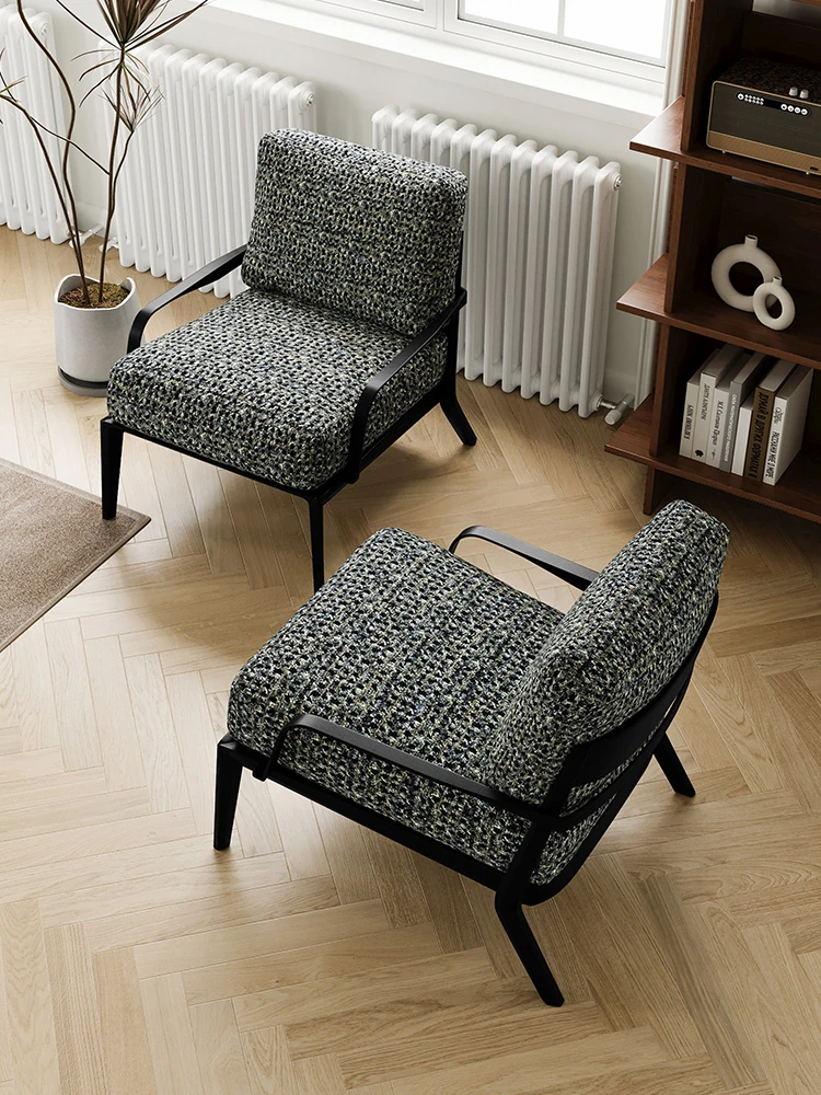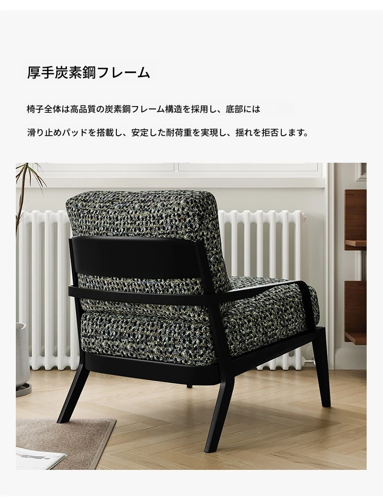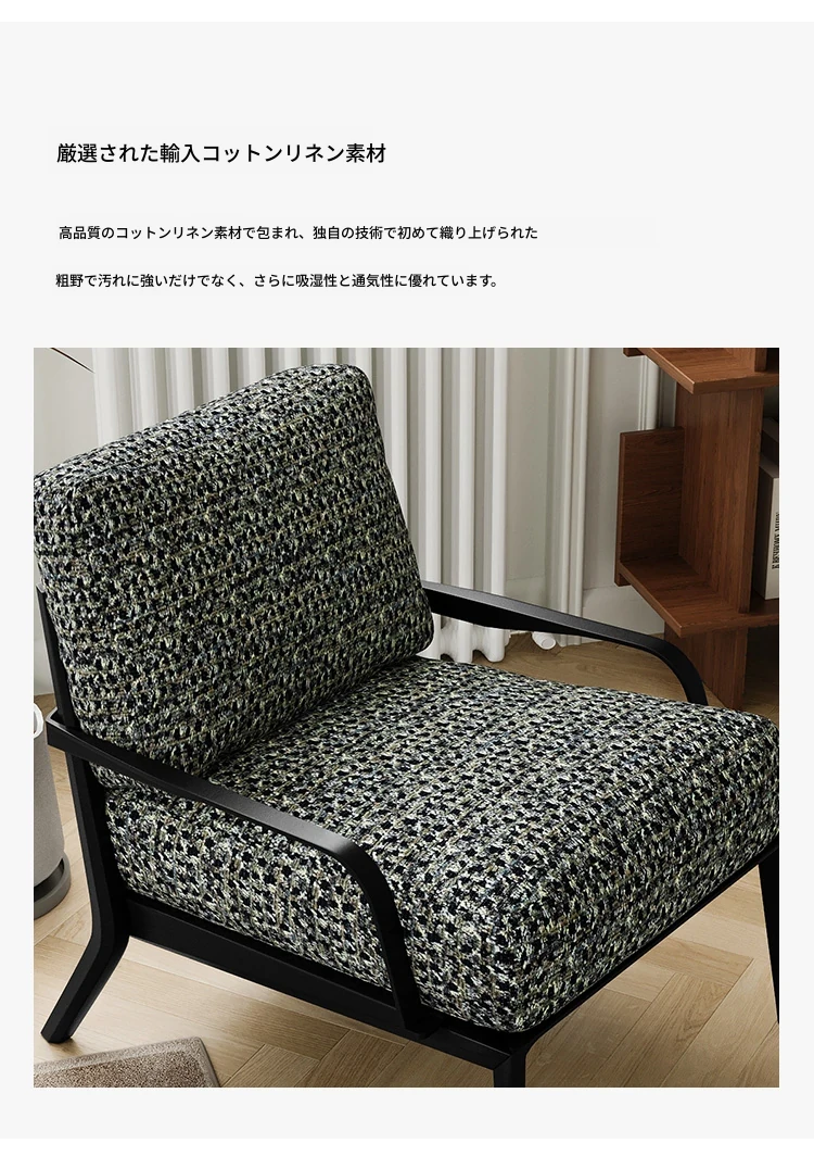 イタリアンミニマル粗麻ソファチェア|ラグジュアリーで高級感あふれるデザイン|民宿・ホテル・クラブに最適な一人用リラックスチェア