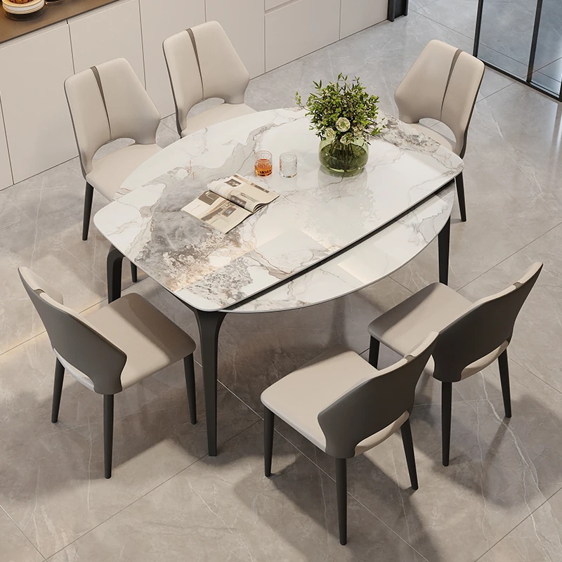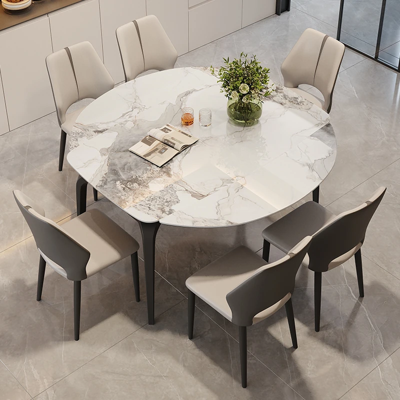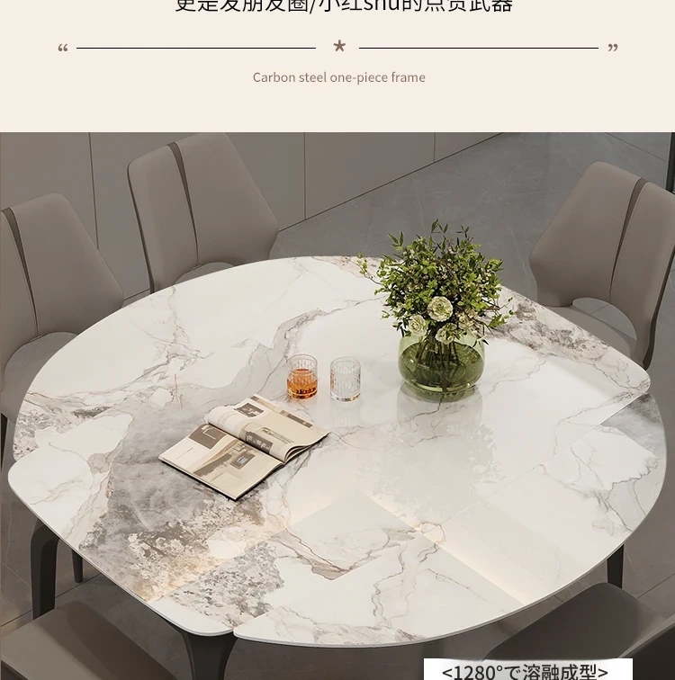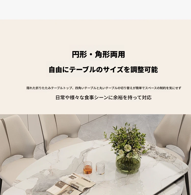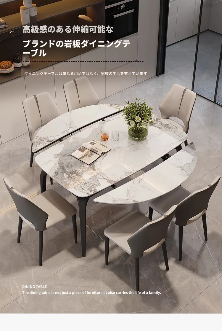 イタリアンラグジュアリー折りたたみ伸縮式岩板ダイニングテーブル - 現代的でシンプルなデザイン、小型住宅にも最適な円形・角形2WAYテーブル!おしゃれで機能的な食卓で、家族や友人とのひとときをお楽しみください。