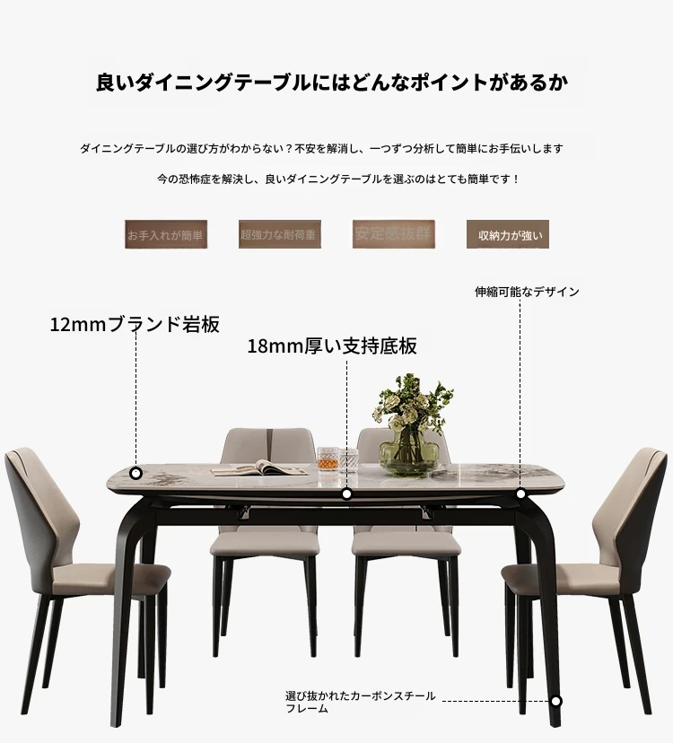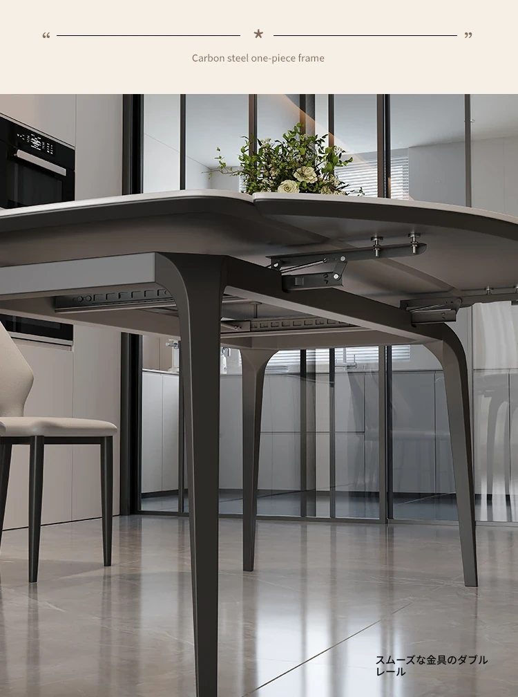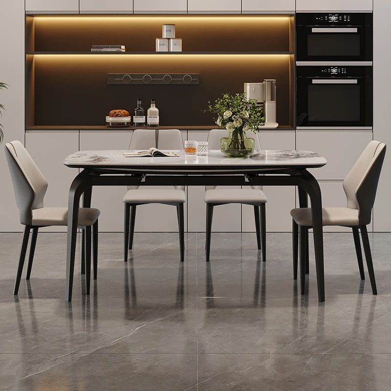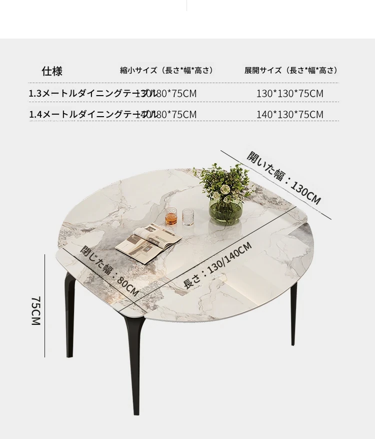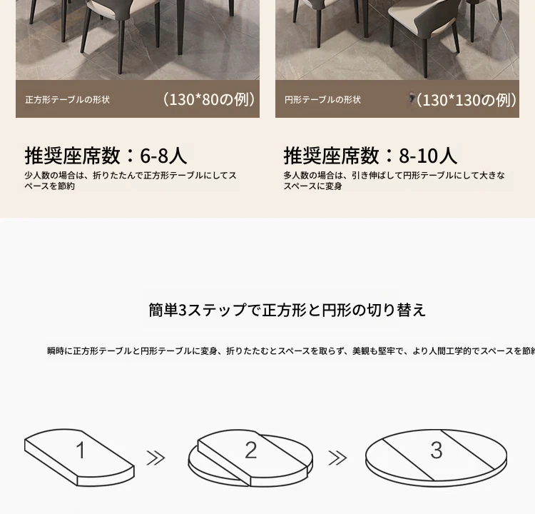 イタリアンラグジュアリー折りたたみ伸縮式岩板ダイニングテーブル - 現代的でシンプルなデザイン、小型住宅にも最適な円形・角形2WAYテーブル!おしゃれで機能的な食卓で、家族や友人とのひとときをお楽しみください。