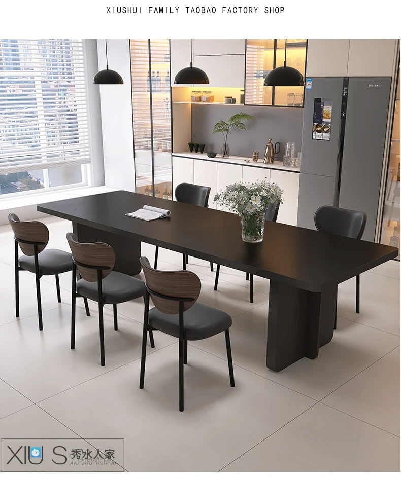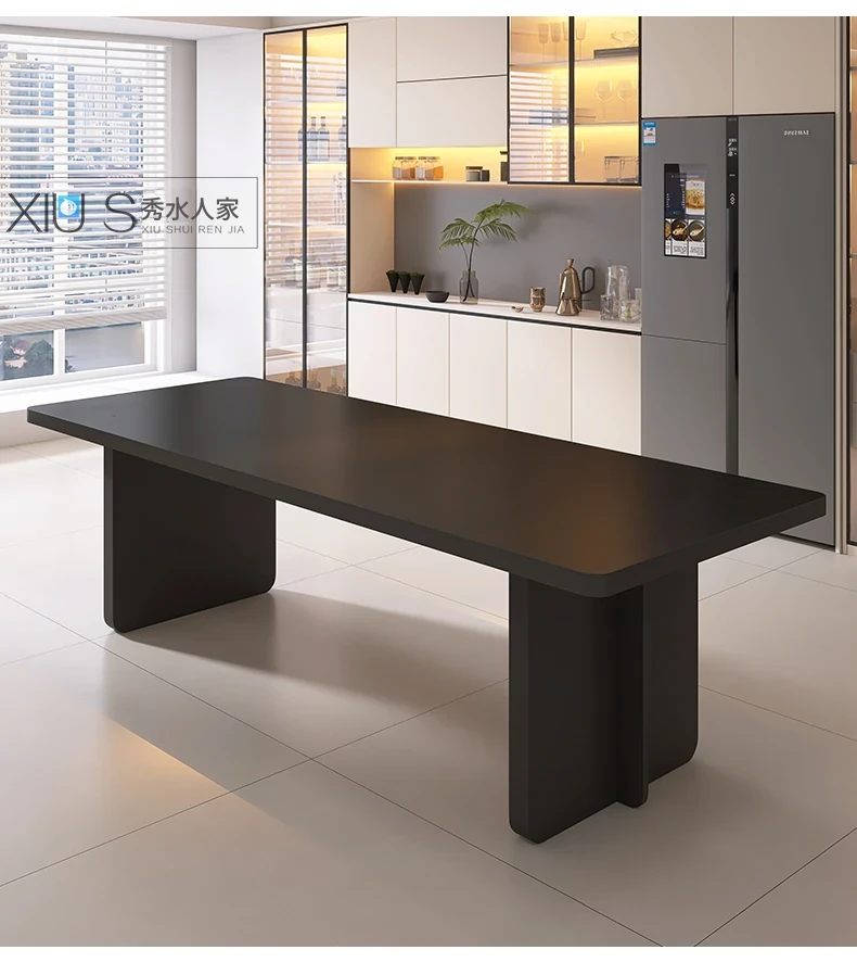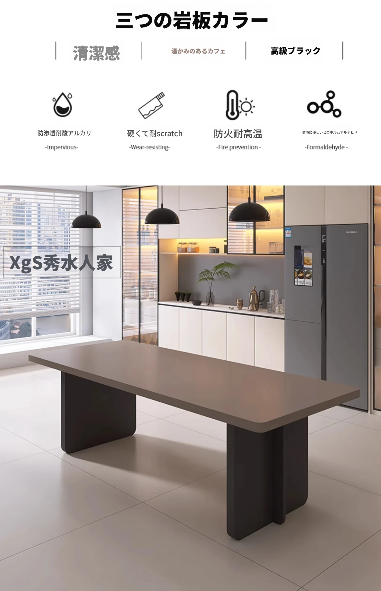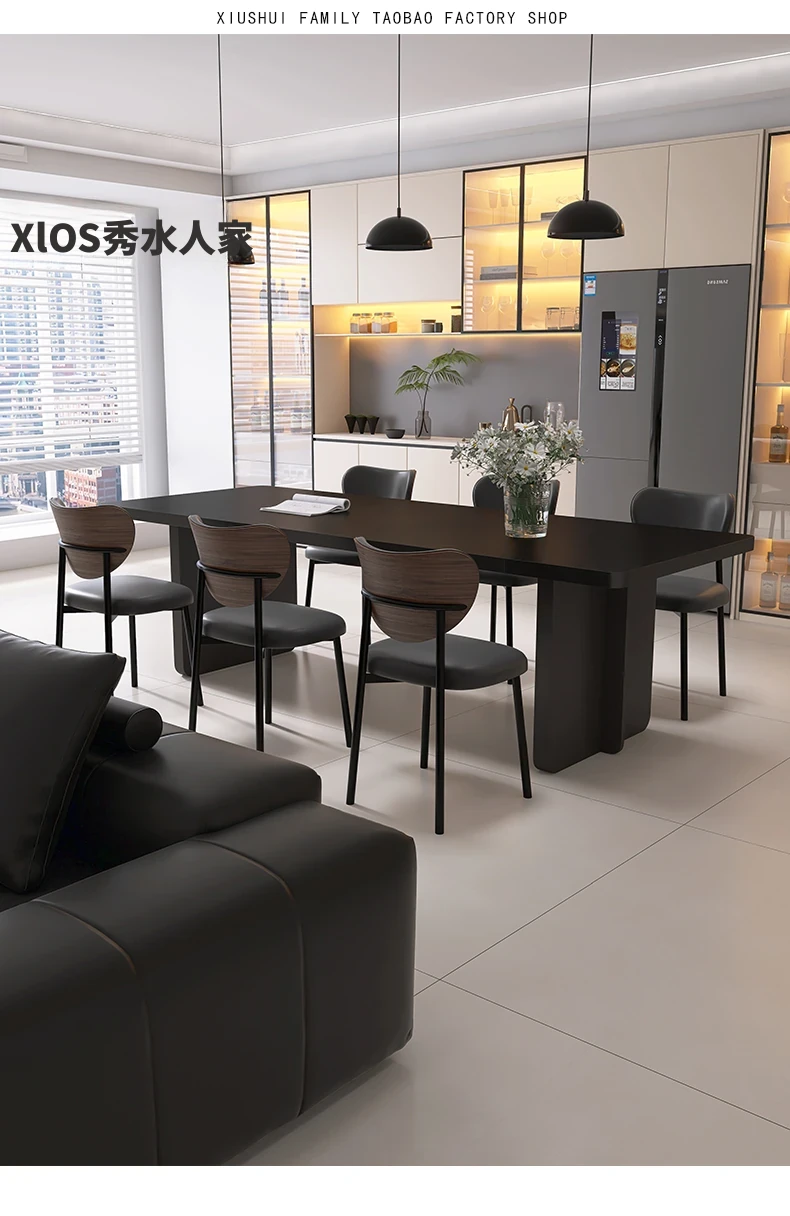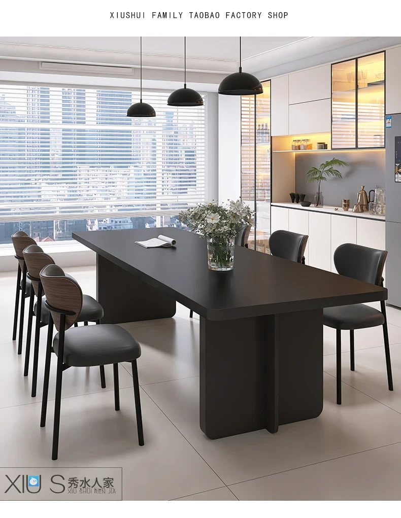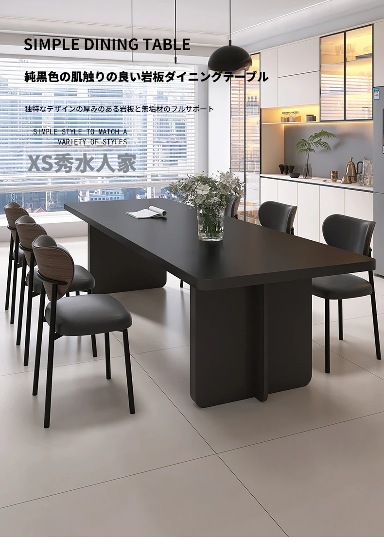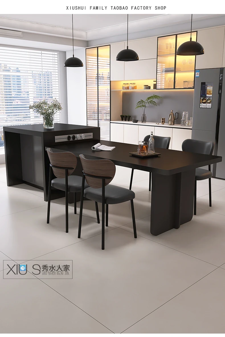 イタリアンミニマリズムの純黒厚板ダイニングテーブル&チェアセット、電磁調理器付き!宋式美学を取り入れたスタイリッシュな長方形アイランドテーブル、茶卓としても最適!おしゃれな空間を演出します。