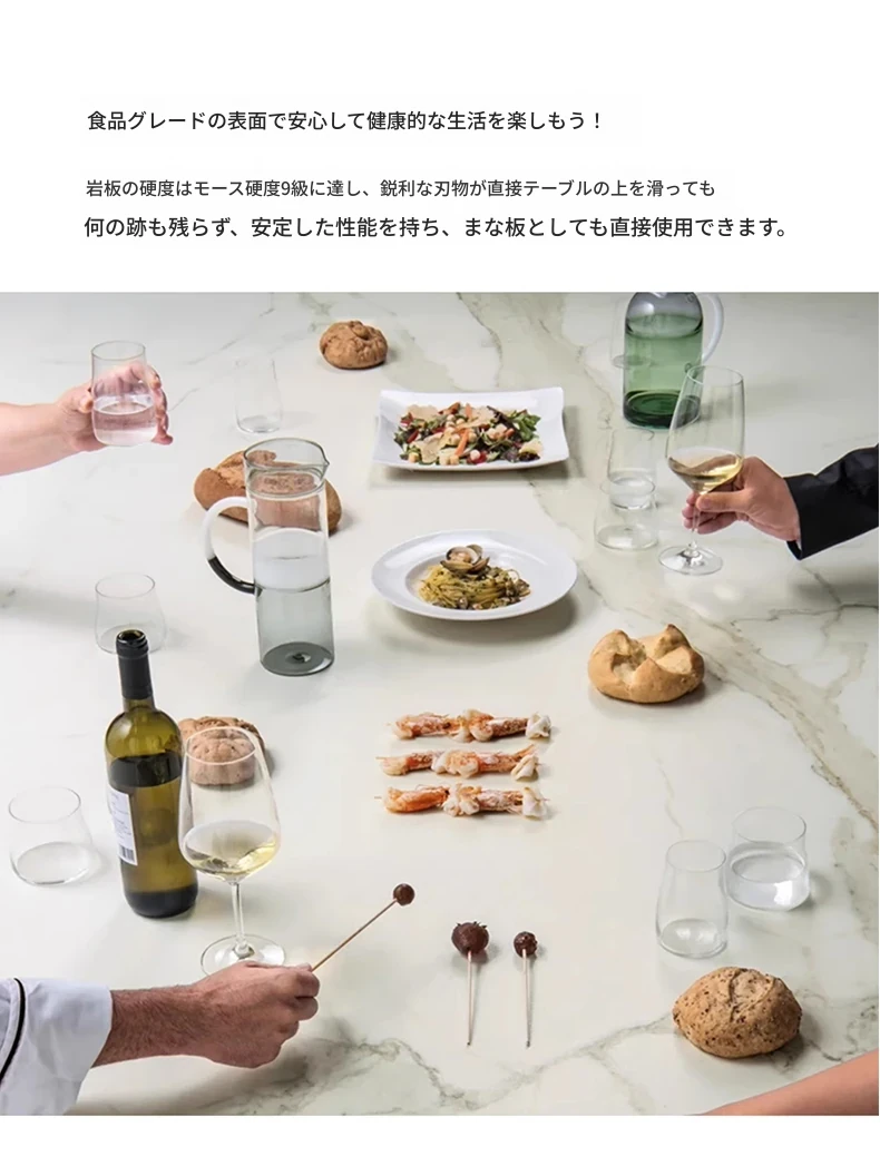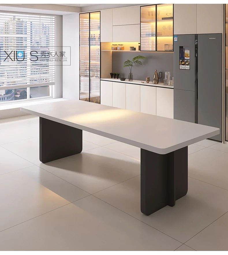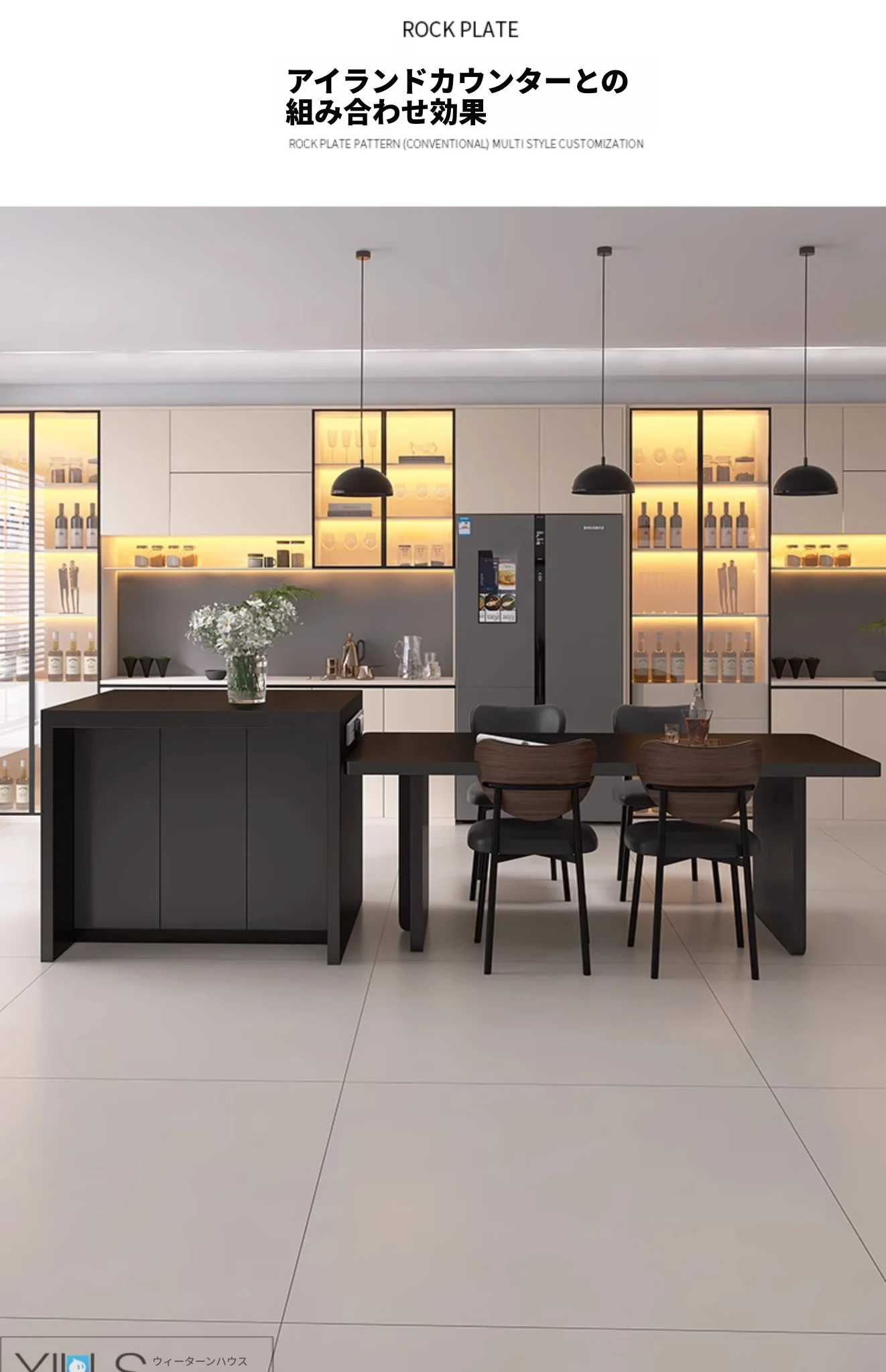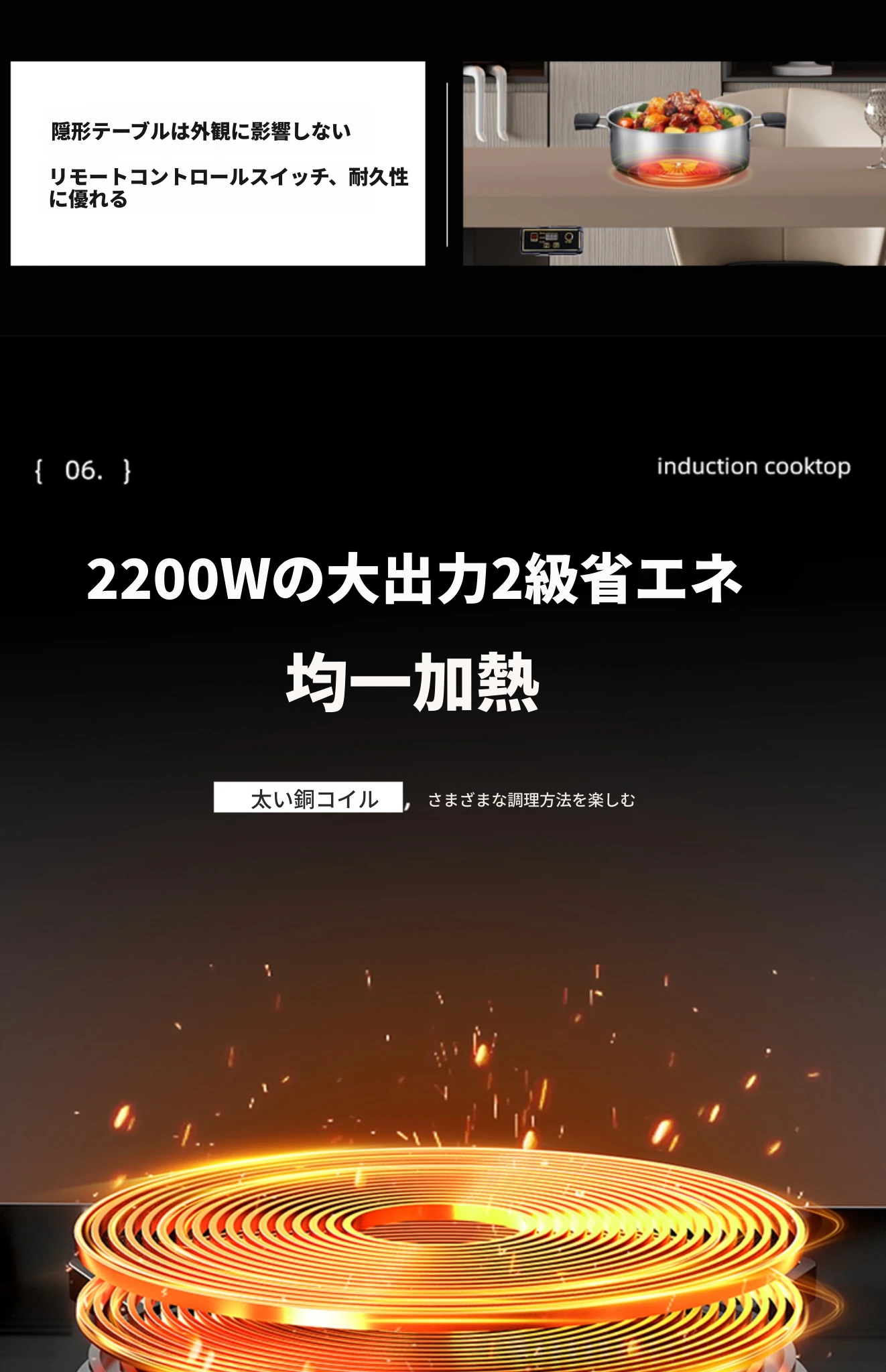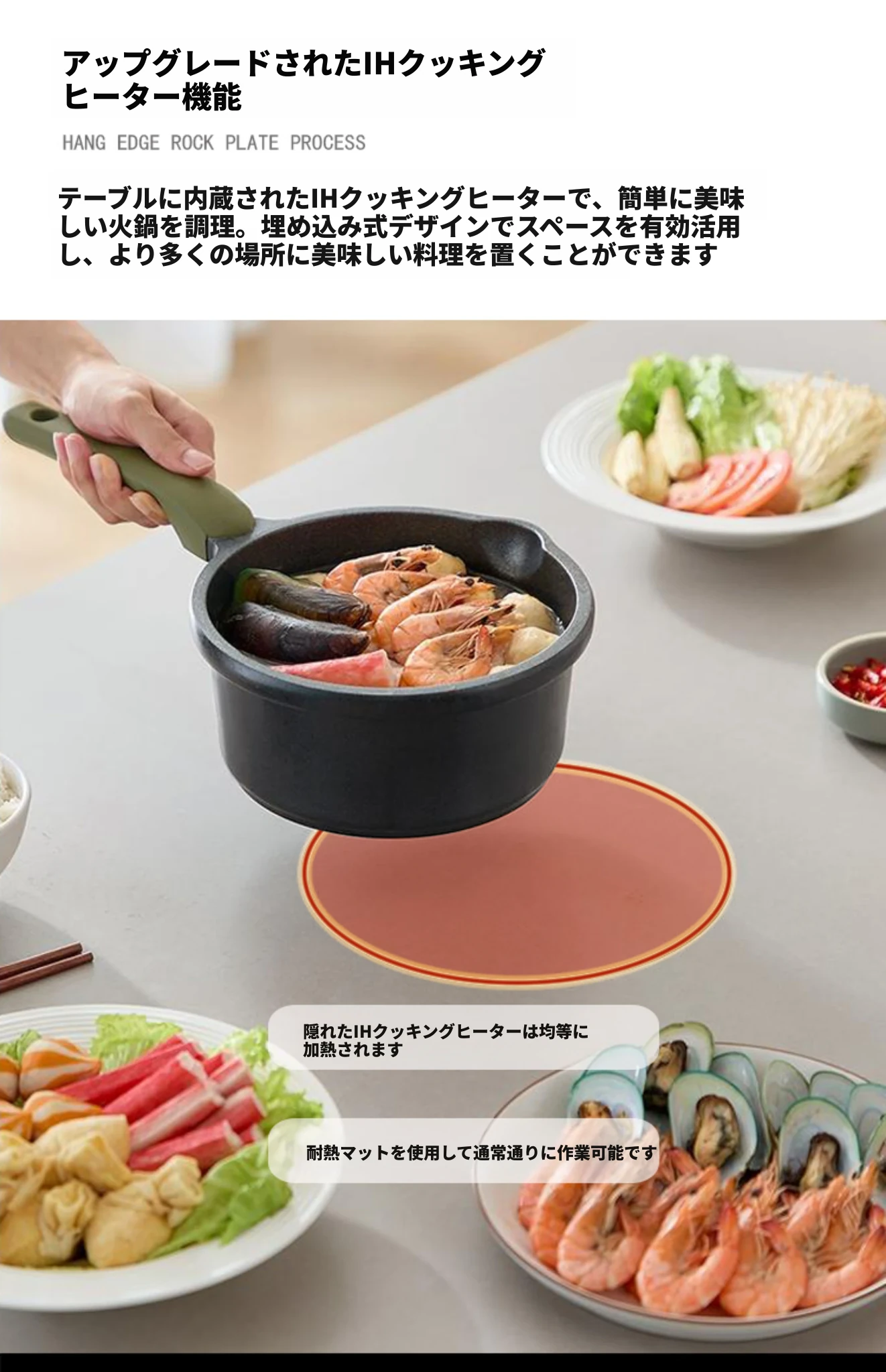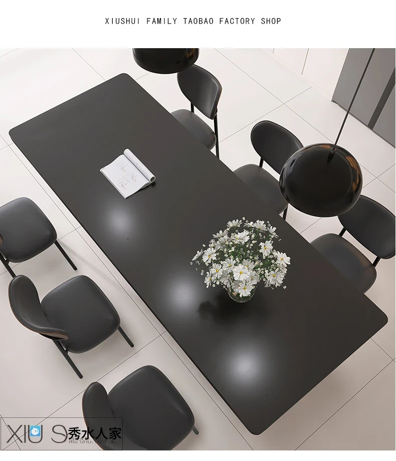 イタリアンミニマリズムの純黒厚板ダイニングテーブル&チェアセット、電磁調理器付き!宋式美学を取り入れたスタイリッシュな長方形アイランドテーブル、茶卓としても最適!おしゃれな空間を演出します。
