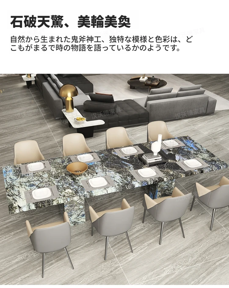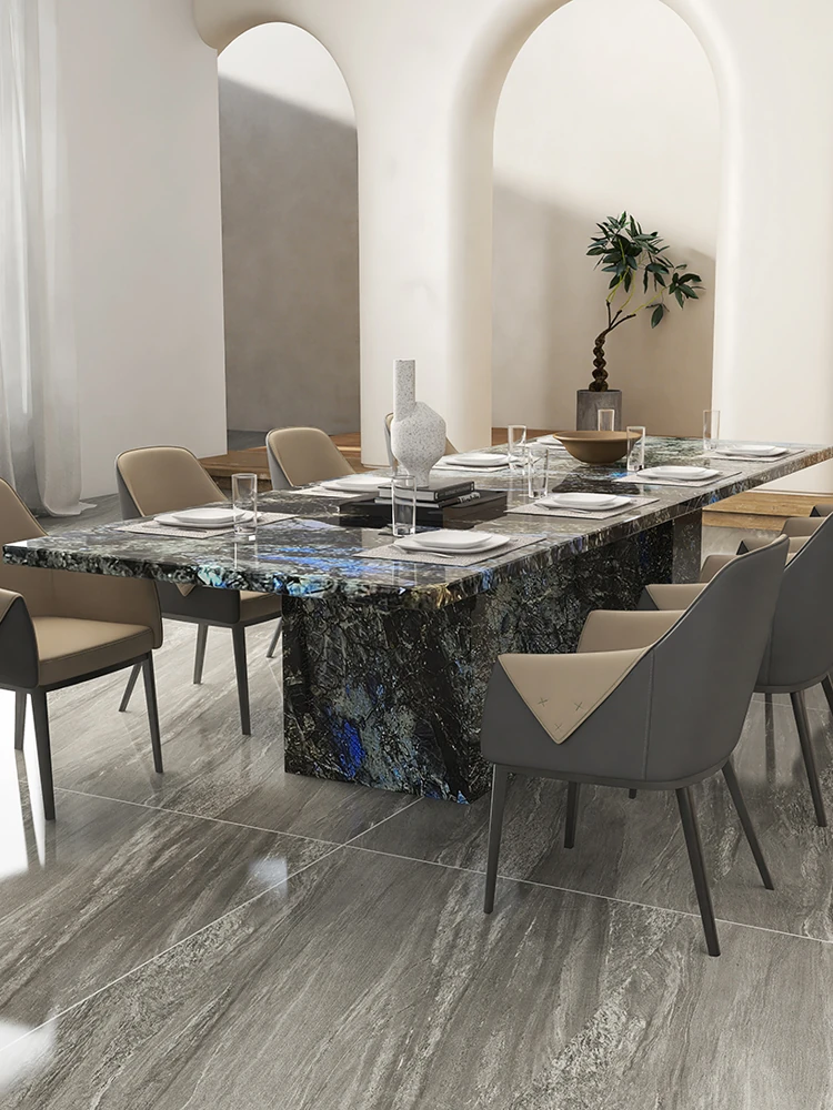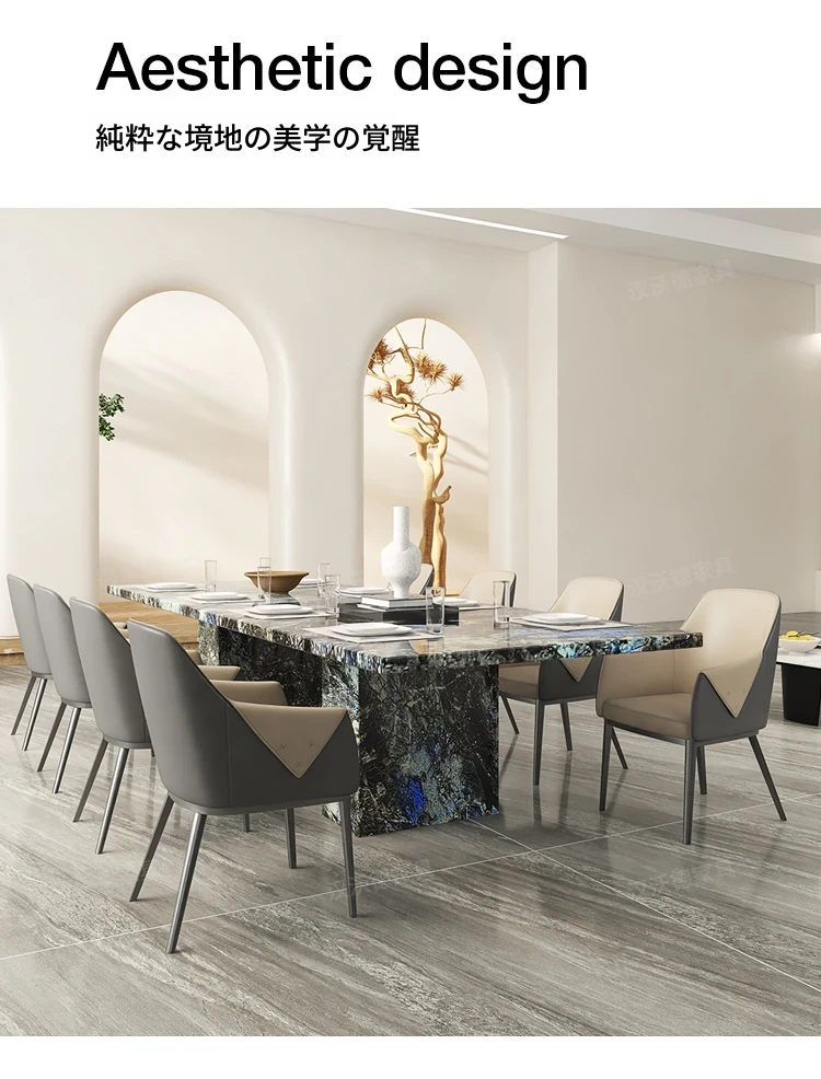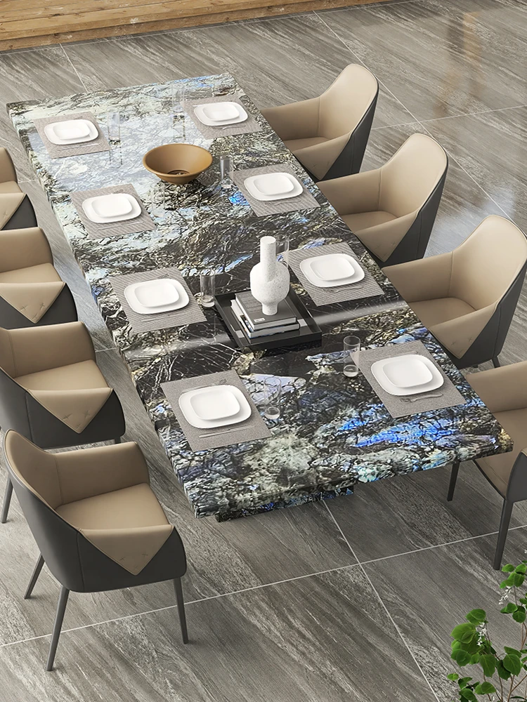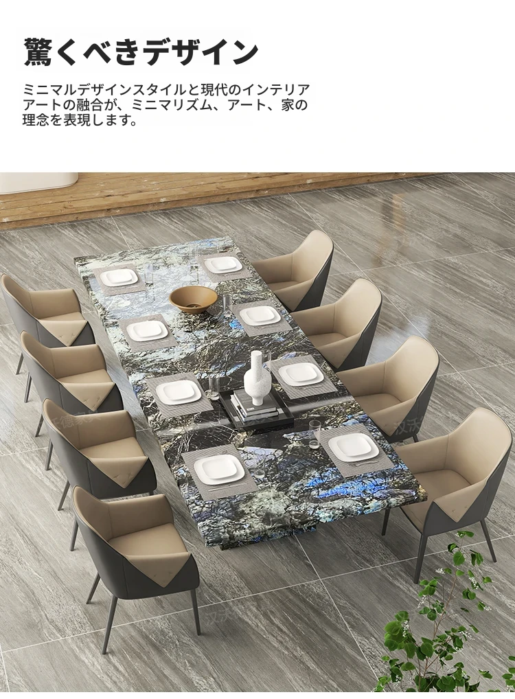 高級感溢れる大理石長方形ダイニングテーブル - 別荘にぴったり!10人用の贅沢な青い翡翠の石材で、特別な食事のひとときを演出します。
