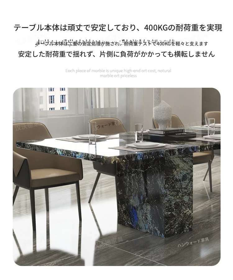 2.8メートル*1.2メートル大理石ダイニングテーブル
