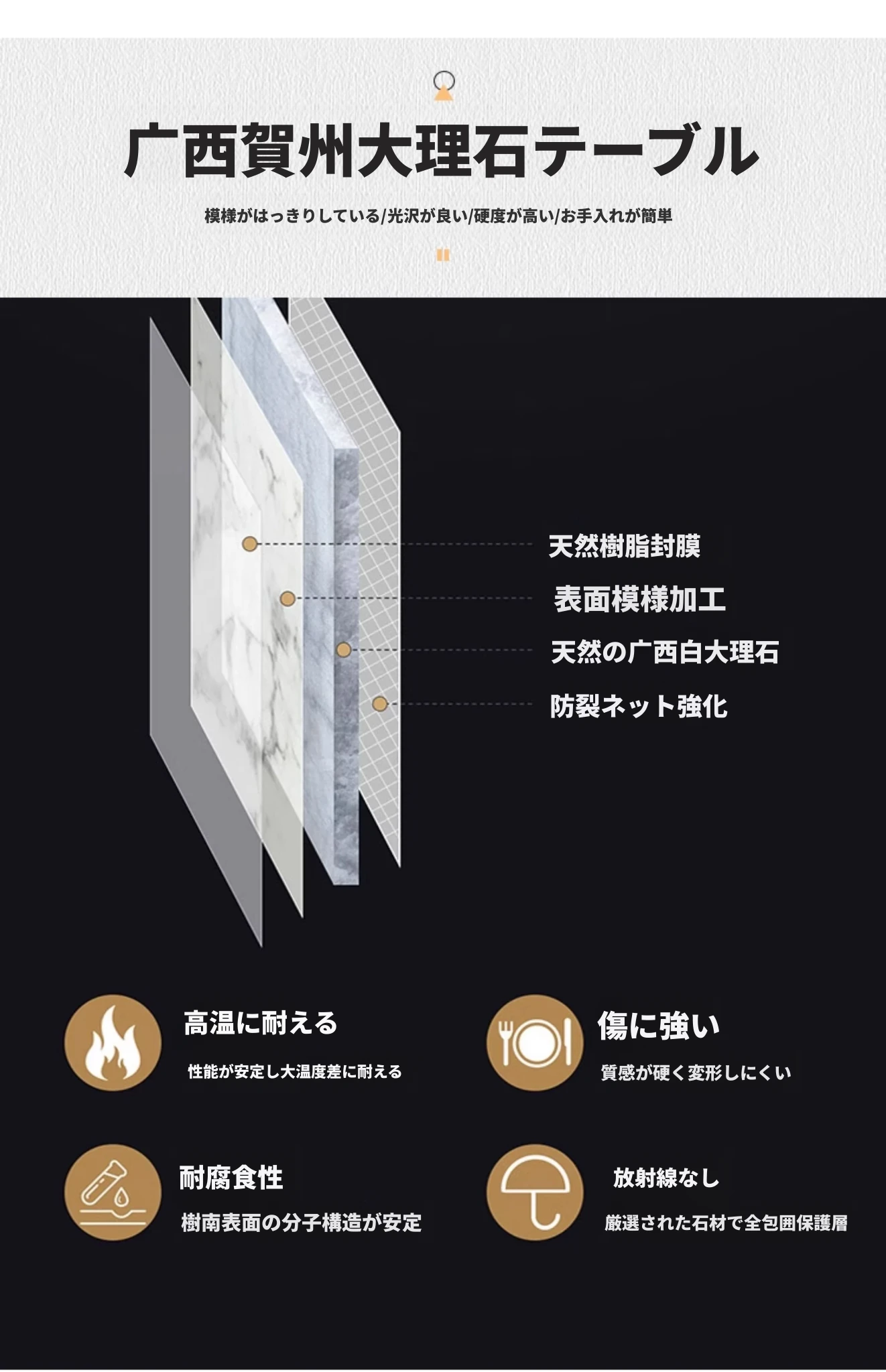 2.4メートル*1.1メートル大理石ダイニングテーブル