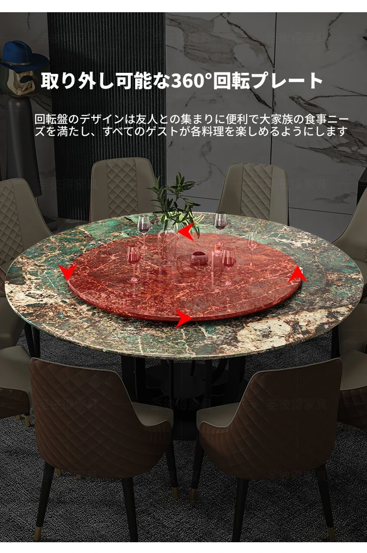 1.8メートル大理石ラウンドテーブル【電動回転プレート】