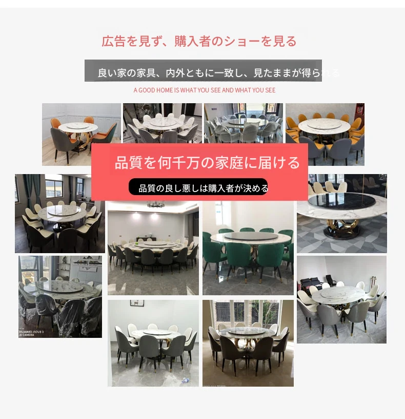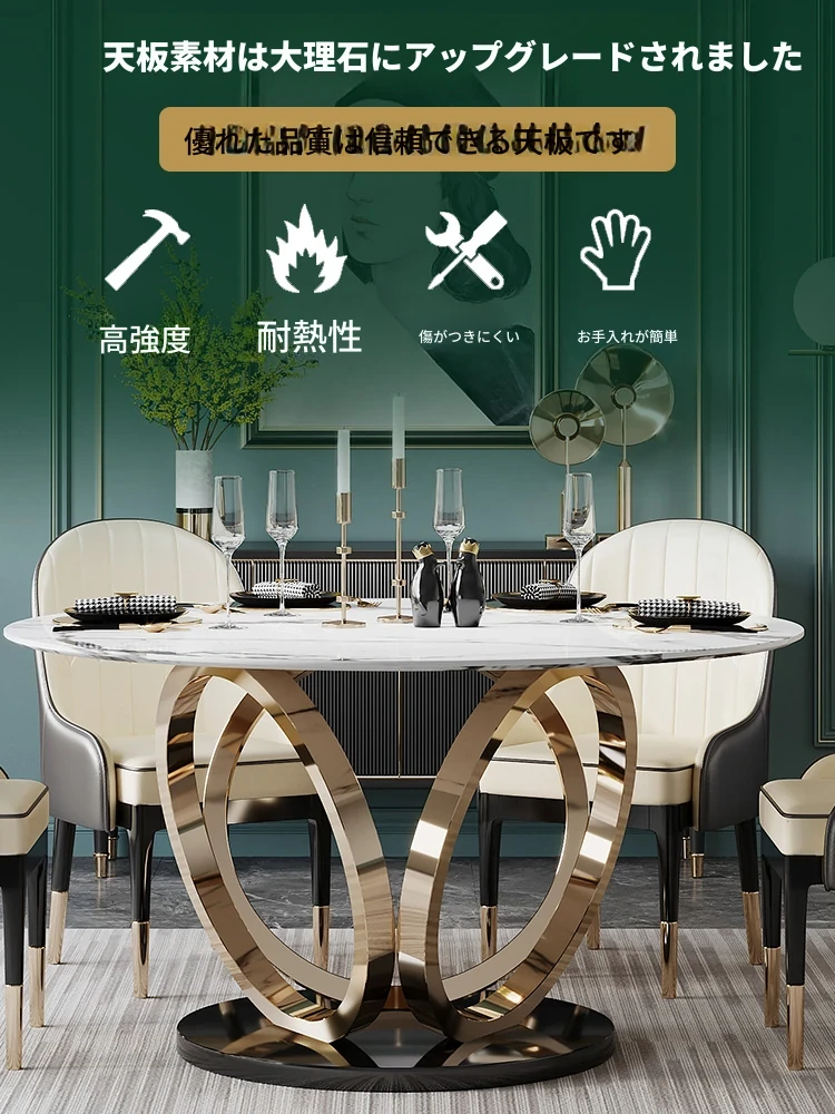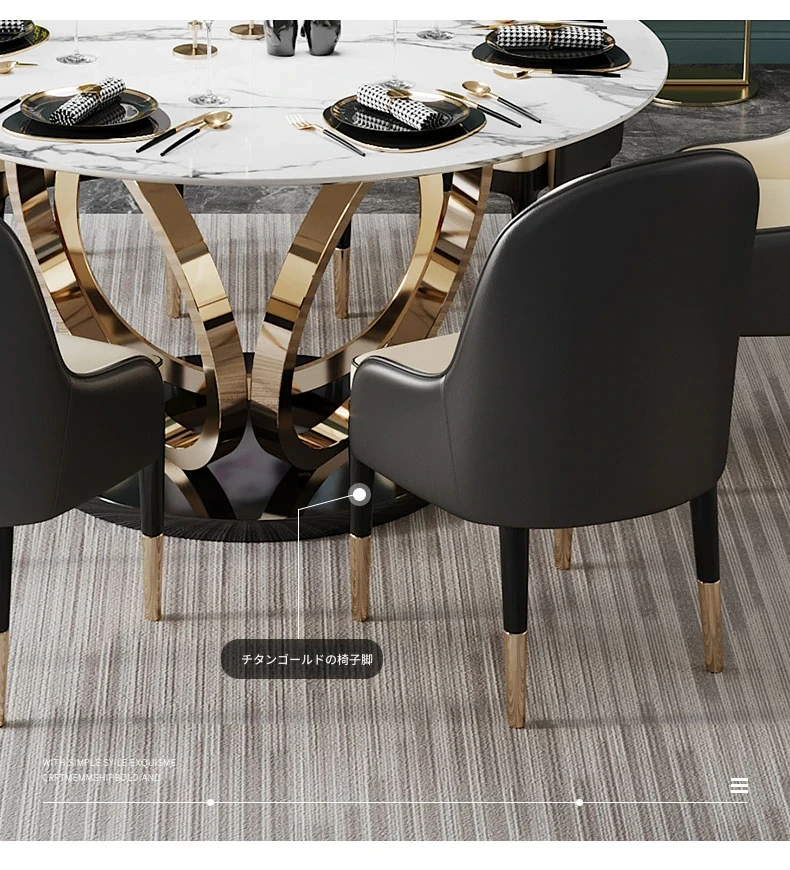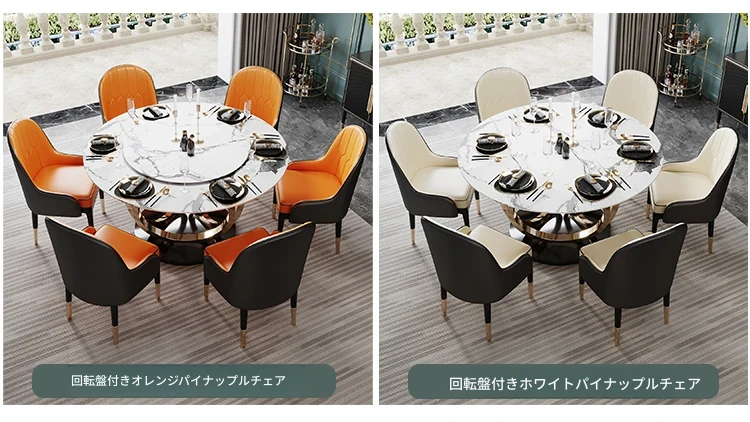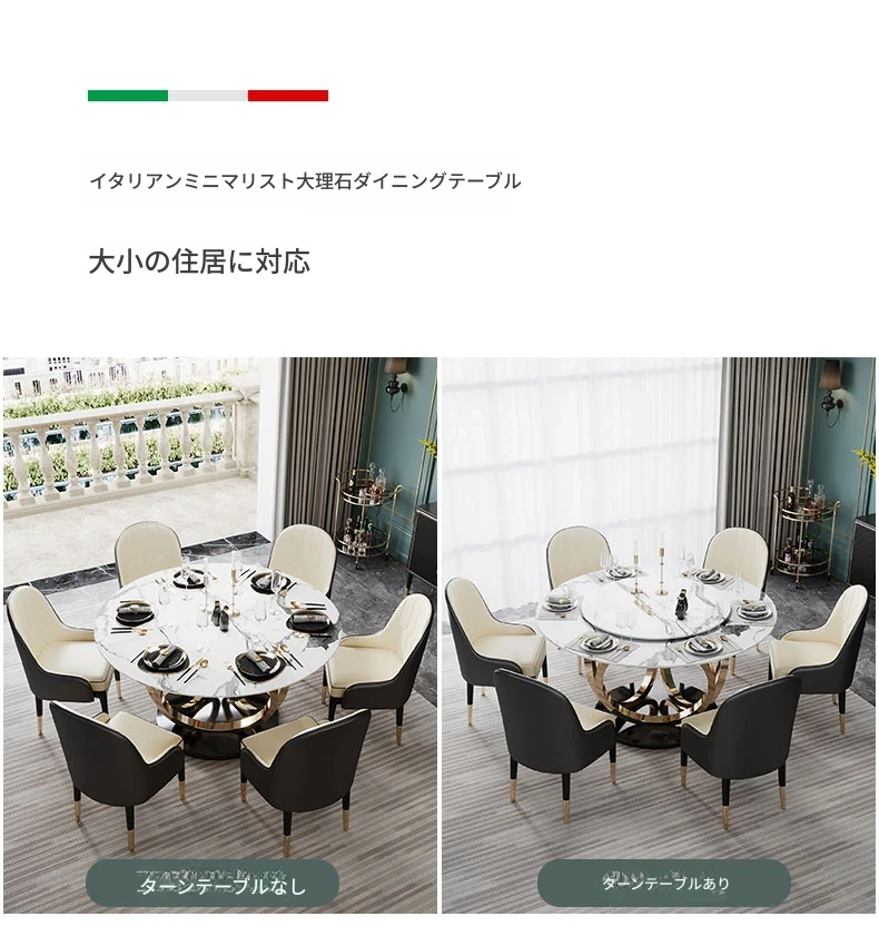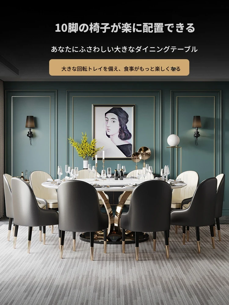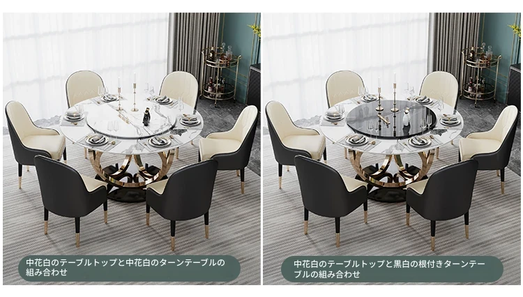 ラグジュアリーな大理石の円形ダイニングテーブル - 回転盤付きの広々としたデザイン、贅沢感あふれるヴィラスタイルの家用食卓。おしゃれな空間を演出し、特別なひとときを提供します。