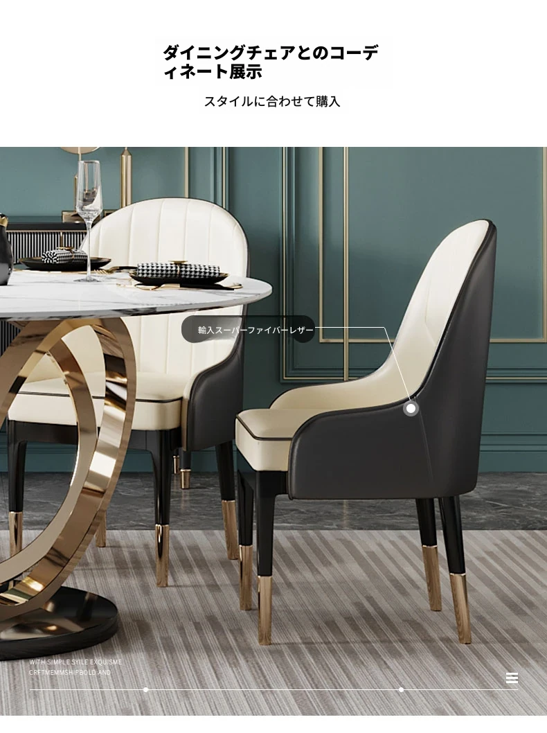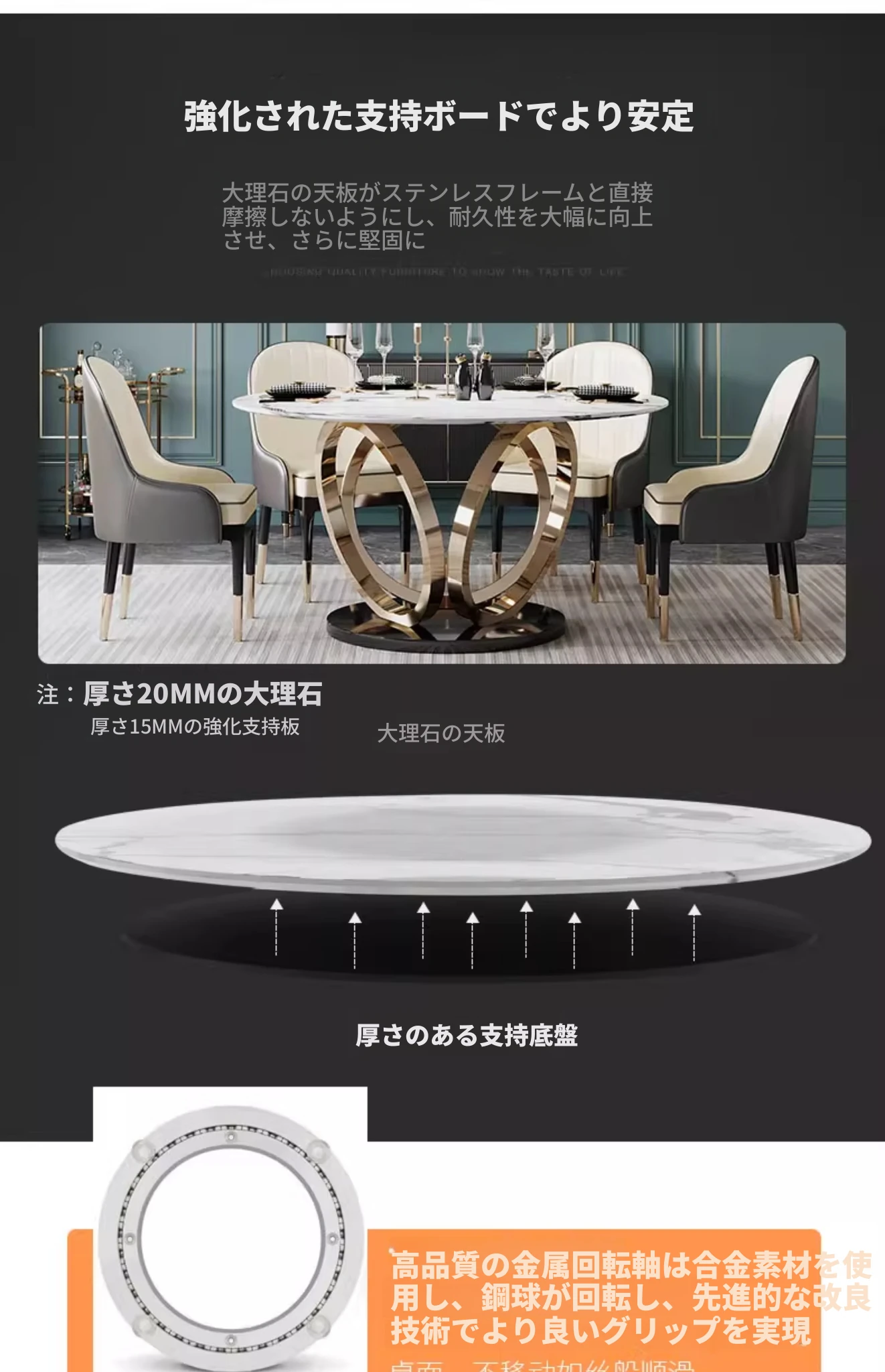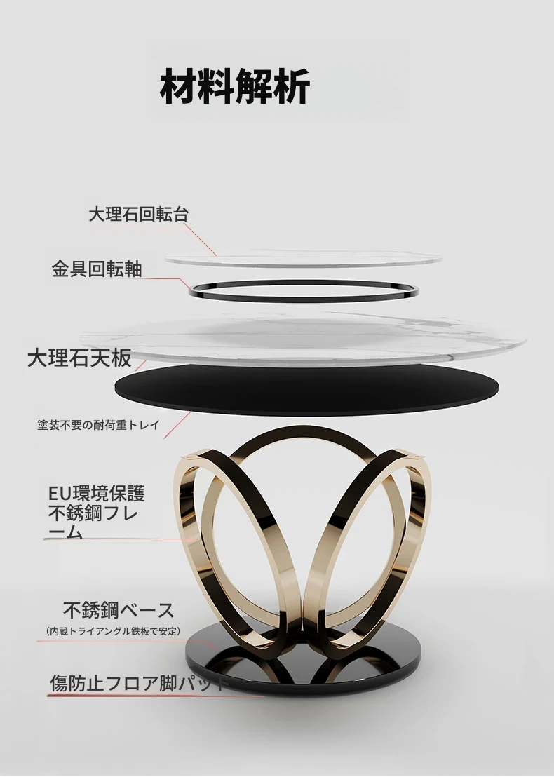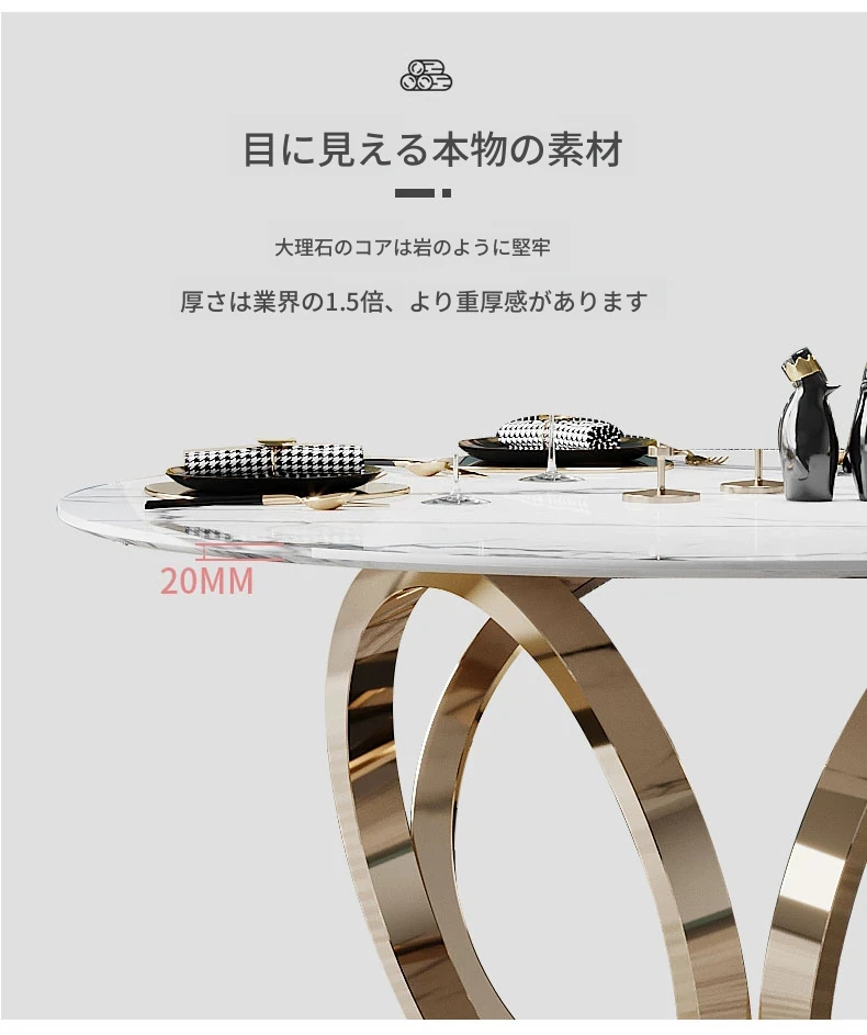 ラグジュアリーな大理石の円形ダイニングテーブル - 回転盤付きの広々としたデザイン、贅沢感あふれるヴィラスタイルの家用食卓。おしゃれな空間を演出し、特別なひとときを提供します。