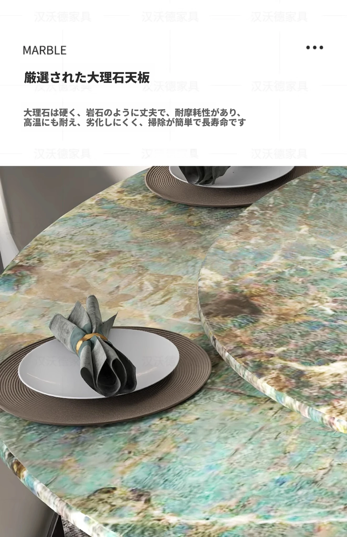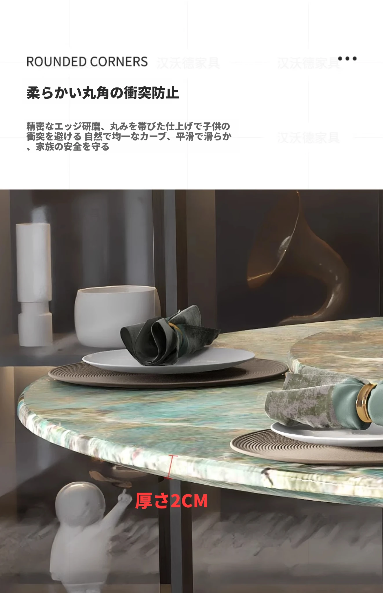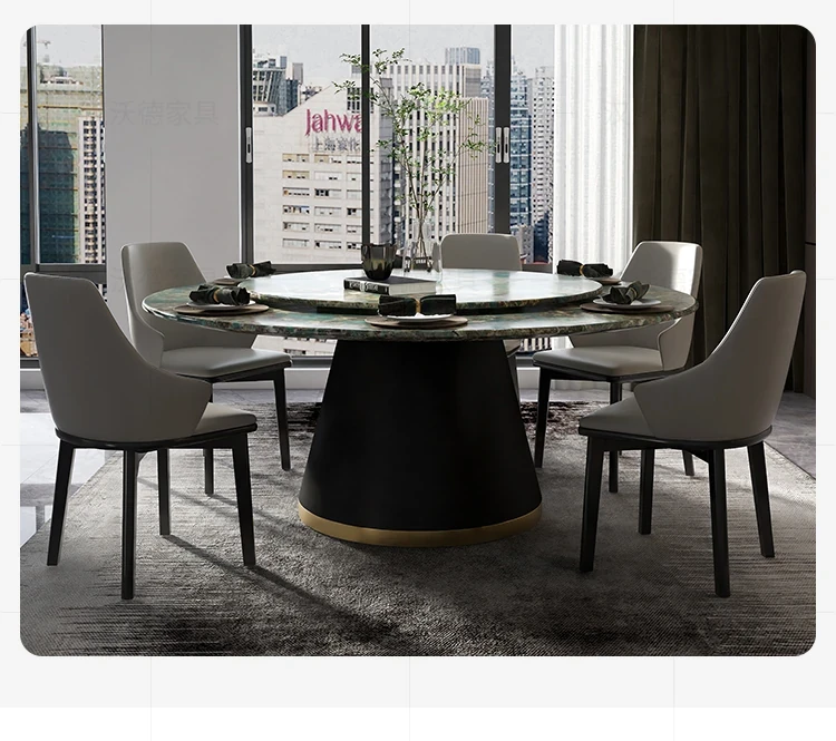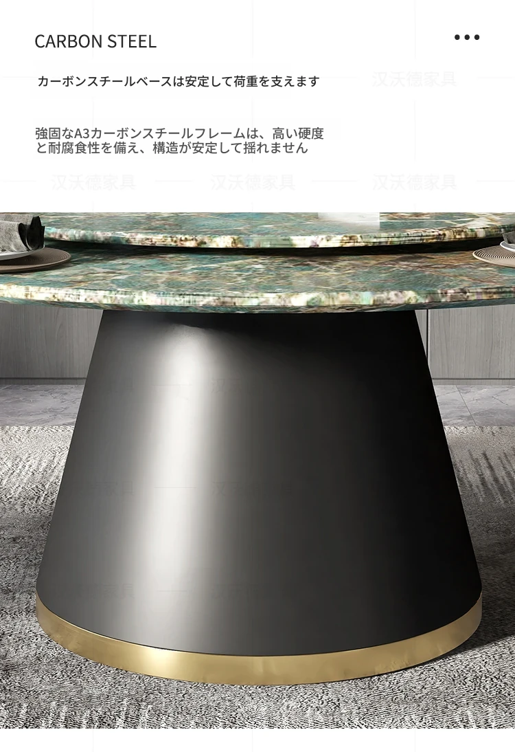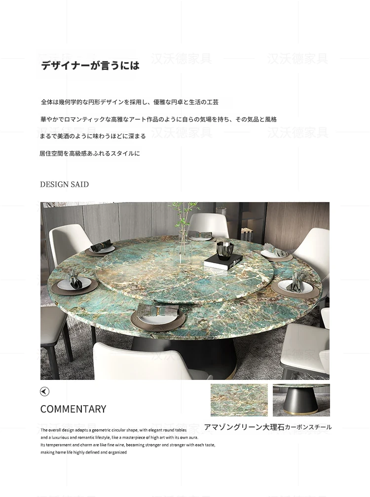 高級大理石円形ダイニングテーブル - 10人用電動回転式、贅沢なヴィラスタイルの食卓セット!家族や友人との特別なひとときを演出します。