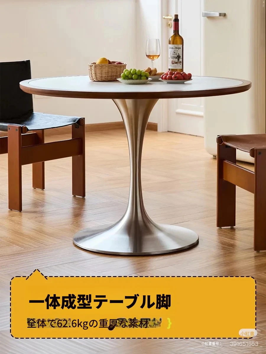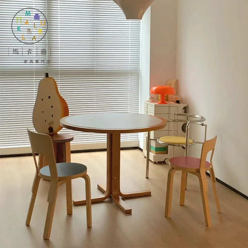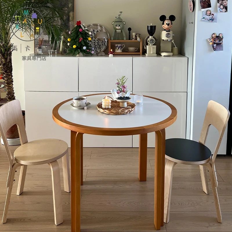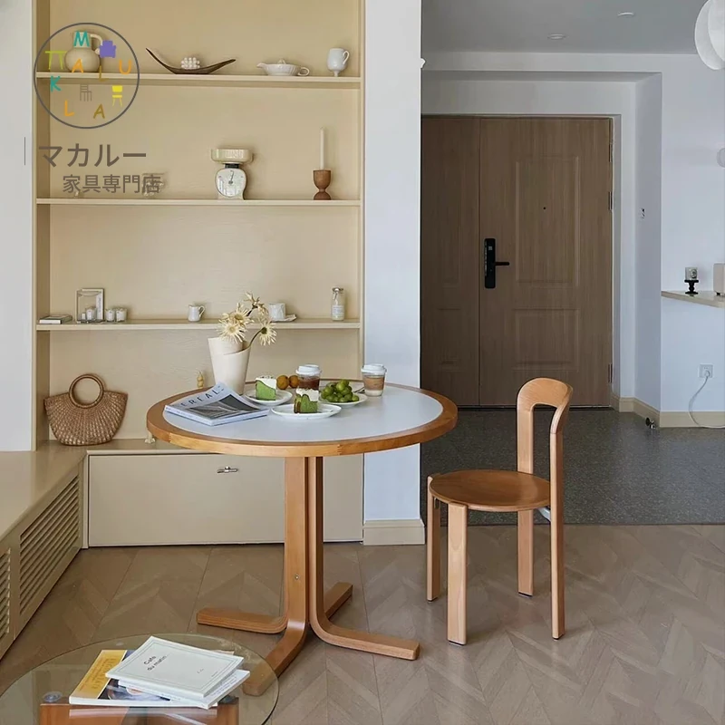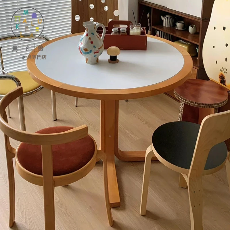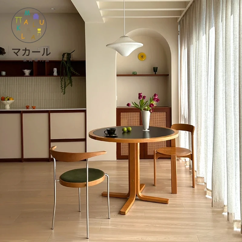 マカリュウビンテージ無垢材ロックボードダイニングテーブル|小スペースに最適!北欧スタイルの丸型テーブルとチェアセットで、心地よい食卓を演出します。