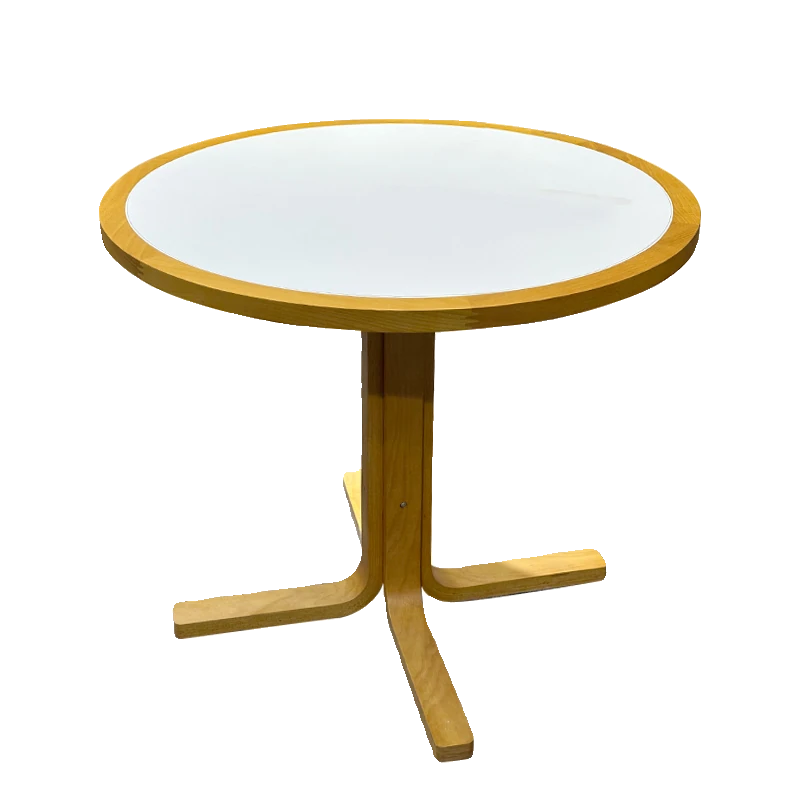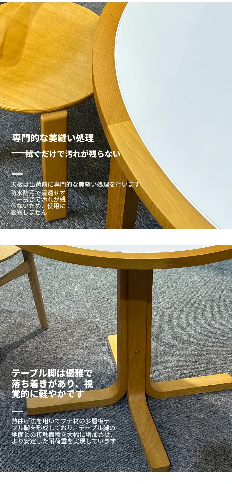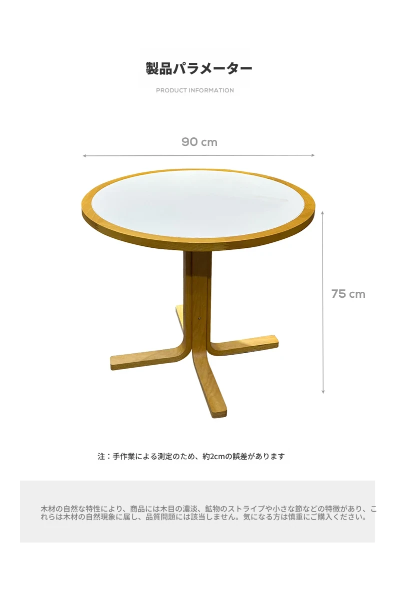 1m円形白色岩板包榉木テーブル