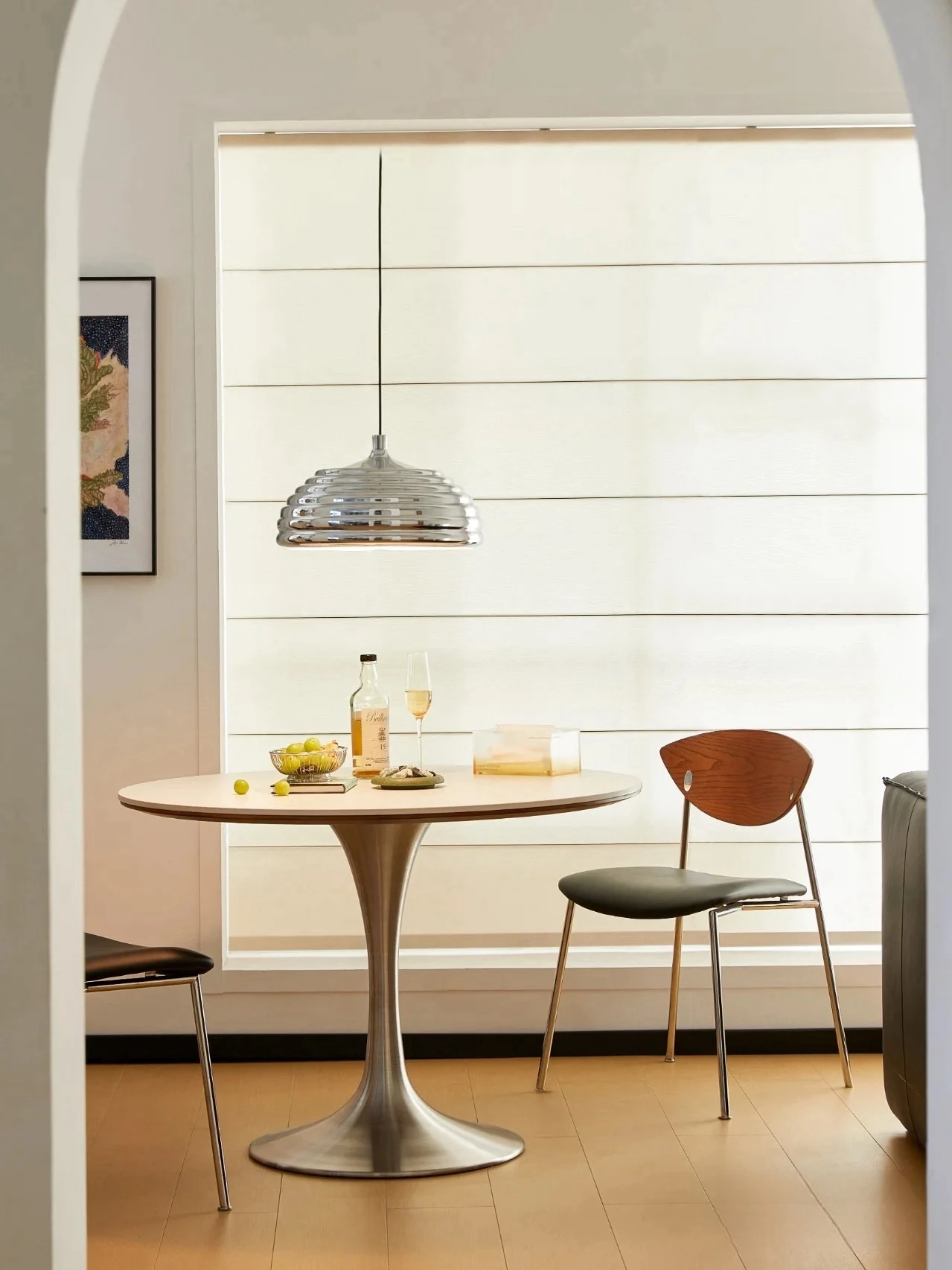 1.1m円形白色岩板包榉木テーブル