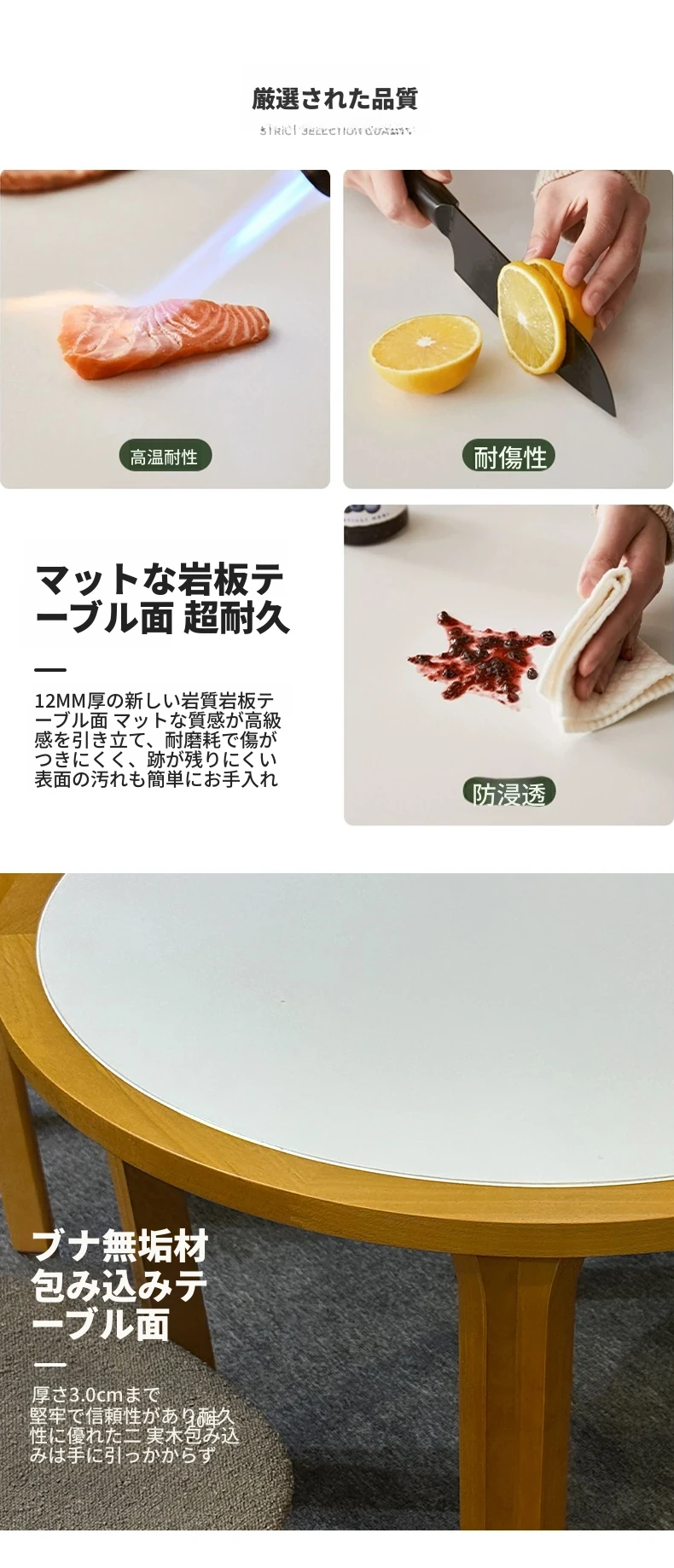 90cm白色岩板包榉木テーブル