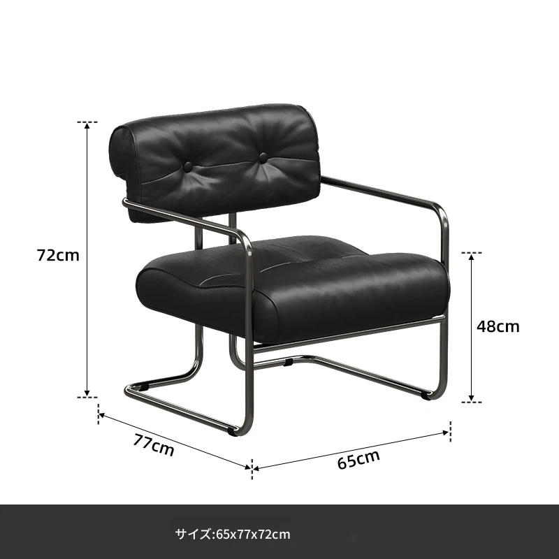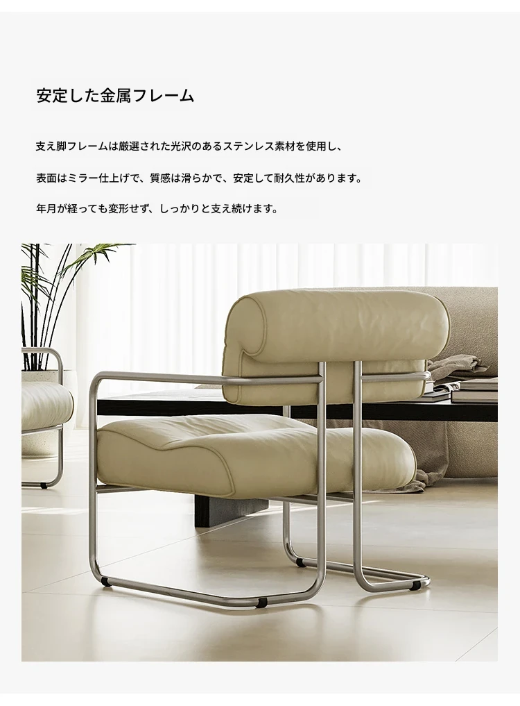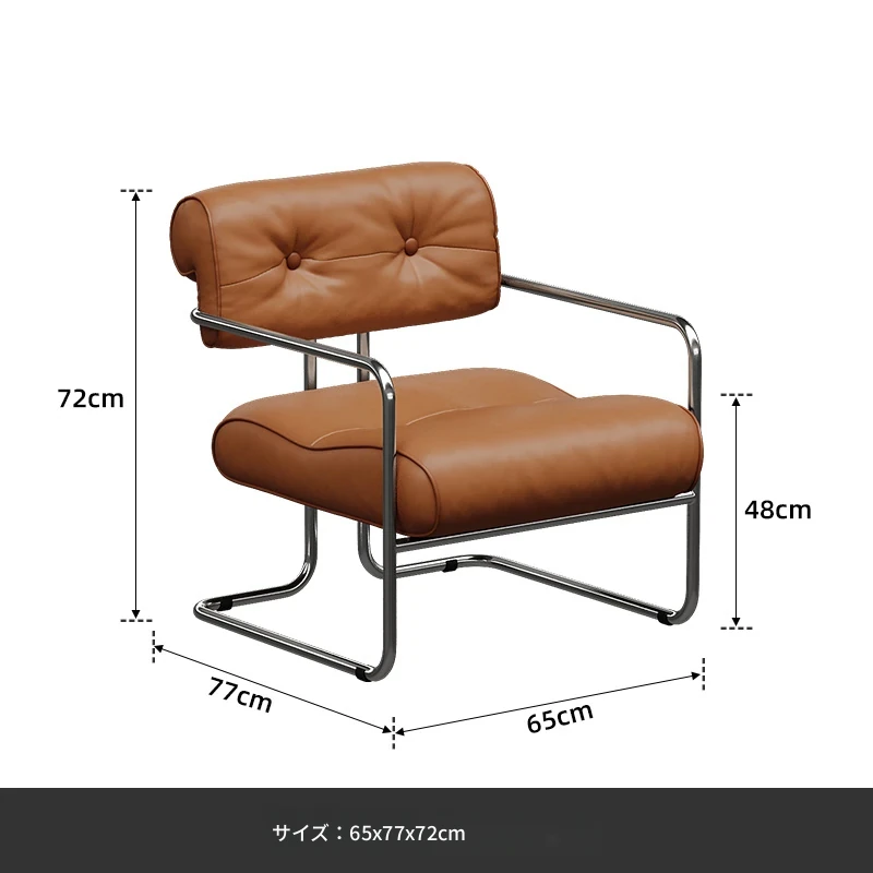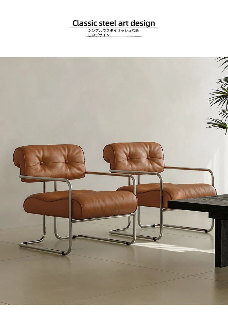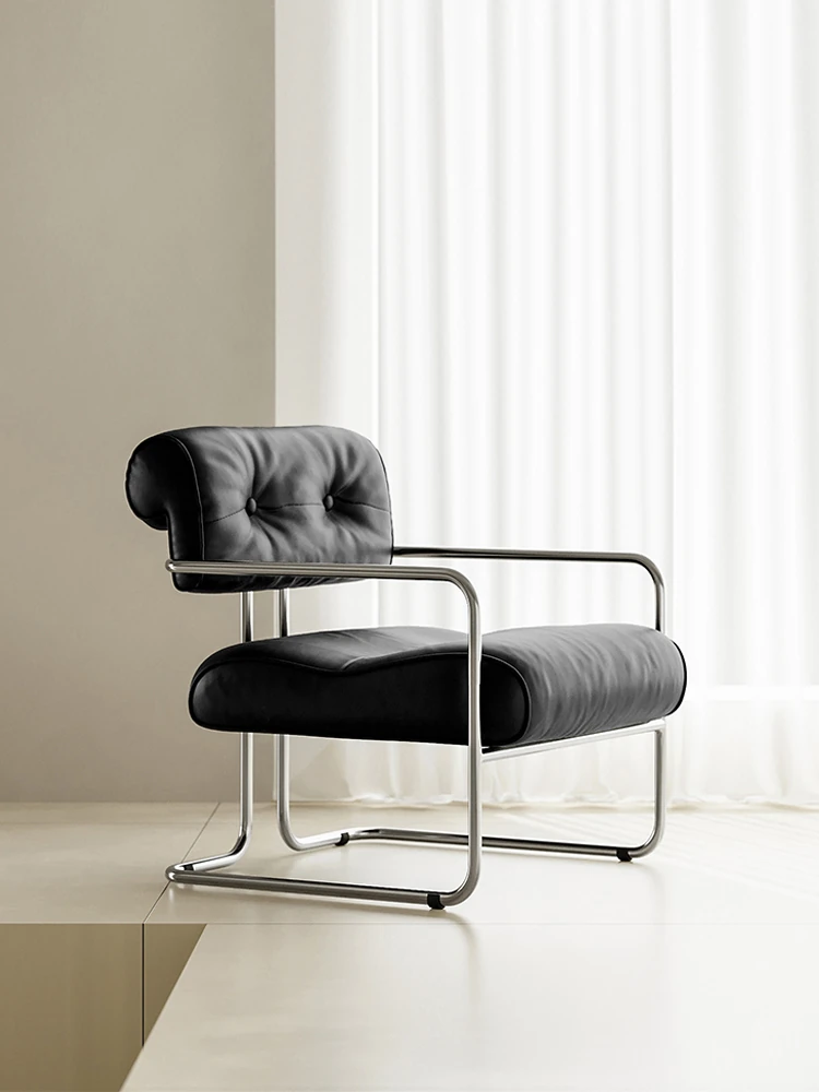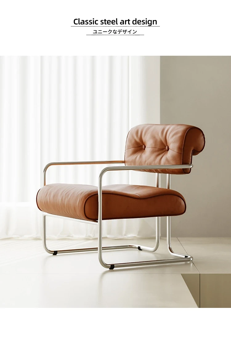 中古バウハウスデザインの一人掛けソファ、スタイリッシュなステンレススチールアーム、イタリアンミニマリズムのリビング用リラックスチェア。洗練されたデザインで、あなたの空間を格上げ!
