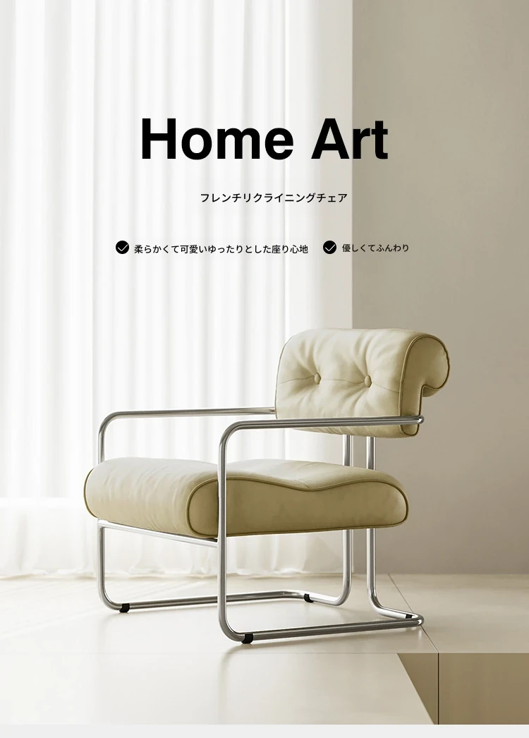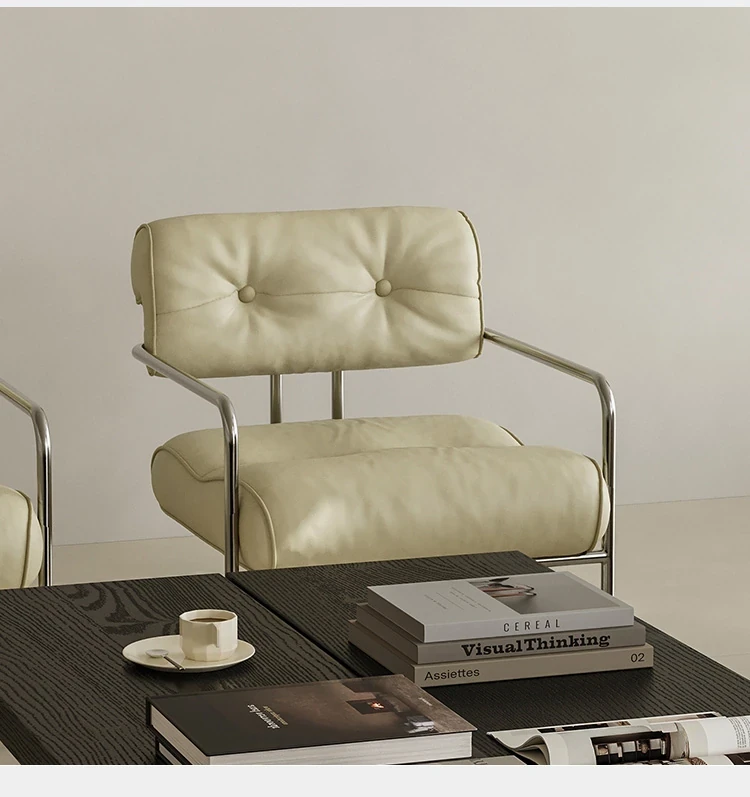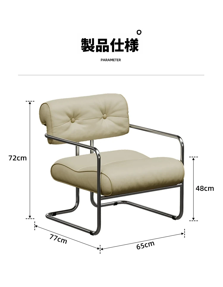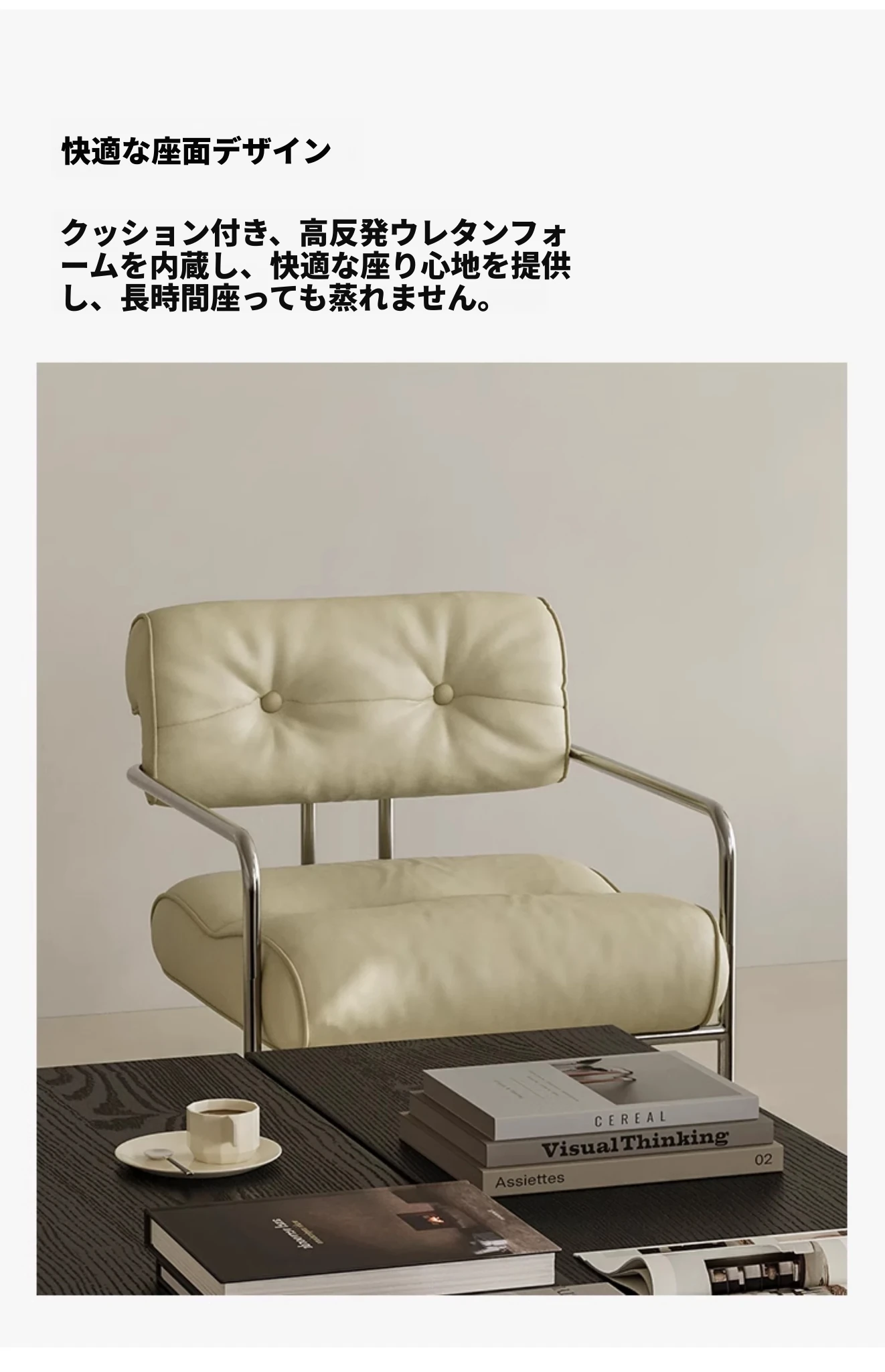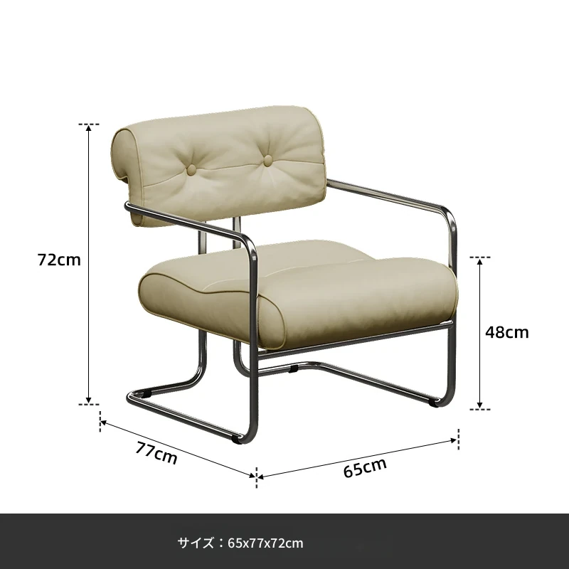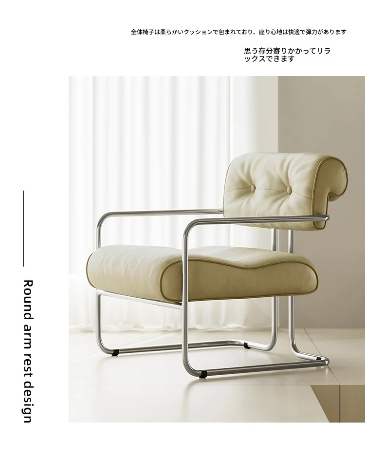 中古バウハウスデザインの一人掛けソファ、スタイリッシュなステンレススチールアーム、イタリアンミニマリズムのリビング用リラックスチェア。洗練されたデザインで、あなたの空間を格上げ!