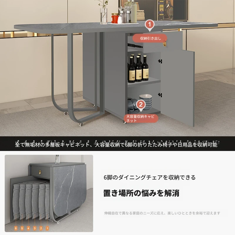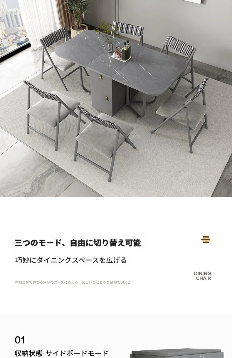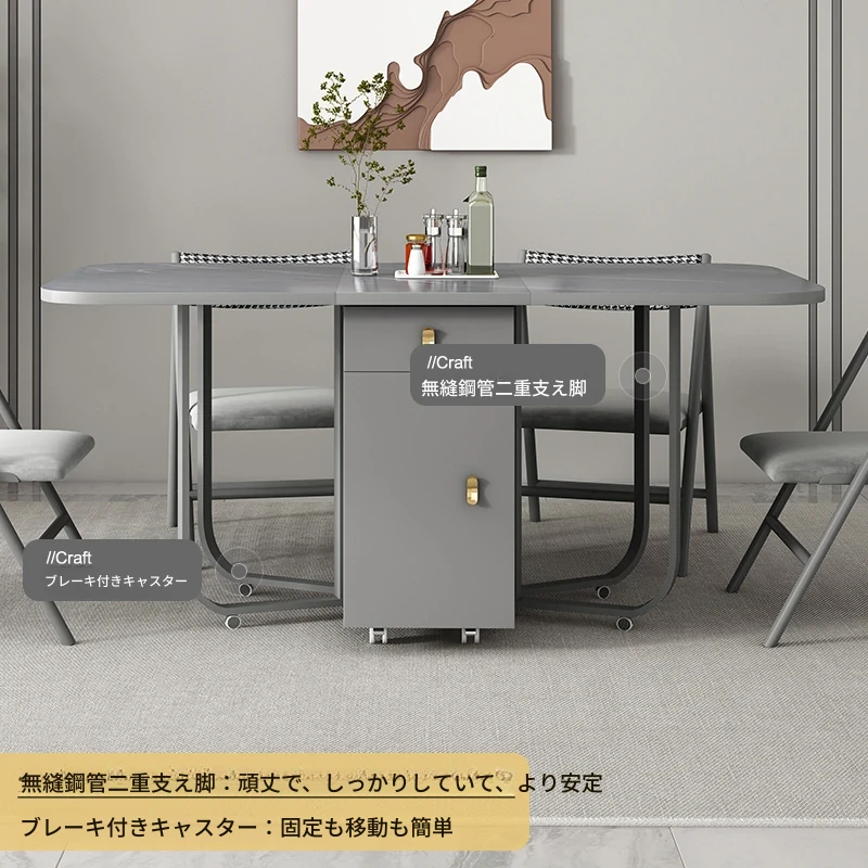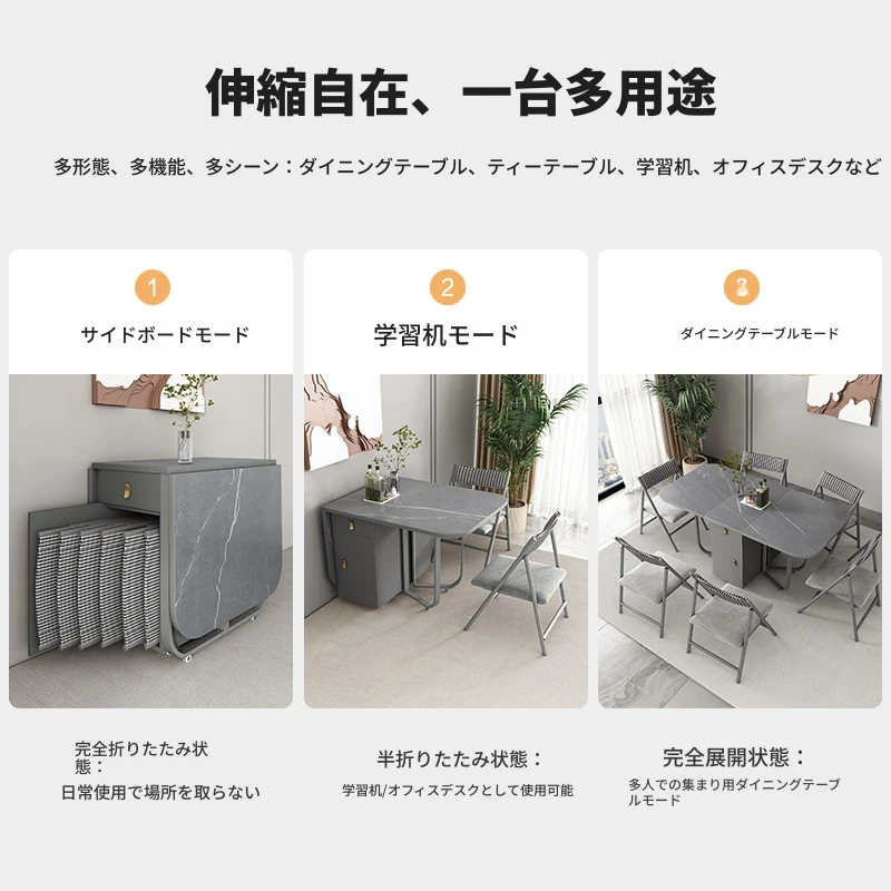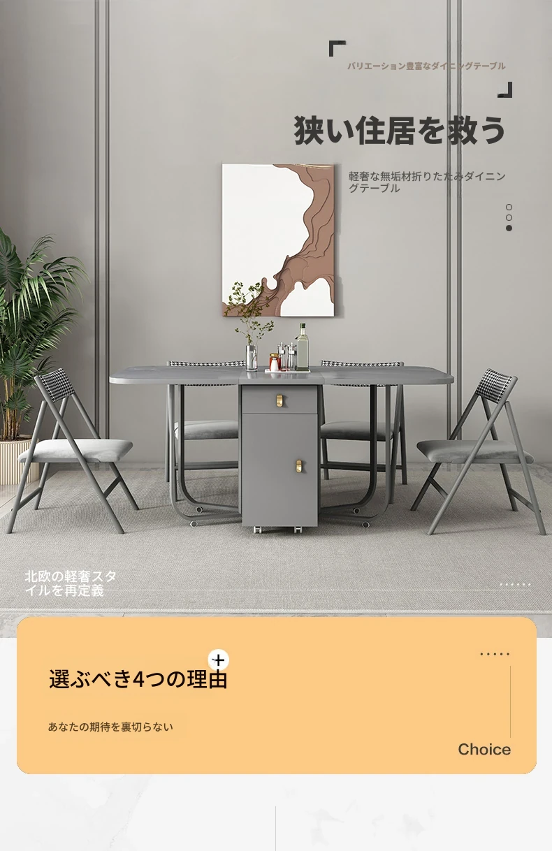 ミニマルデザインの折りたたみ式ダイニングテーブル&チェアセット|コンパクトな家に最適な天然木製、シンプルで伸縮可能なテーブル|省スペースでスタイリッシュな食卓を実現!