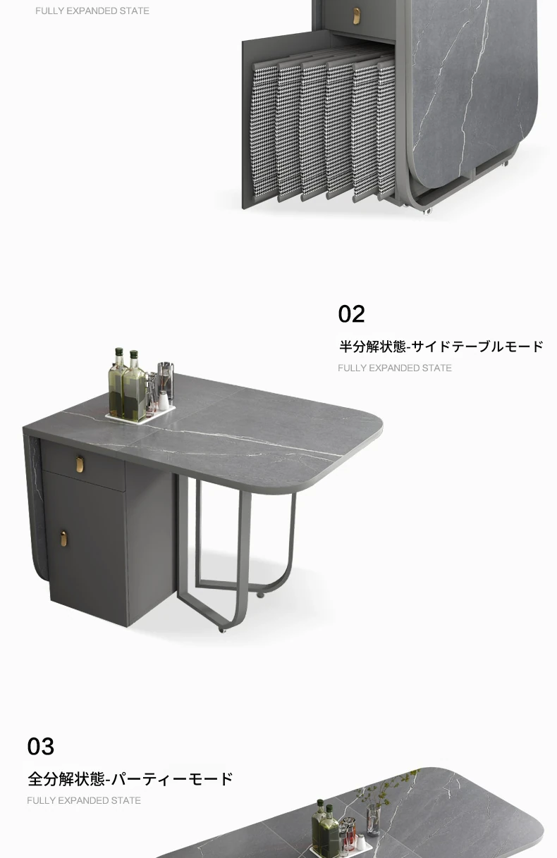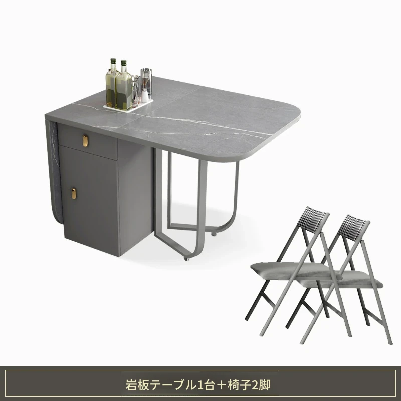 1.4メートル岩板ダイニングテーブル(アルマーニグレー)+2椅子