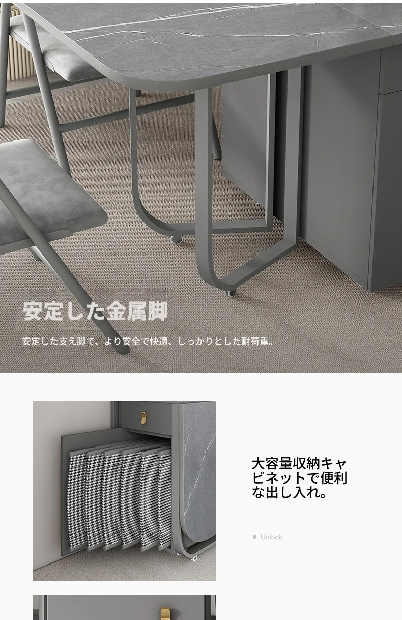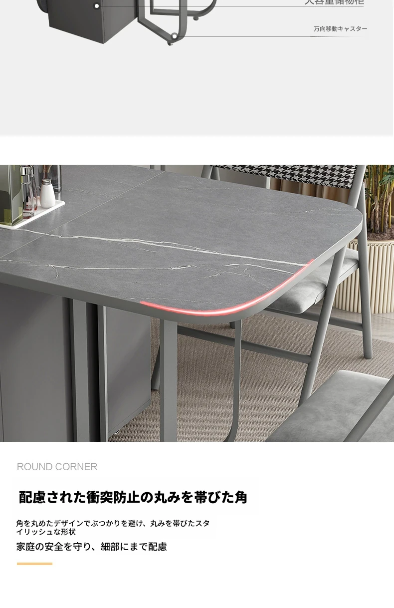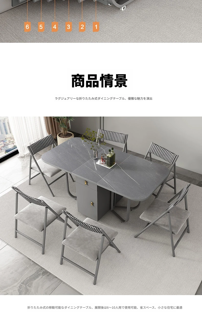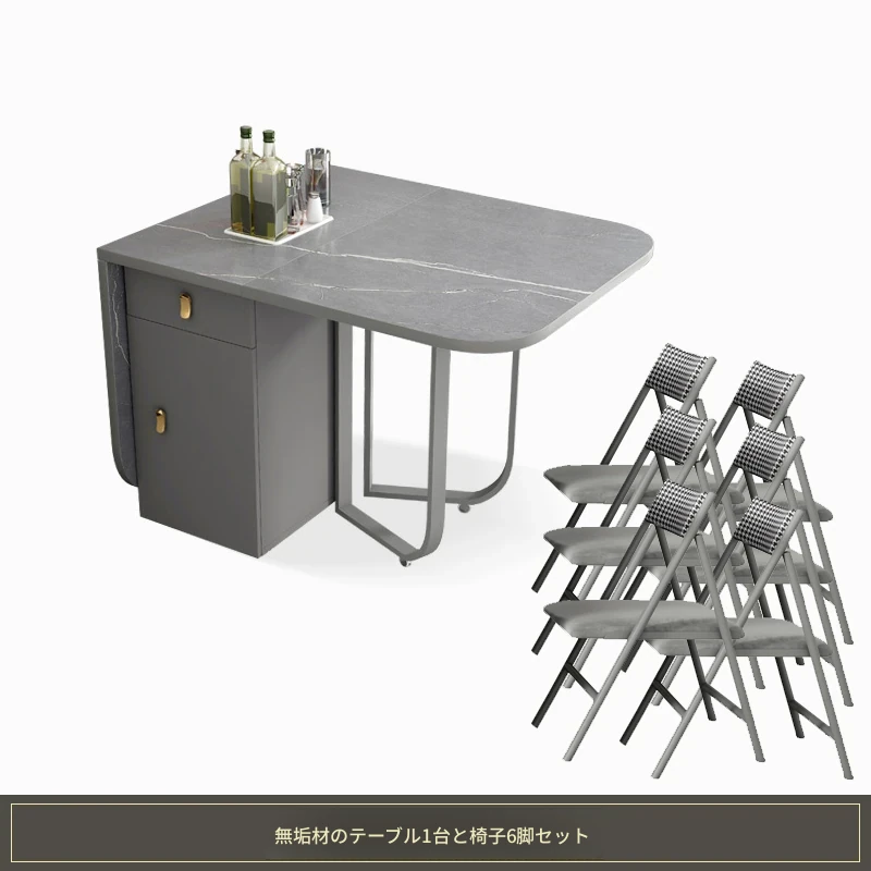1.4メートル岩板ダイニングテーブル(アルマーニグレー)+6椅子