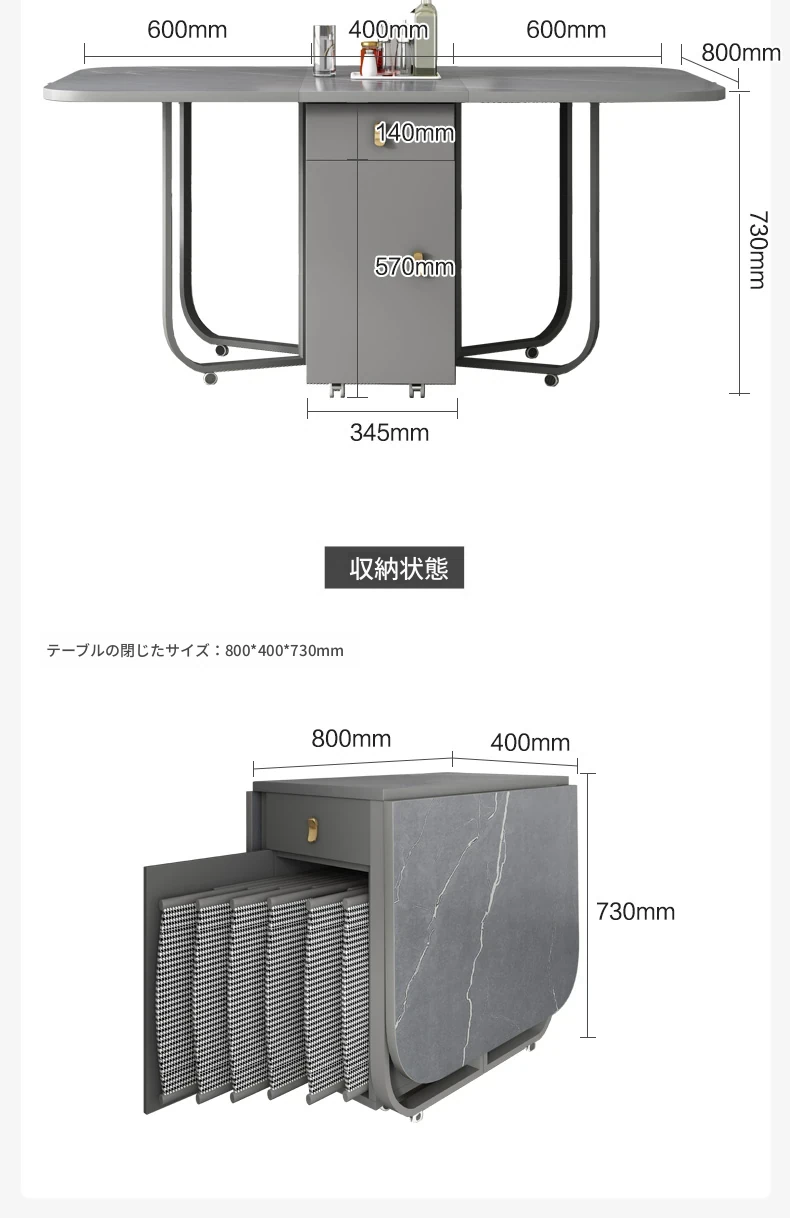 1.4メートル岩板ダイニングテーブル(アルマーニグレー)+4椅子