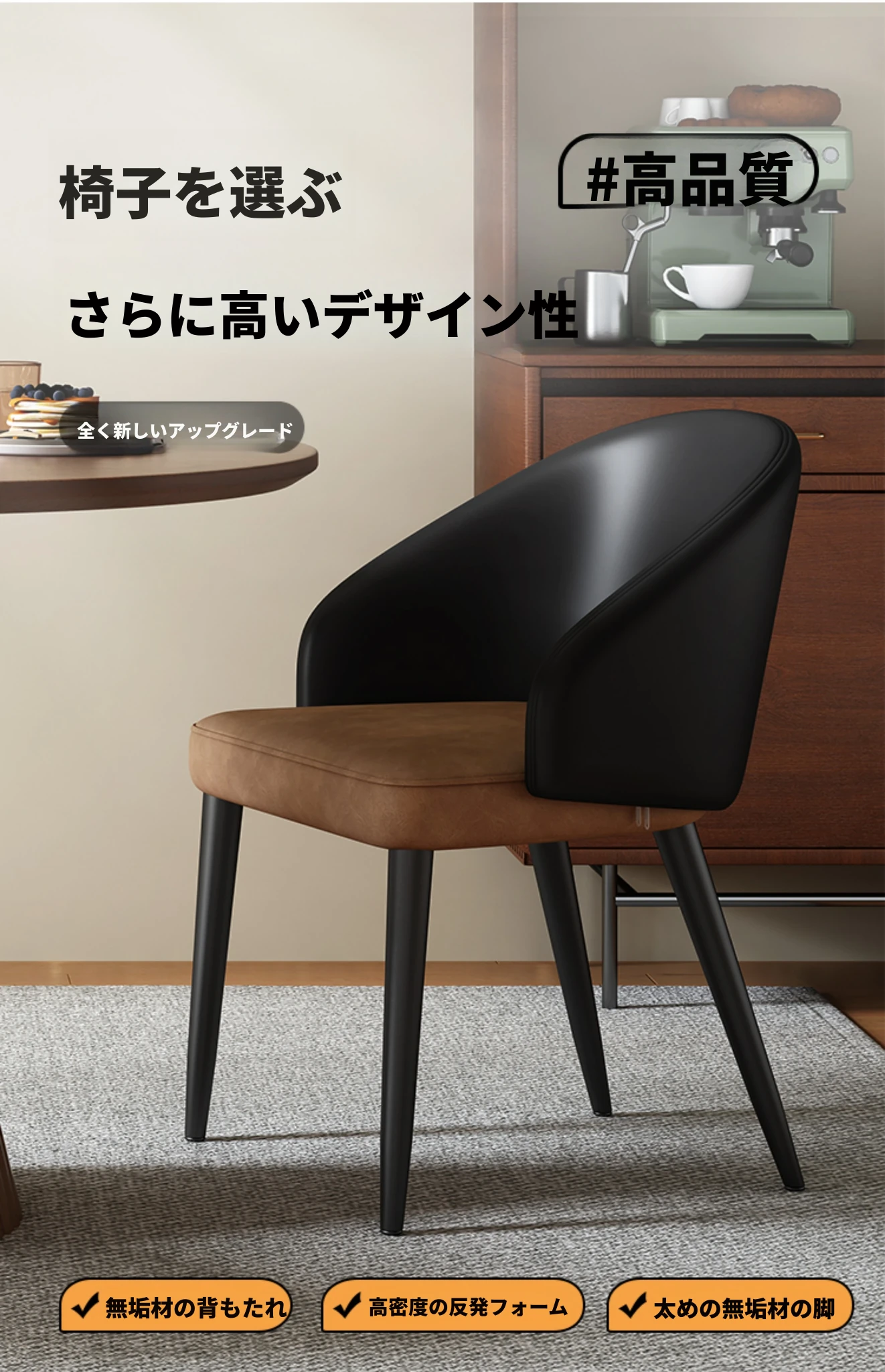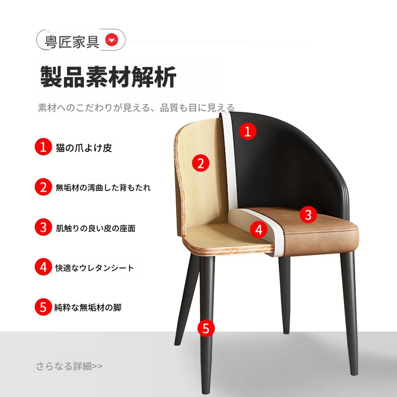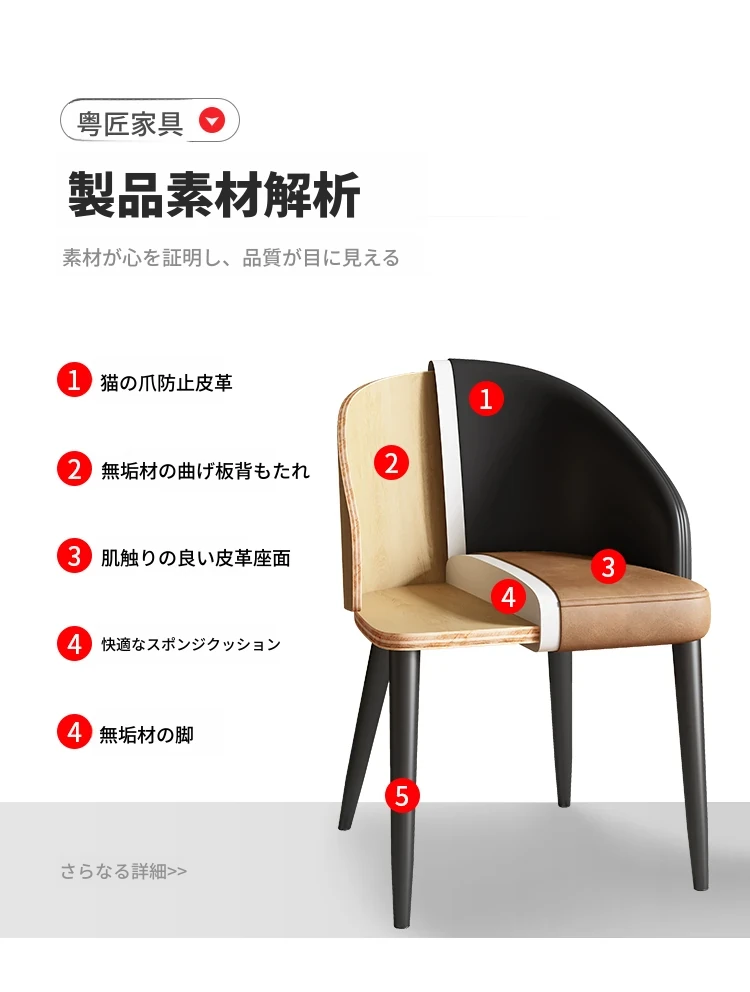 軽やかな贅沢感を演出する侘び寂び風デザインのレストランチェア。柔らかなレザー張りと曲線美を持つ木製カフェチェアは、家庭や書斎にぴったり。上質な木材を使用した心地よい座り心地で、あなたの空間を格上げします。