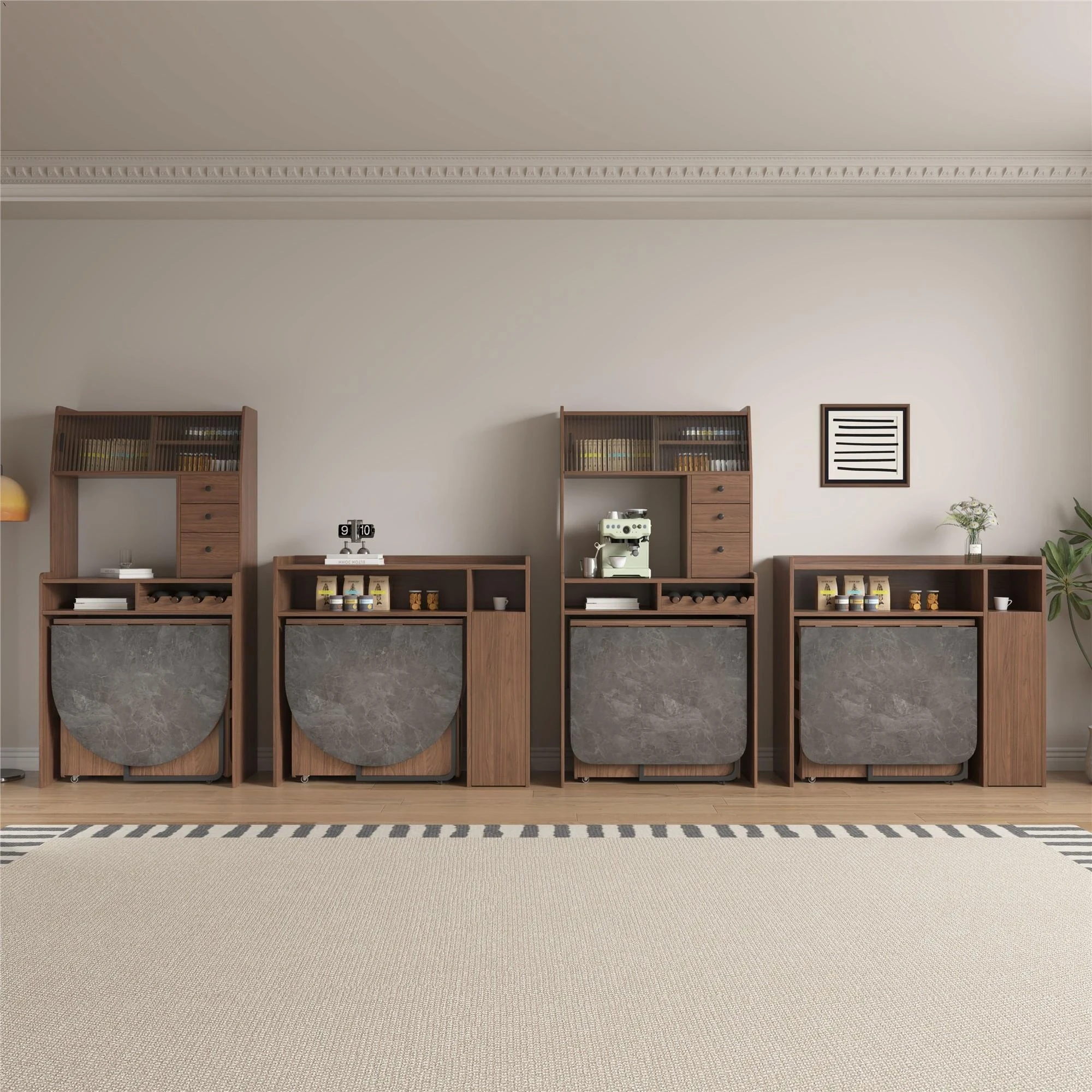 方形岩板無垢材ダイニングテーブル+4ウォールナット合金チェア+高いサイドボード