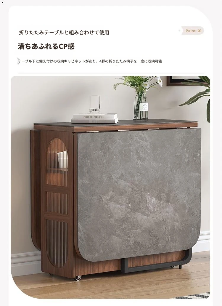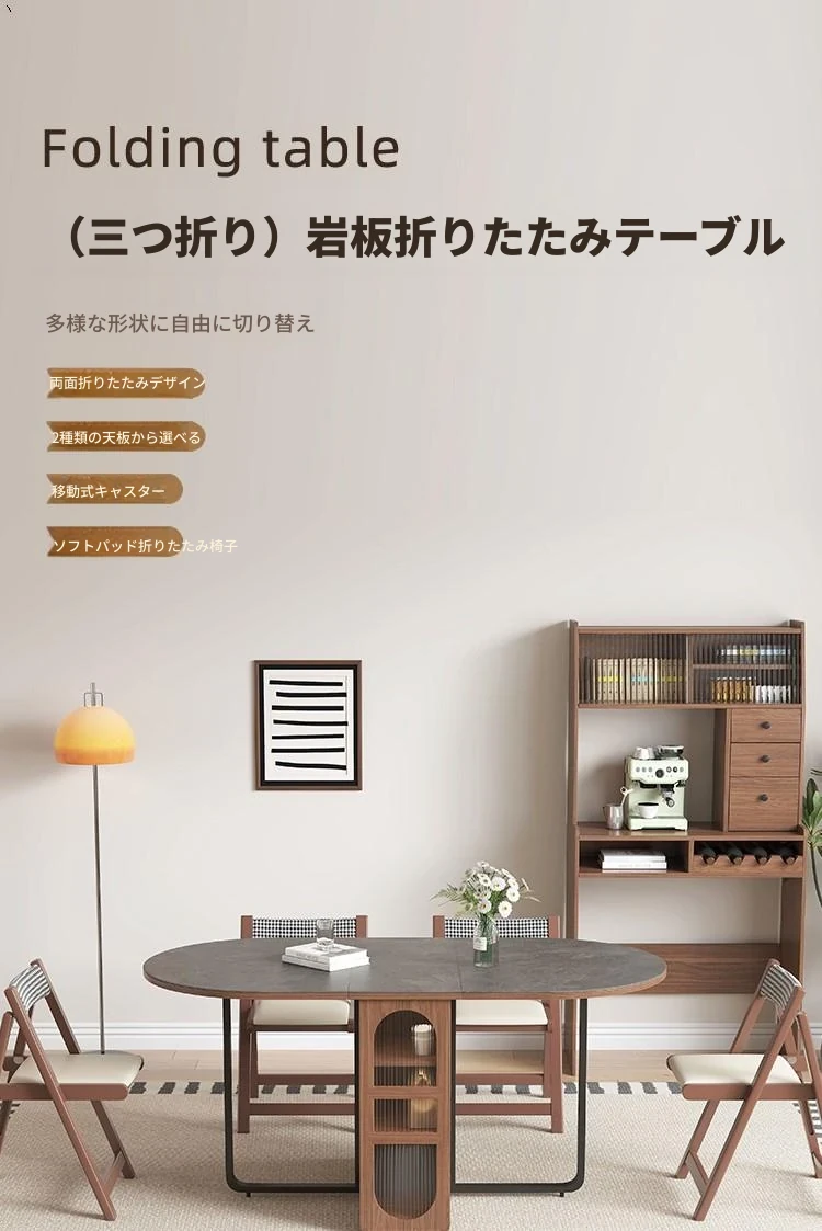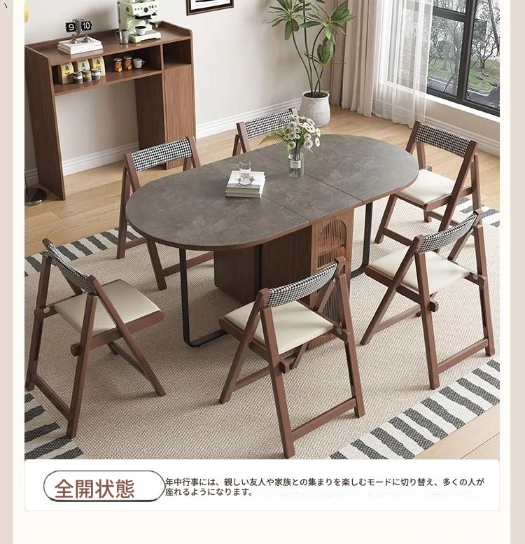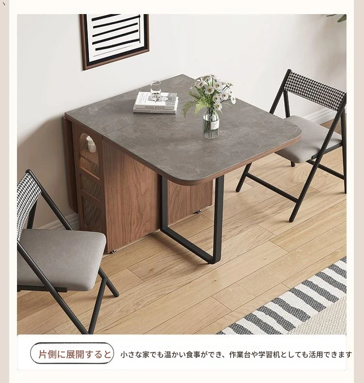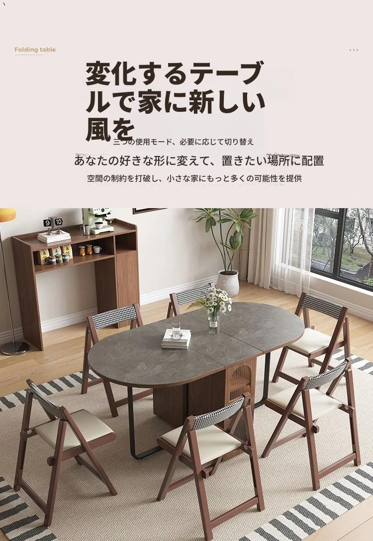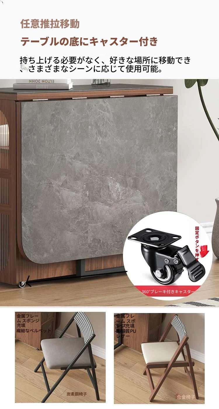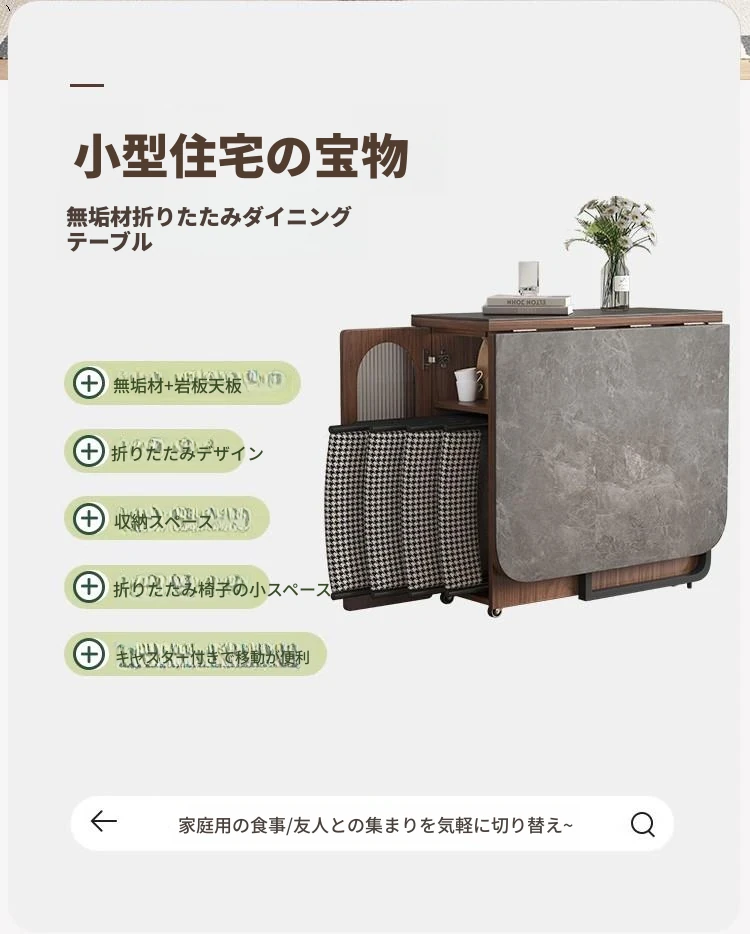折りたたみ式岩板ダイニングテーブル|省スペースに最適!モダンデザインの実木製テーブル&チェアセット|小型住宅にぴったり|移動も簡単!