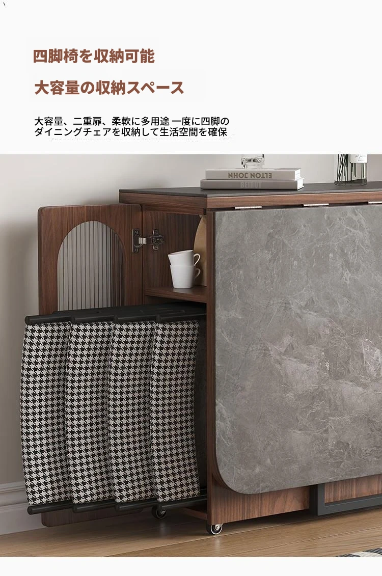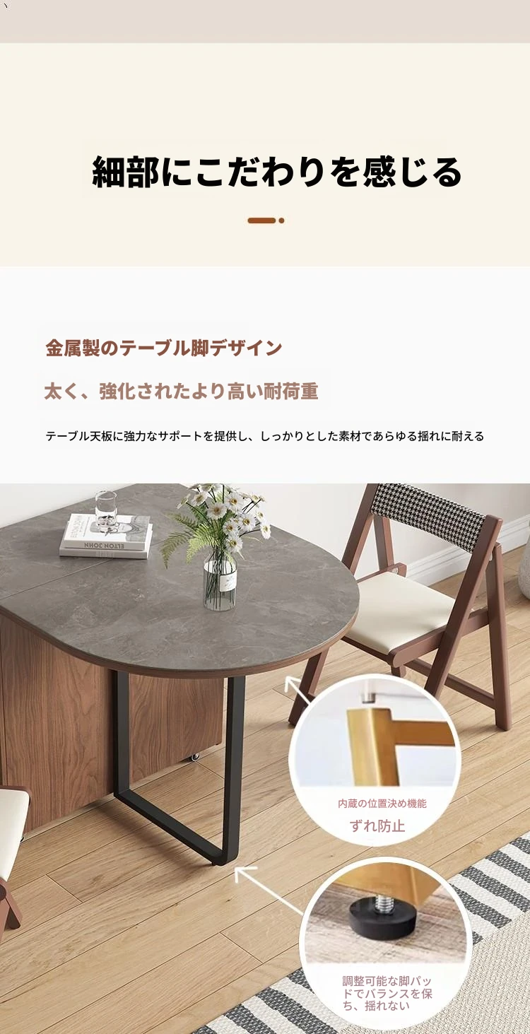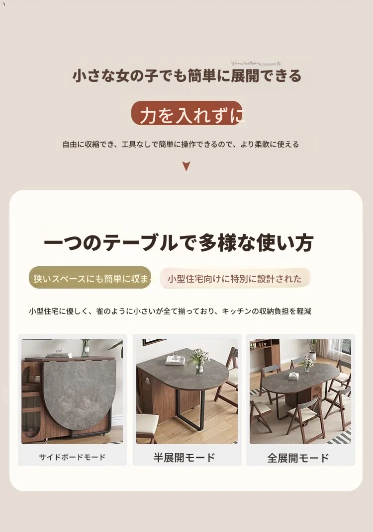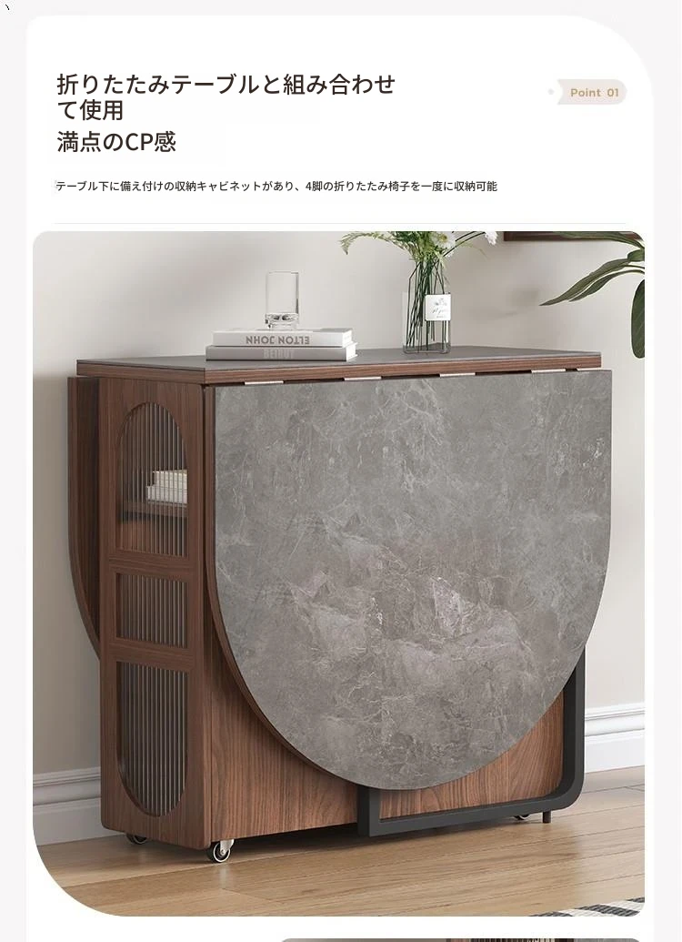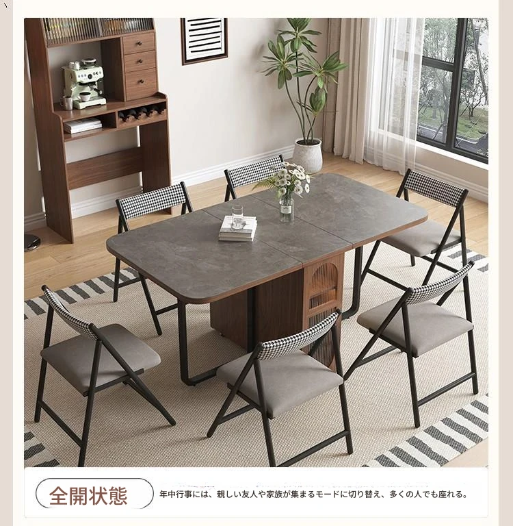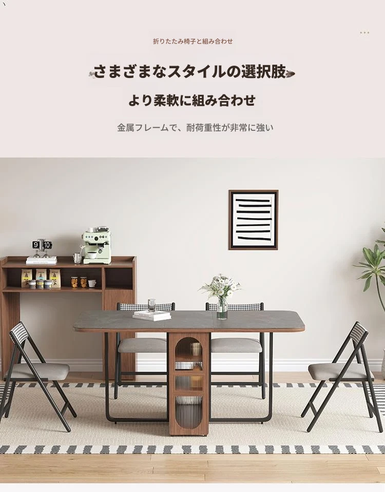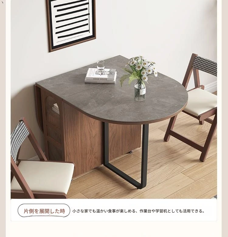 折りたたみ式岩板ダイニングテーブル|省スペースに最適!モダンデザインの実木製テーブル&チェアセット|小型住宅にぴったり|移動も簡単!