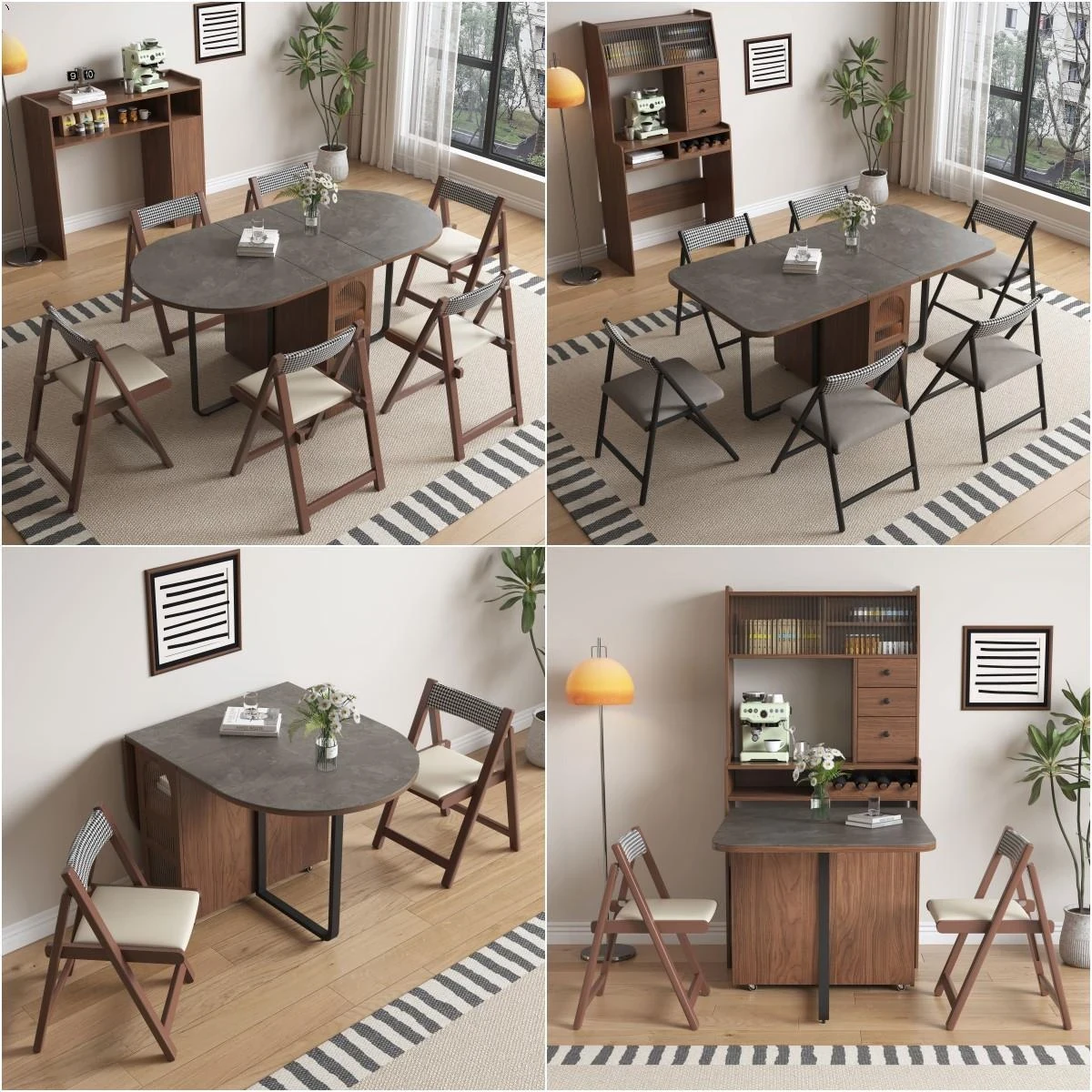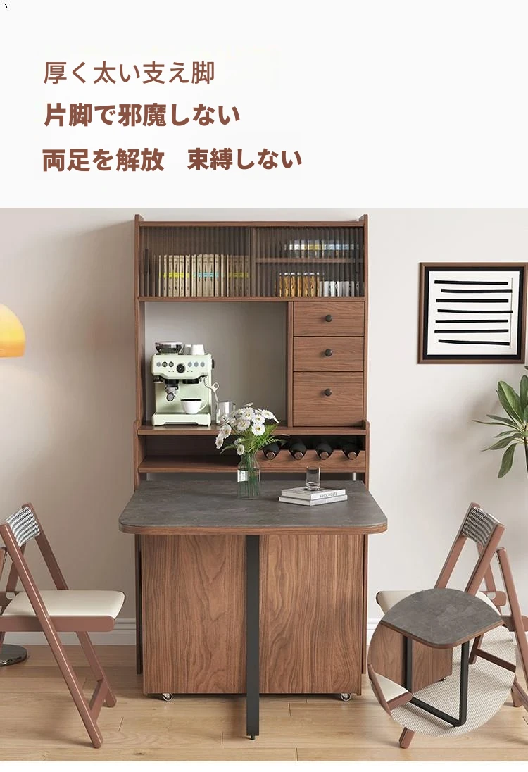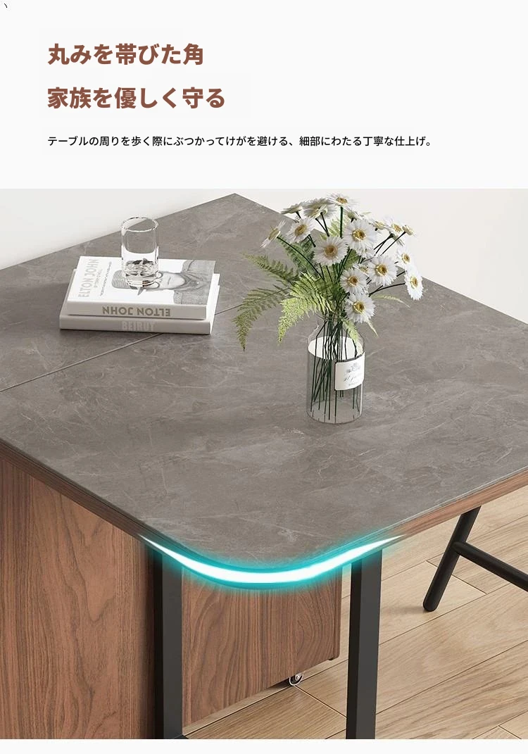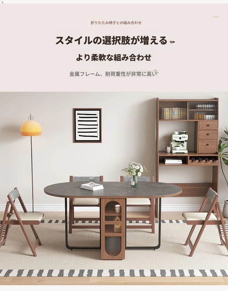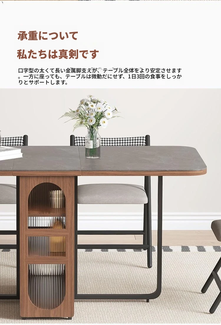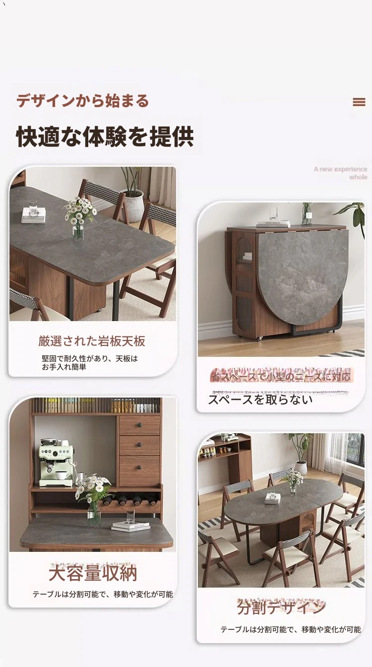 折りたたみ式岩板ダイニングテーブル|省スペースに最適!モダンデザインの実木製テーブル&チェアセット|小型住宅にぴったり|移動も簡単!
