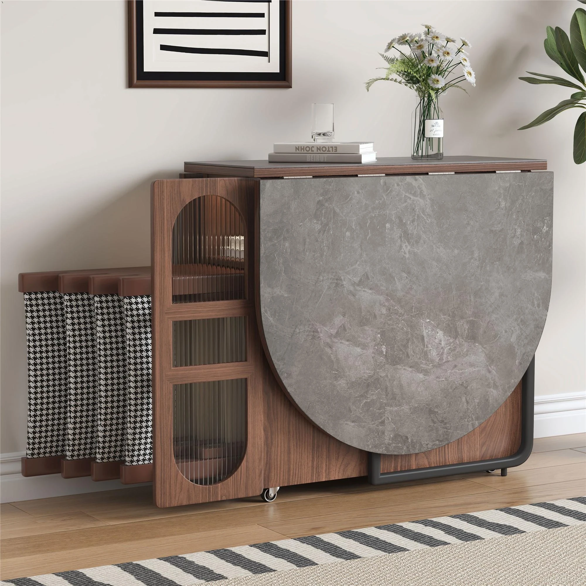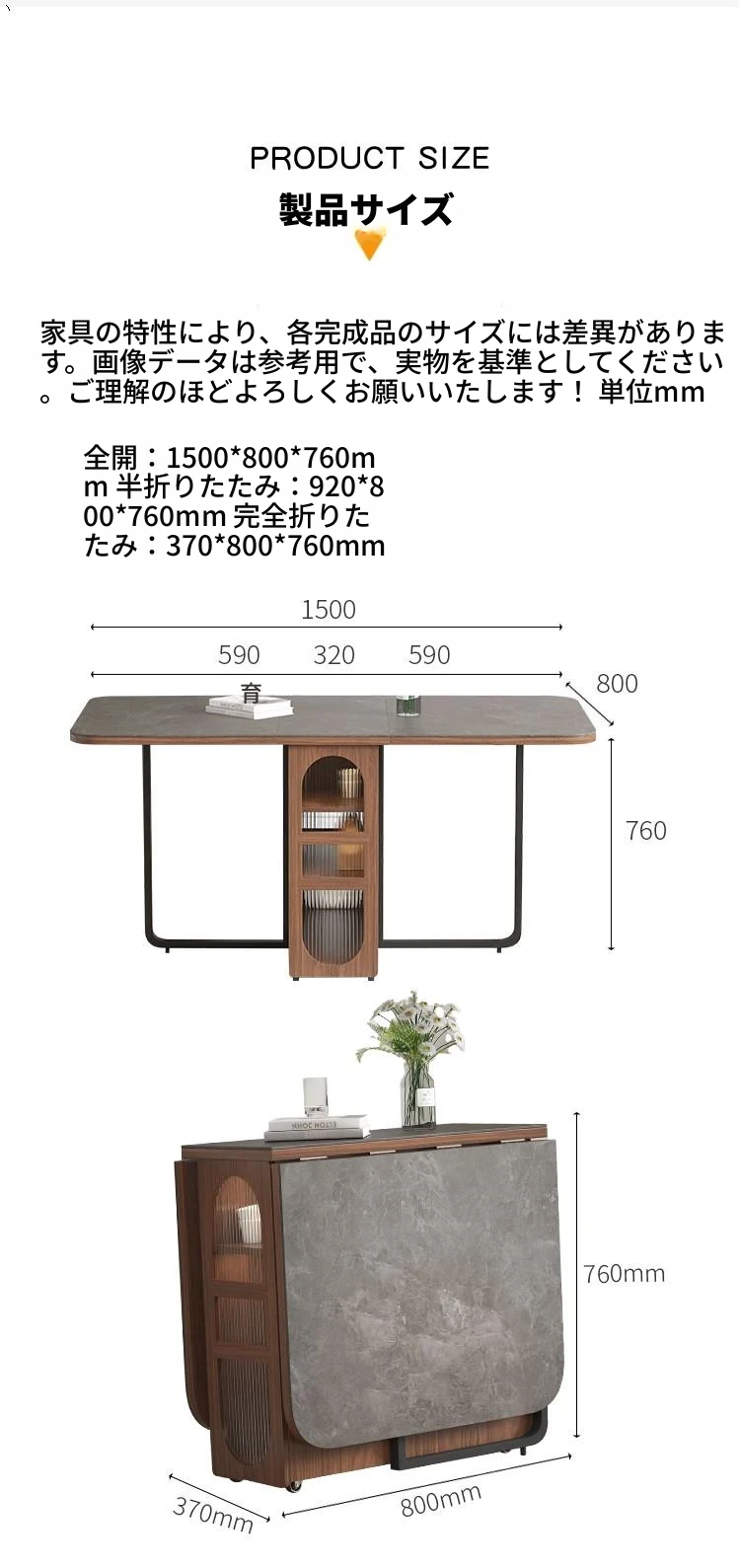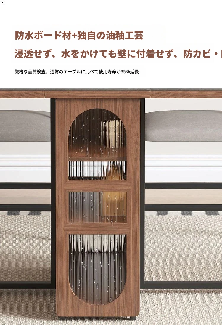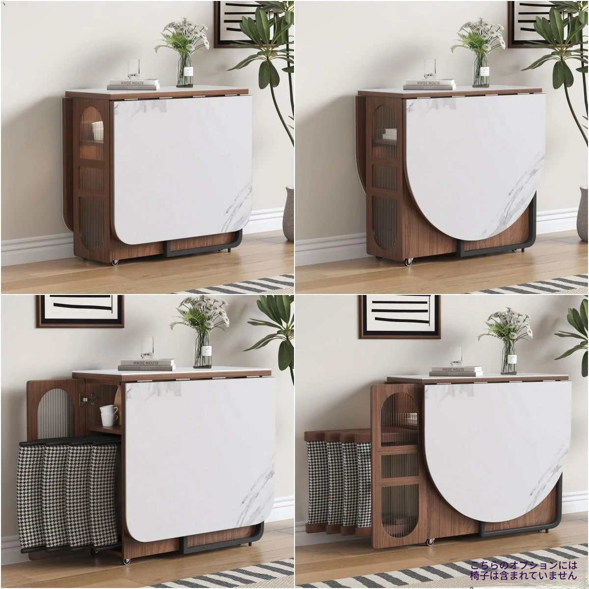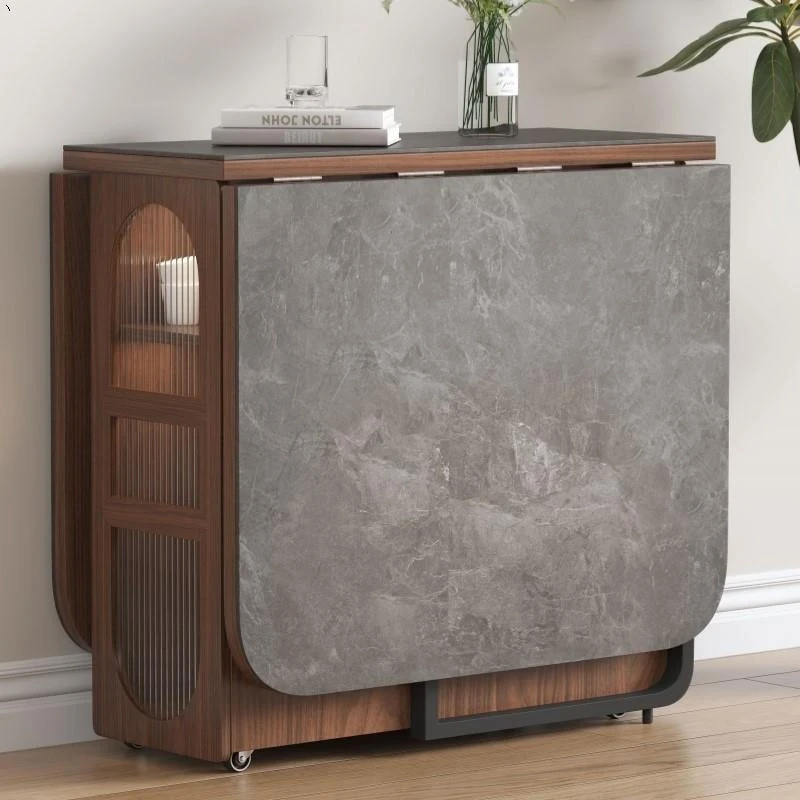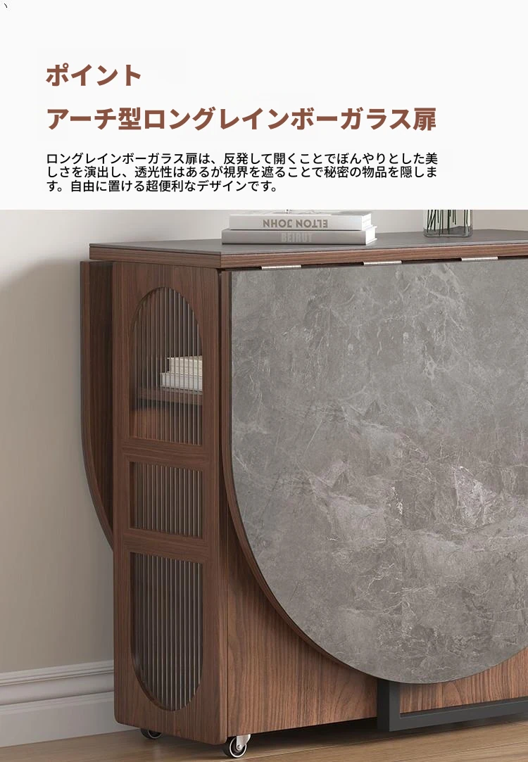 折りたたみ式岩板ダイニングテーブル|省スペースに最適!モダンデザインの実木製テーブル&チェアセット|小型住宅にぴったり|移動も簡単!