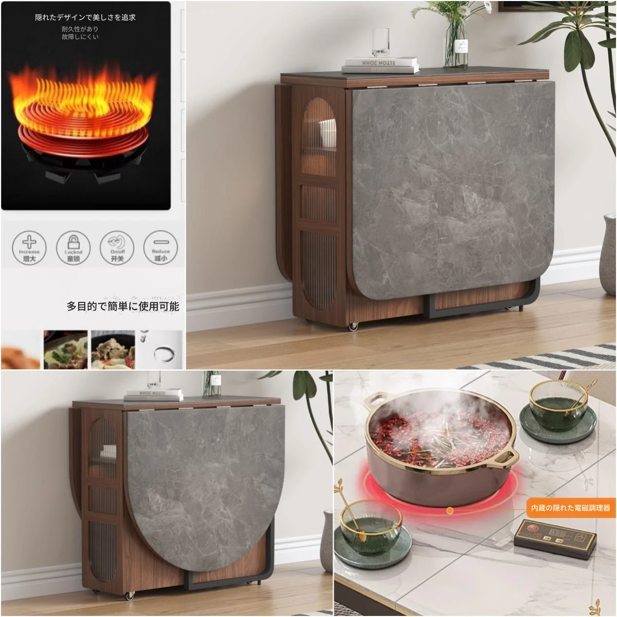電磁炉岩板無垢材テーブル+方形円形テーブル