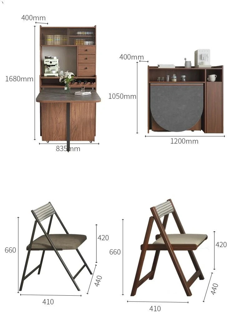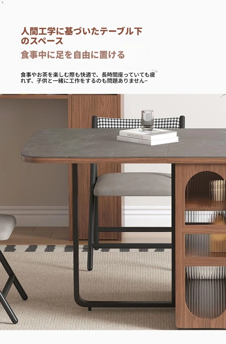 方形岩板無垢材ダイニングテーブル+2ウォールナット合金チェア+高いサイドボード