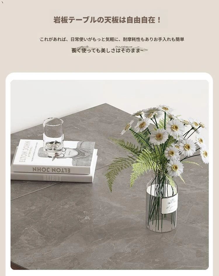 楕円形岩板無垢材ダイニングテーブル+アップグレード電磁炉