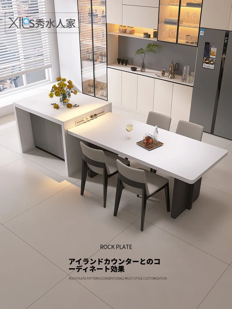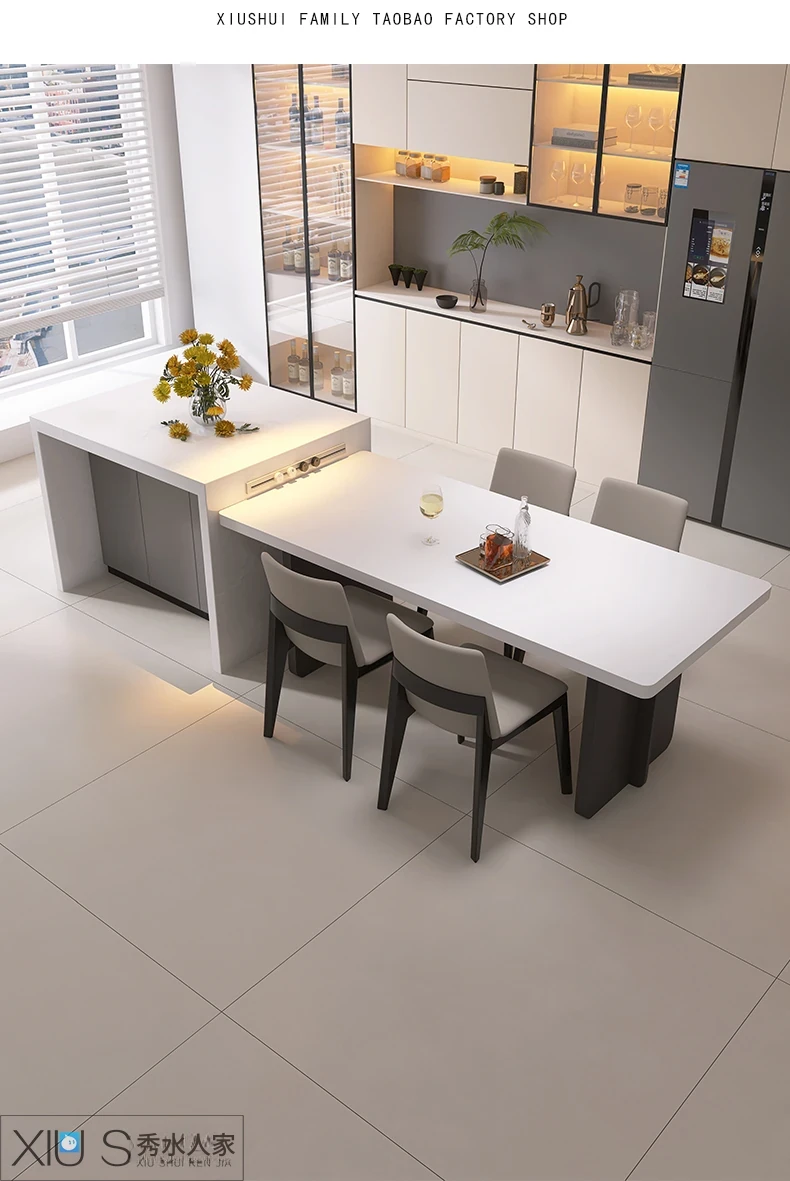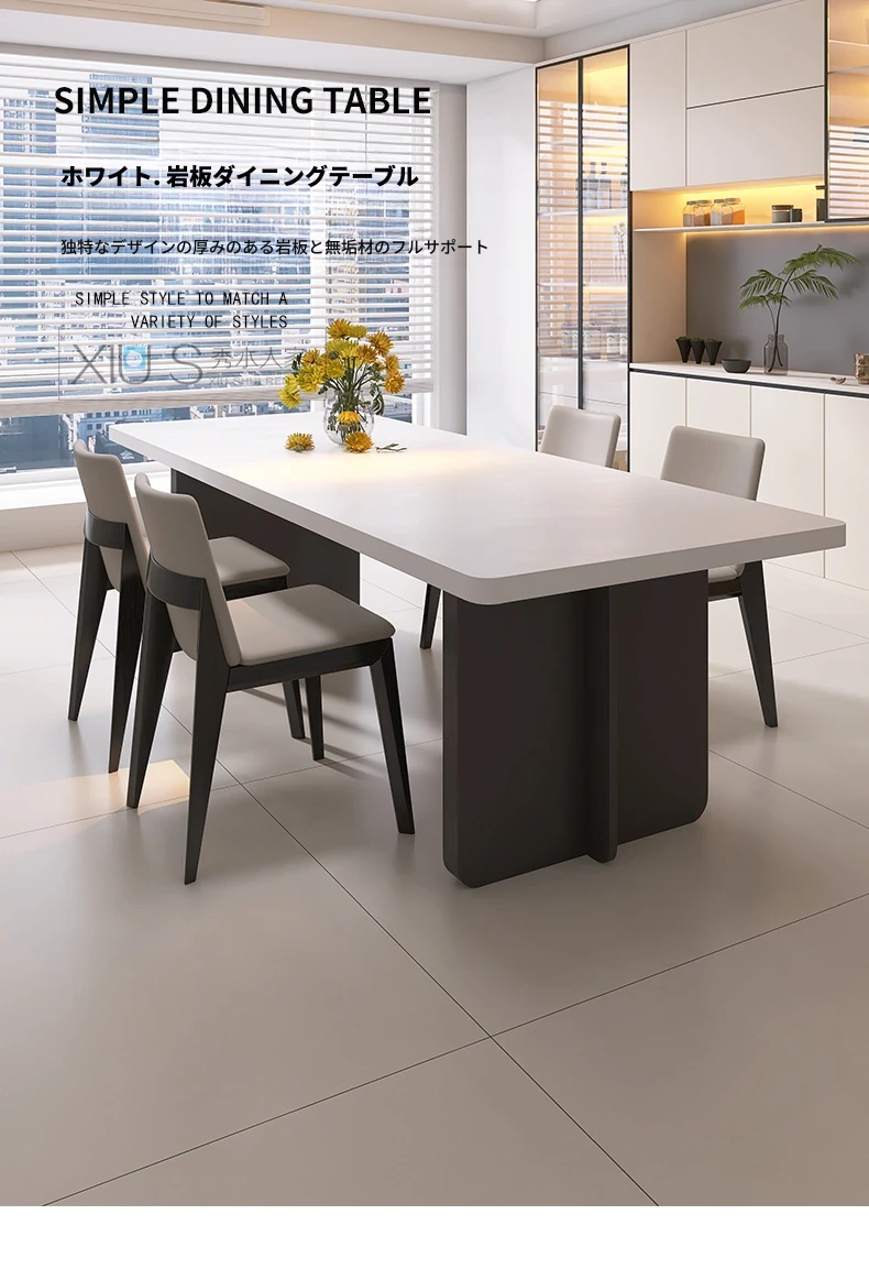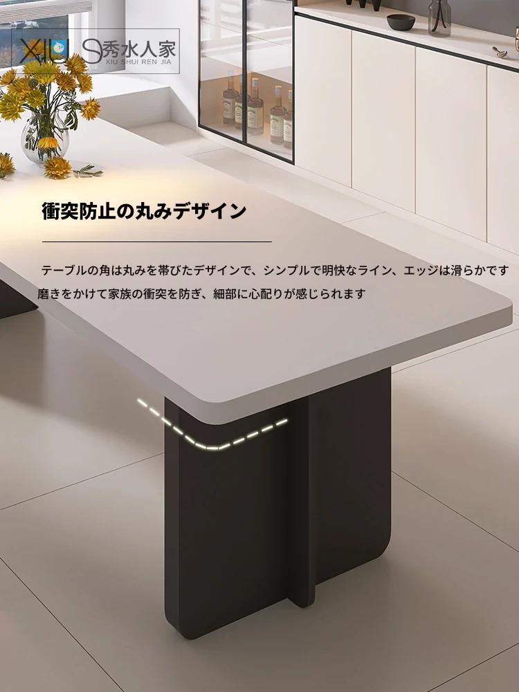 イタリアンミニマリストダイニングテーブルセット - シンプルで洗練された純白の長方形デザイン、隠れた電磁炉付き、厚みのある頑丈な作り。新しいスタイルで、あなたの食卓を引き立てます!