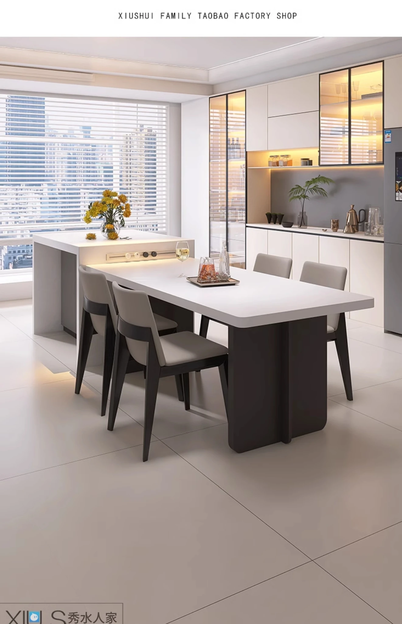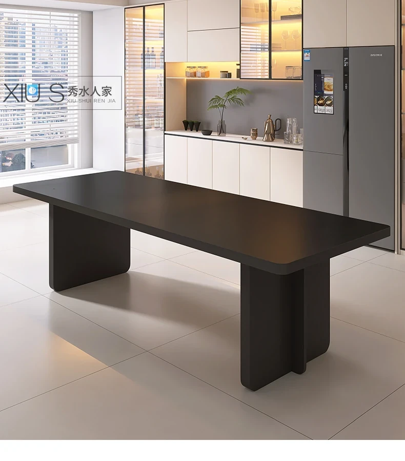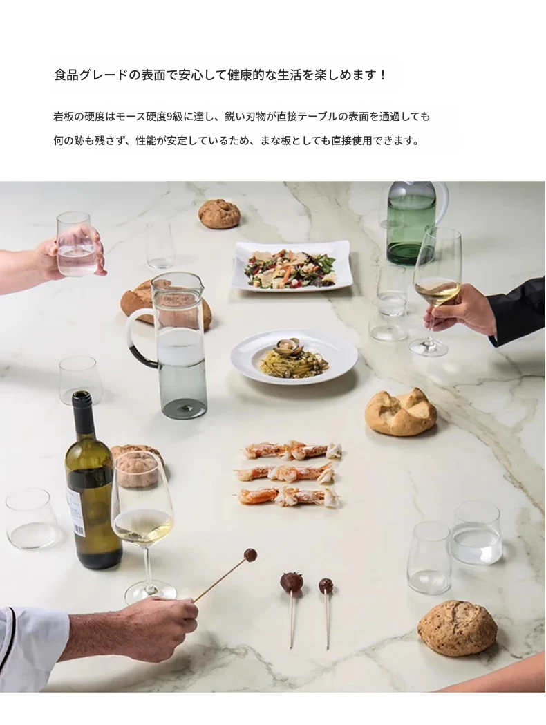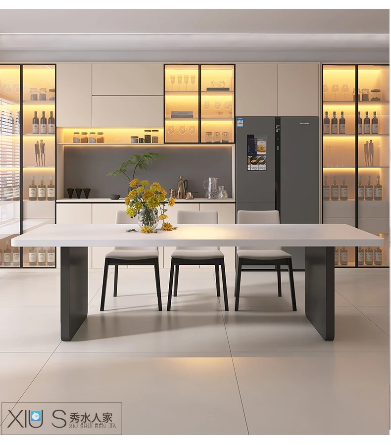 イタリアンミニマリストダイニングテーブルセット - シンプルで洗練された純白の長方形デザイン、隠れた電磁炉付き、厚みのある頑丈な作り。新しいスタイルで、あなたの食卓を引き立てます!