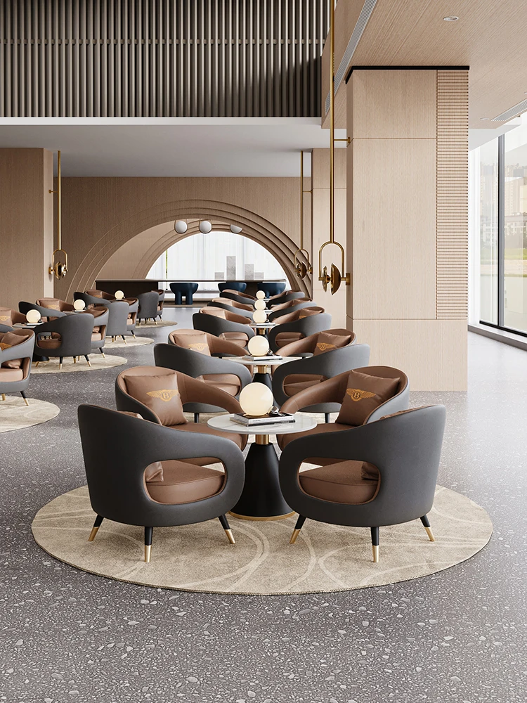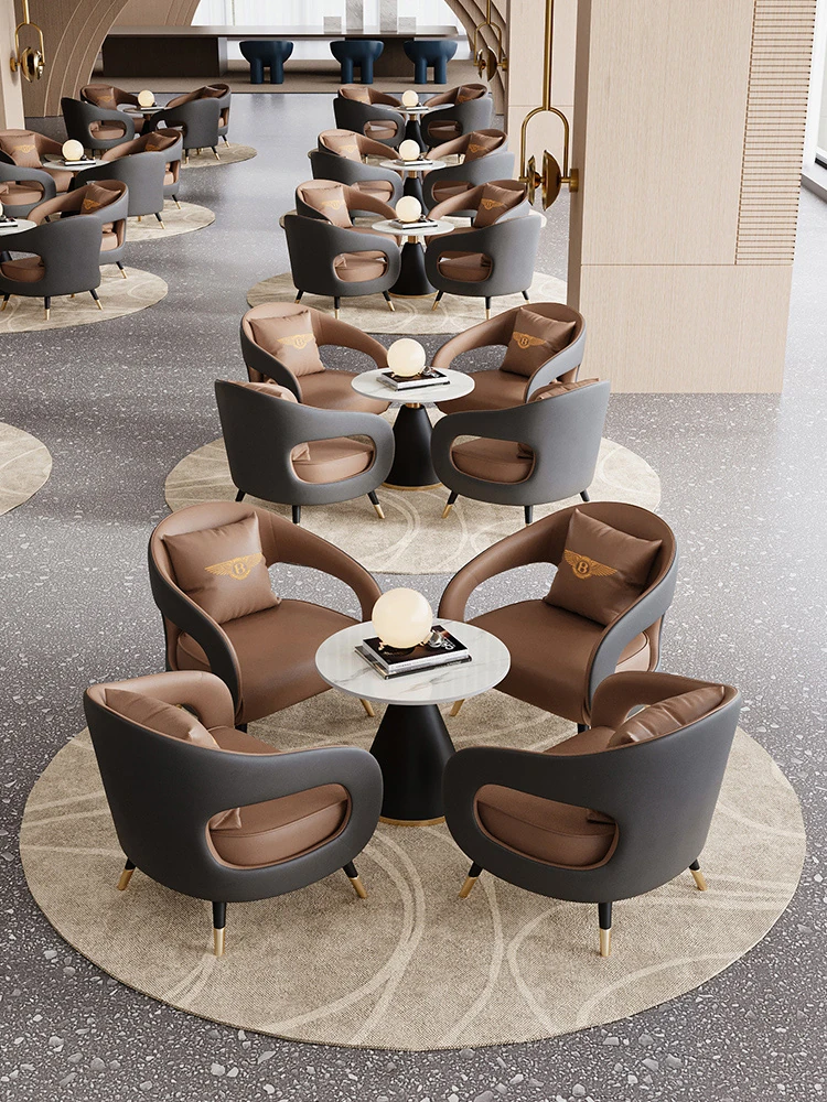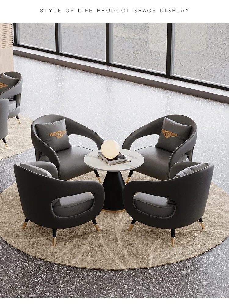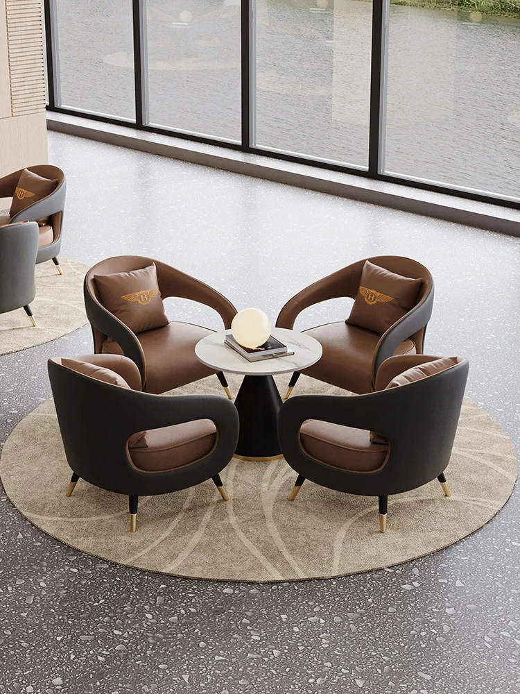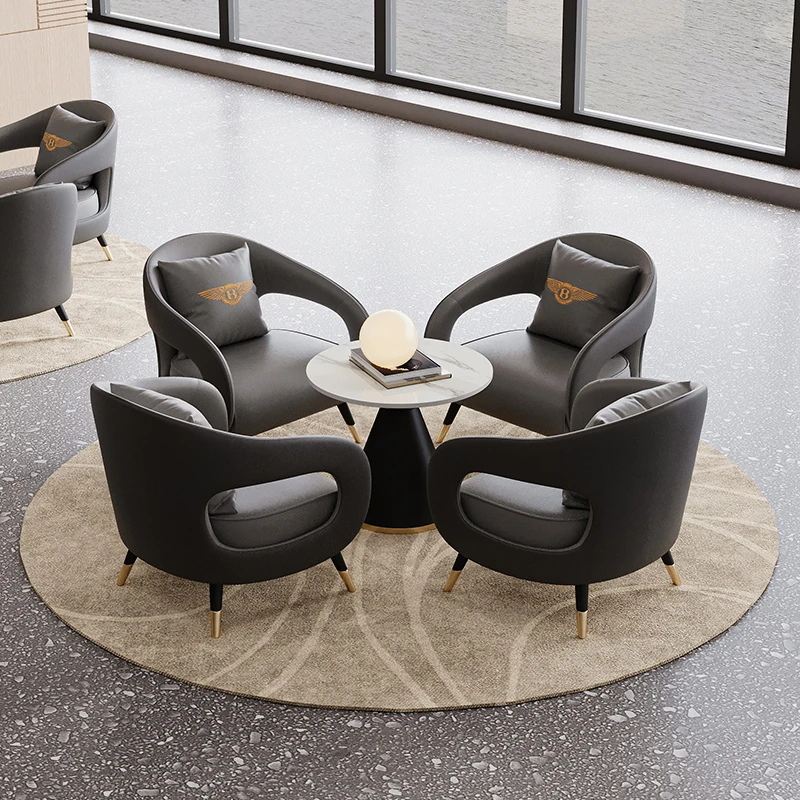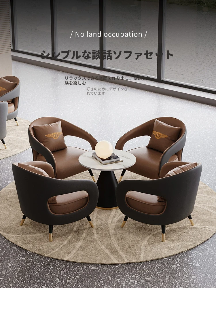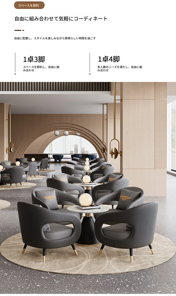 モダンでラグジュアリーなビジネス用テーブルセット - ホテルロビーや販売所に最適!快適な会議と商談を実現する一卓四椅子の組み合わせで、スタイリッシュな空間を演出します。