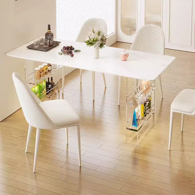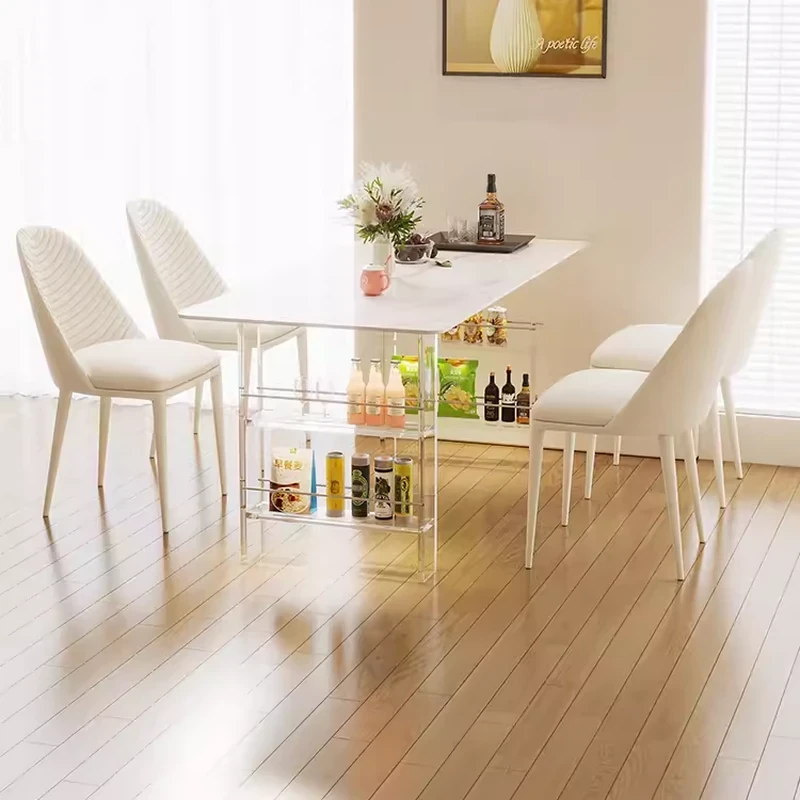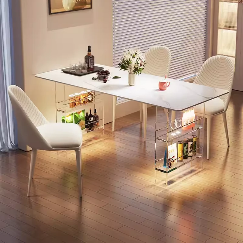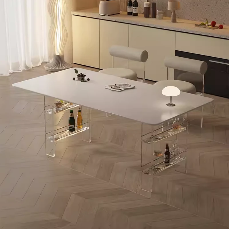 モダンでシンプルなアクリル製浮遊型スクエアデスク|オフィスや書斎に最適!クリームカラーと純白・黒のスタイリッシュな収納付きデザイン。あなたの空間を洗練された雰囲気に変えます!