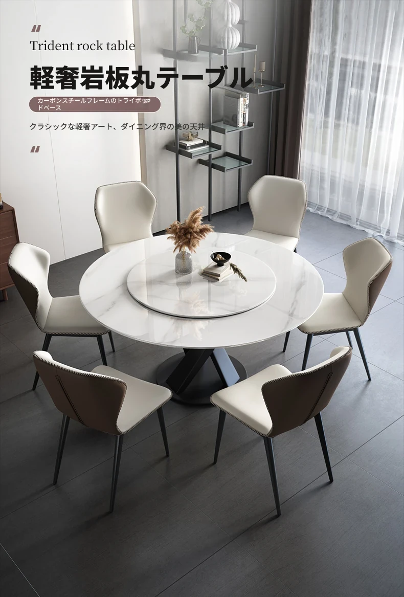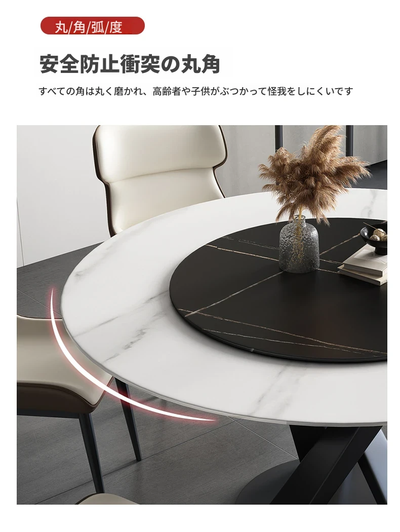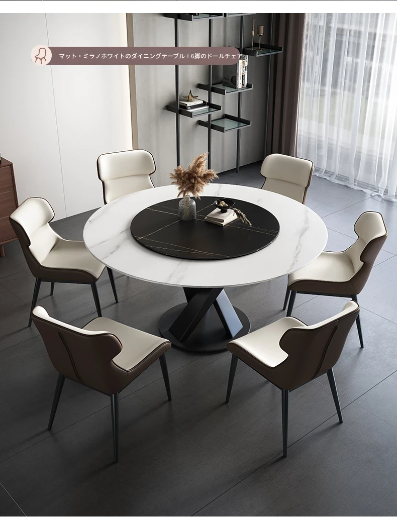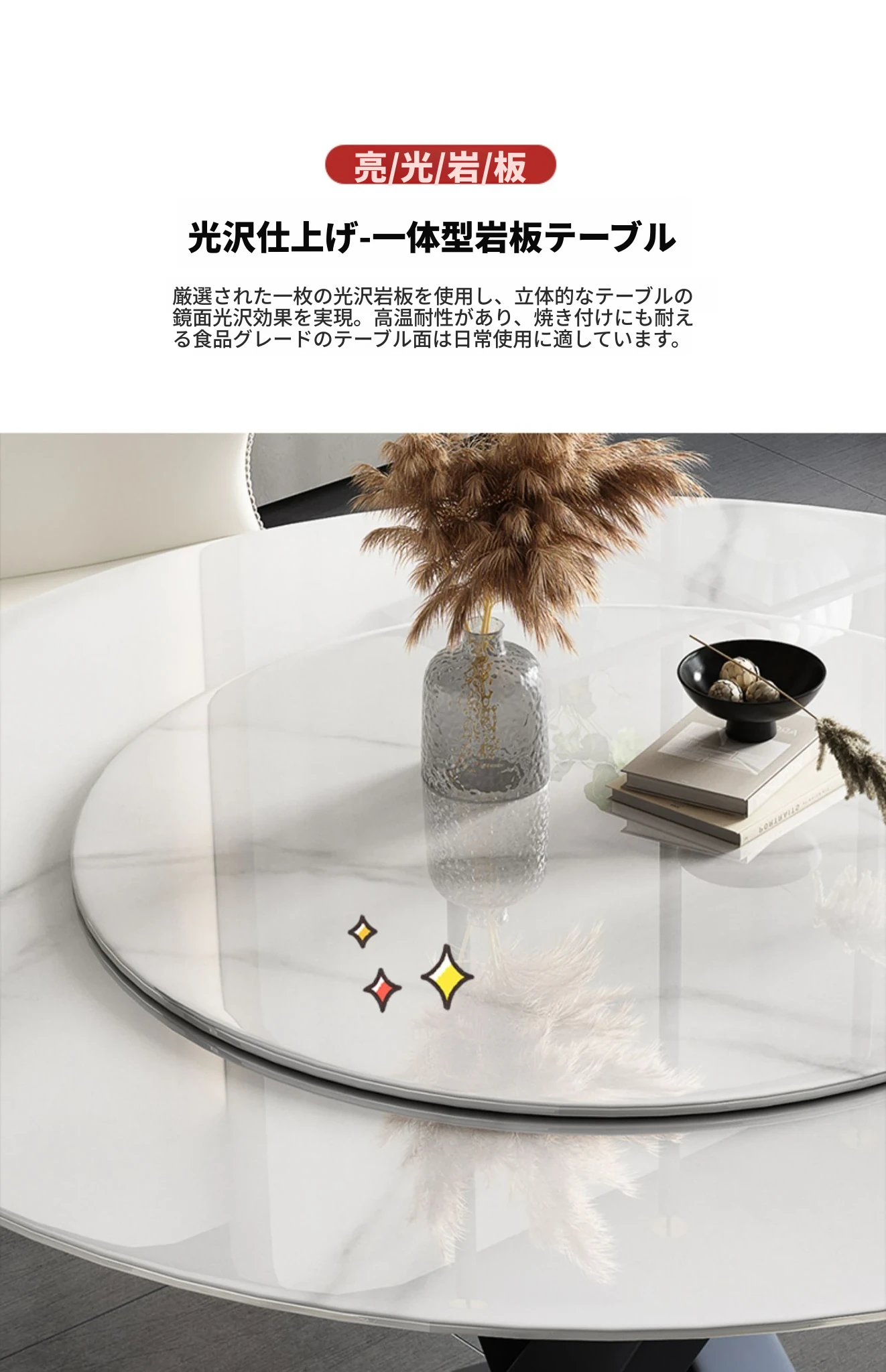 洗練されたデザインの光沢仕上げ、軽奢感溢れる岩板ダイニングテーブル&チェアセット。現代的でシンプルなスタイル、小型住宅に最適な回転式ラウンドテーブル。家族や友人との特別な食事を演出します!