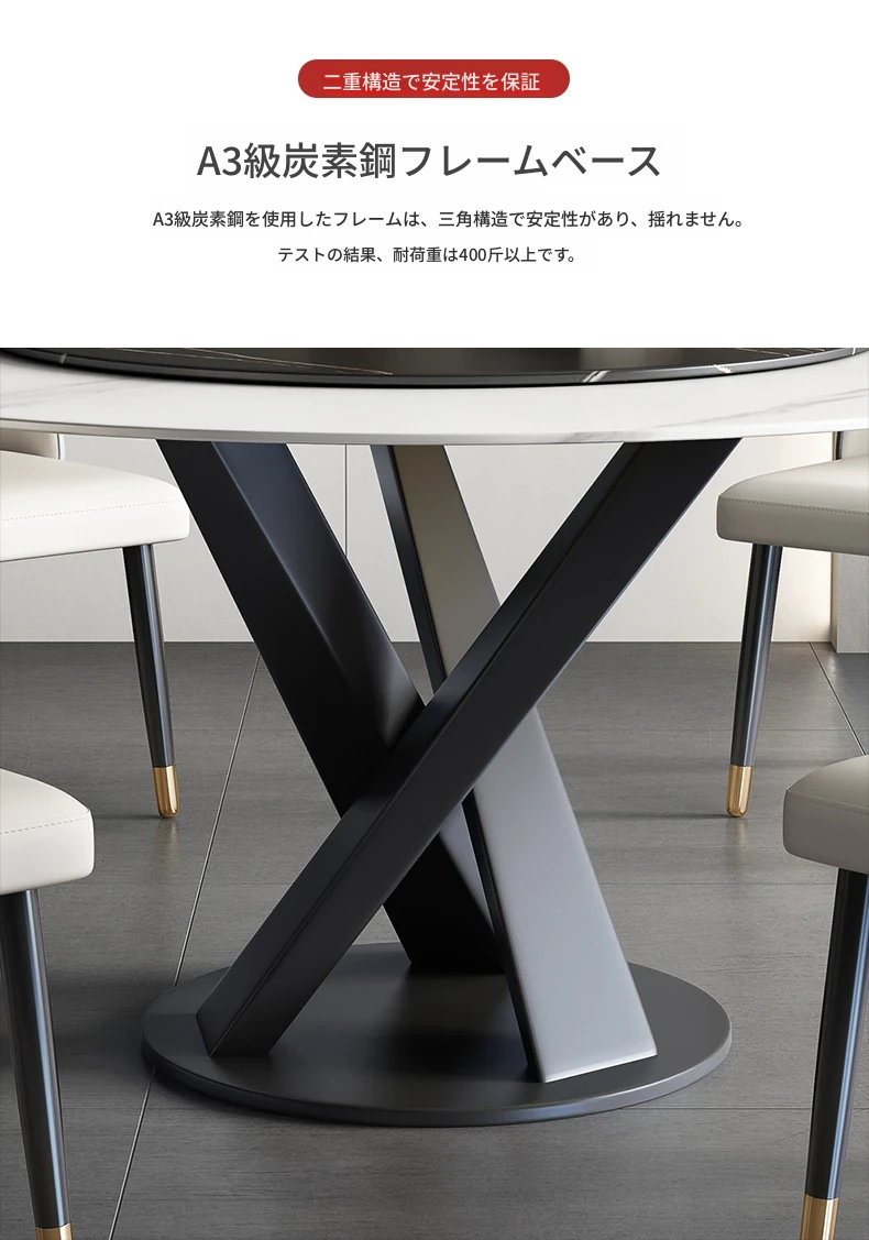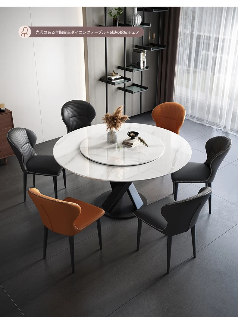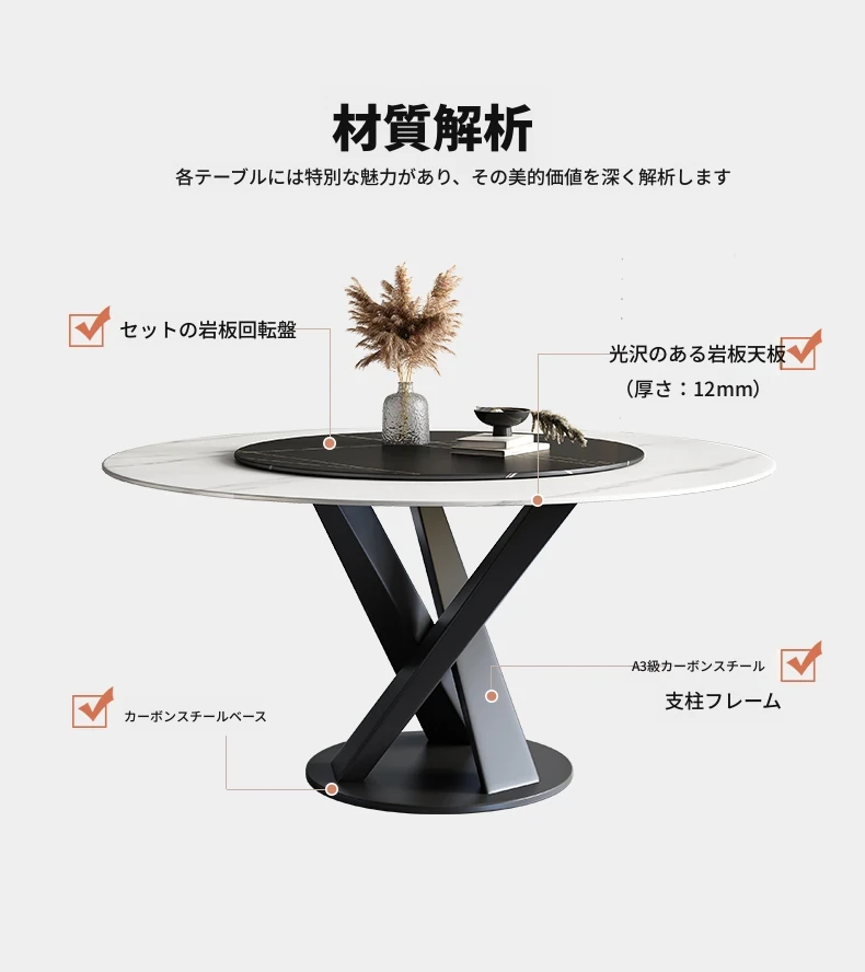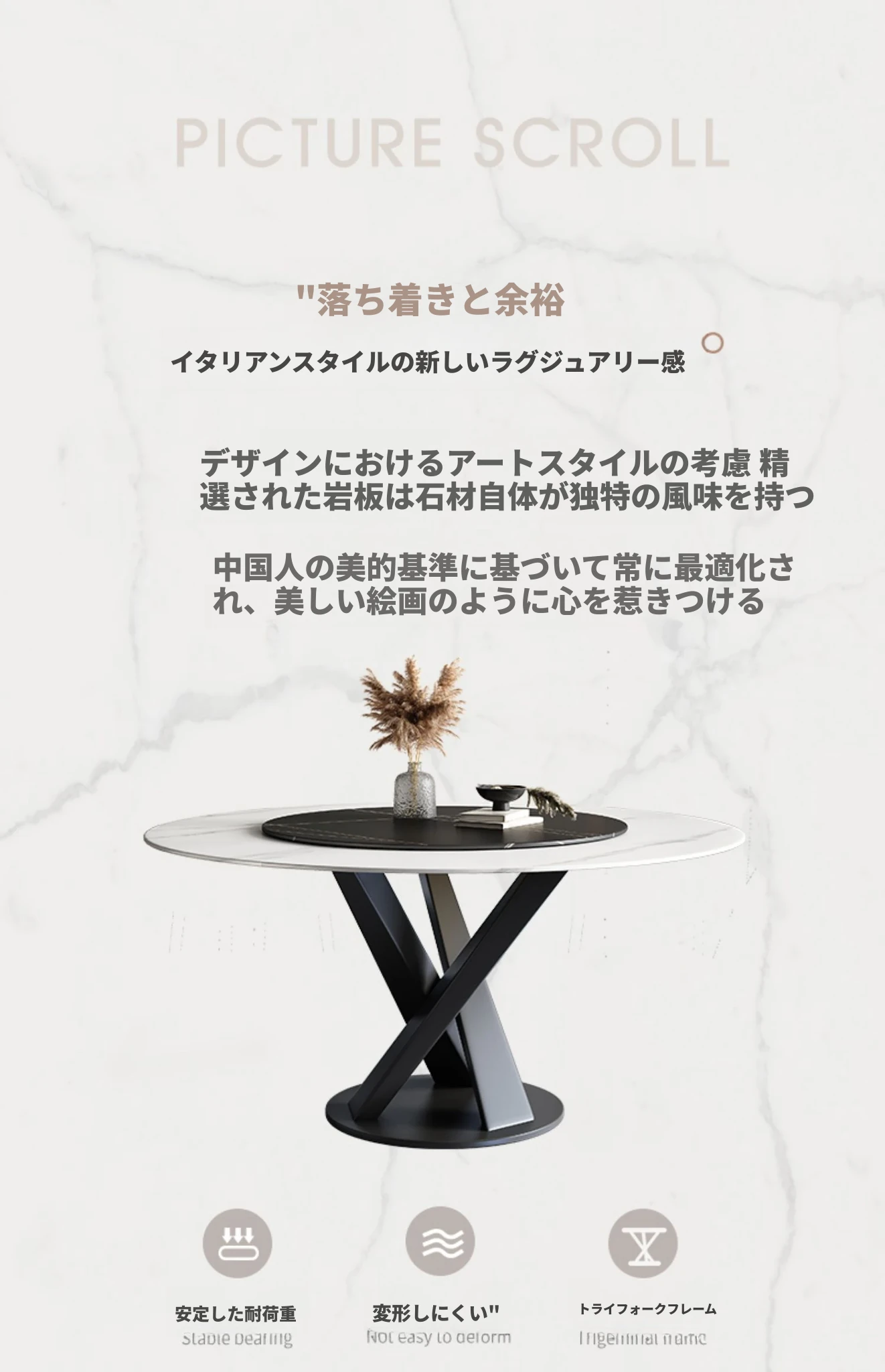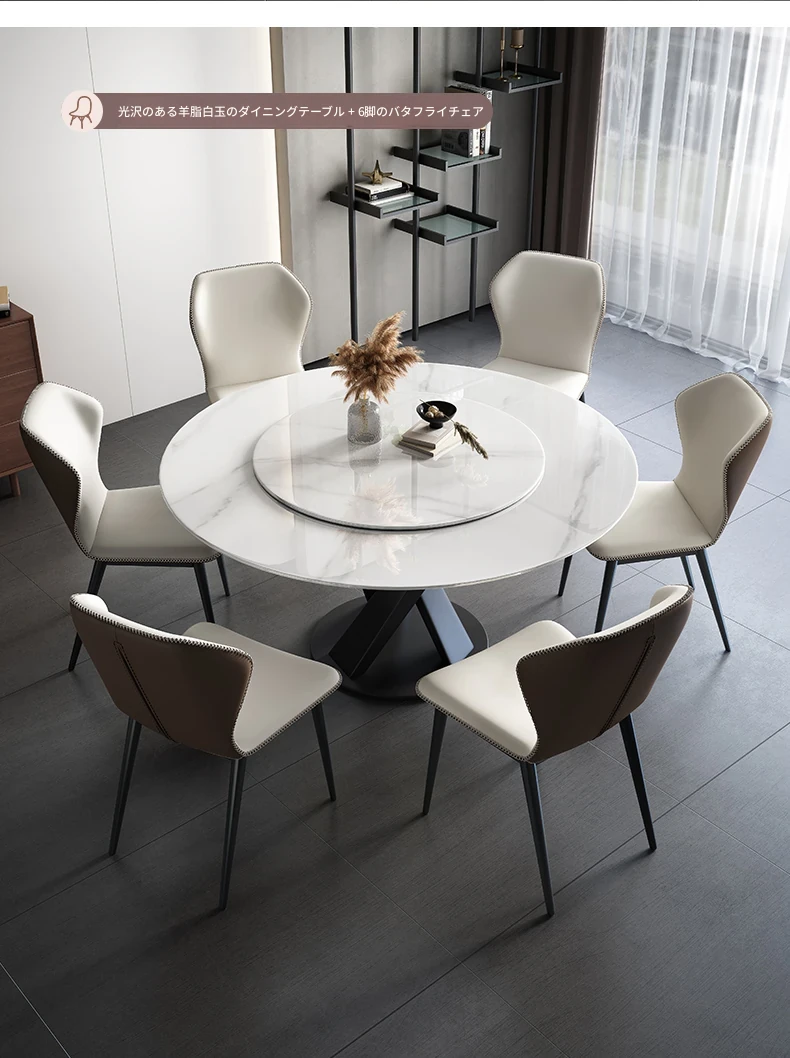 洗練されたデザインの光沢仕上げ、軽奢感溢れる岩板ダイニングテーブル&チェアセット。現代的でシンプルなスタイル、小型住宅に最適な回転式ラウンドテーブル。家族や友人との特別な食事を演出します!